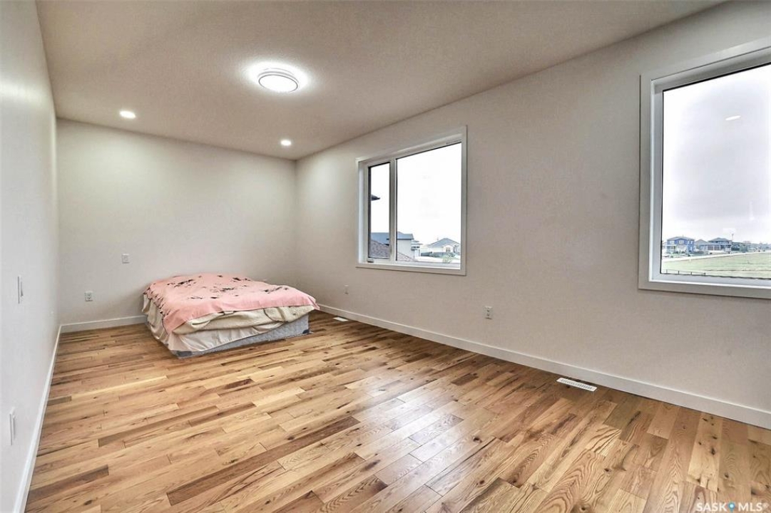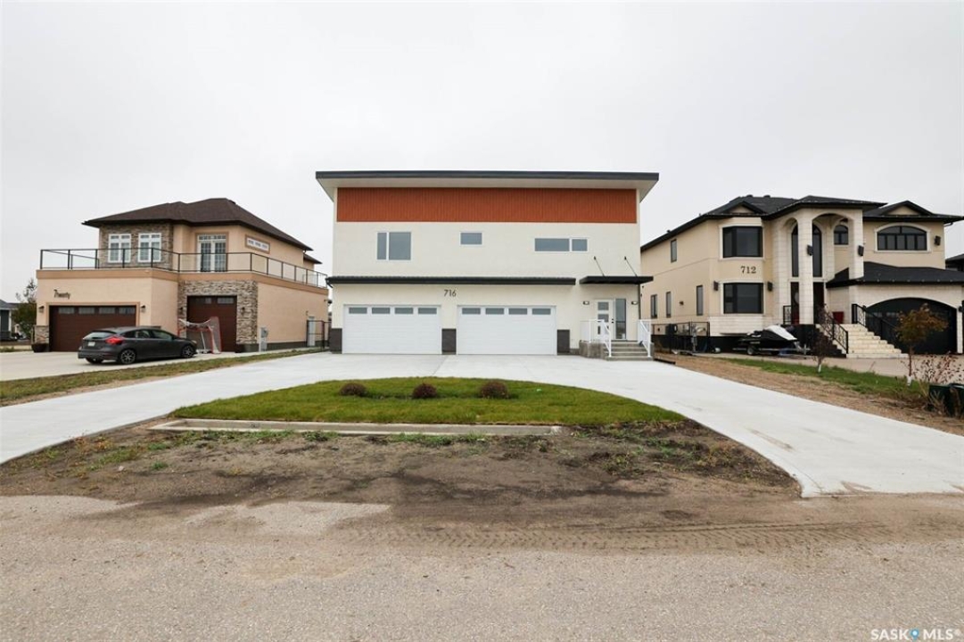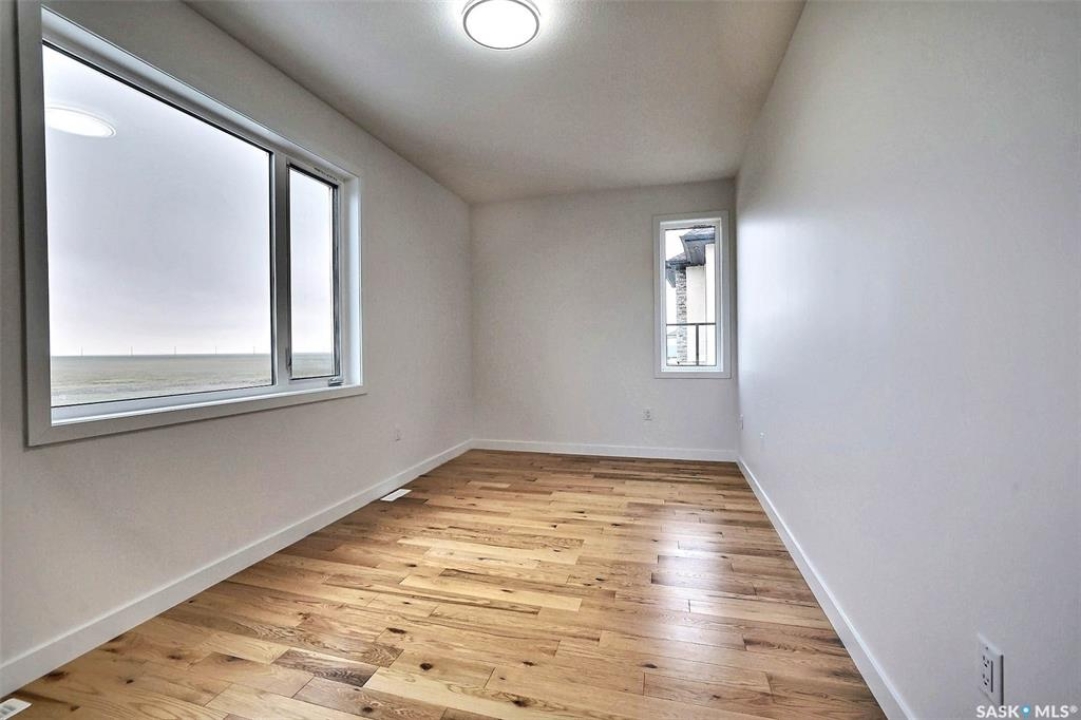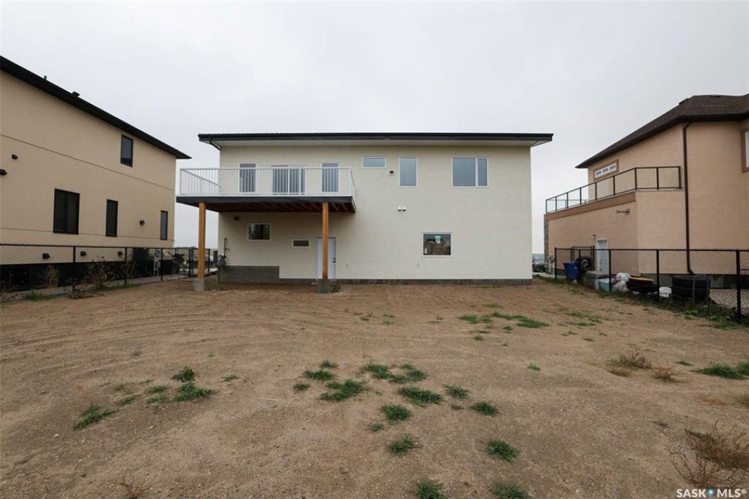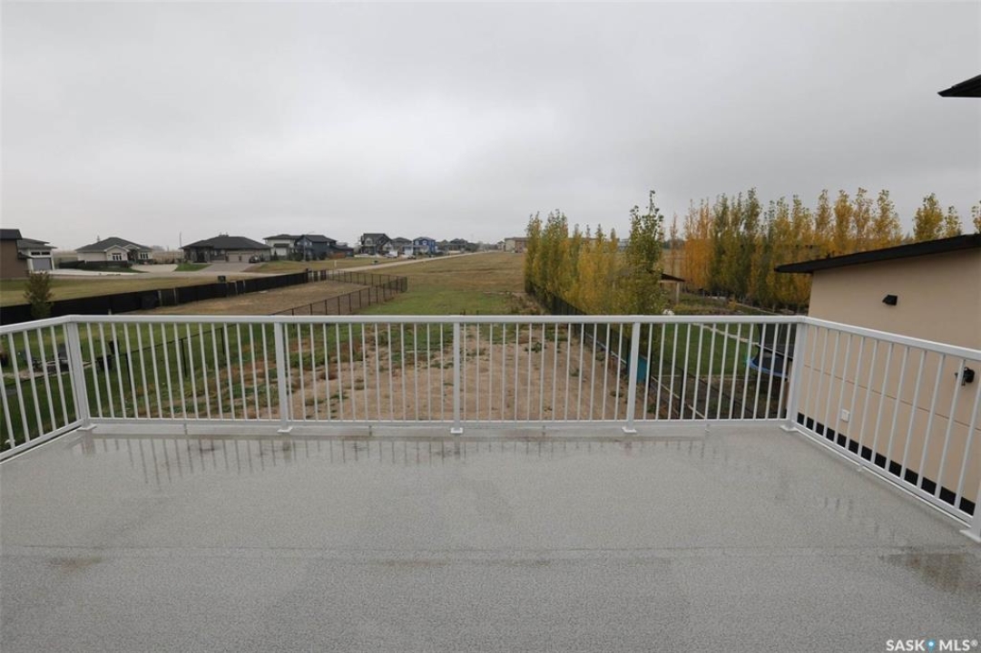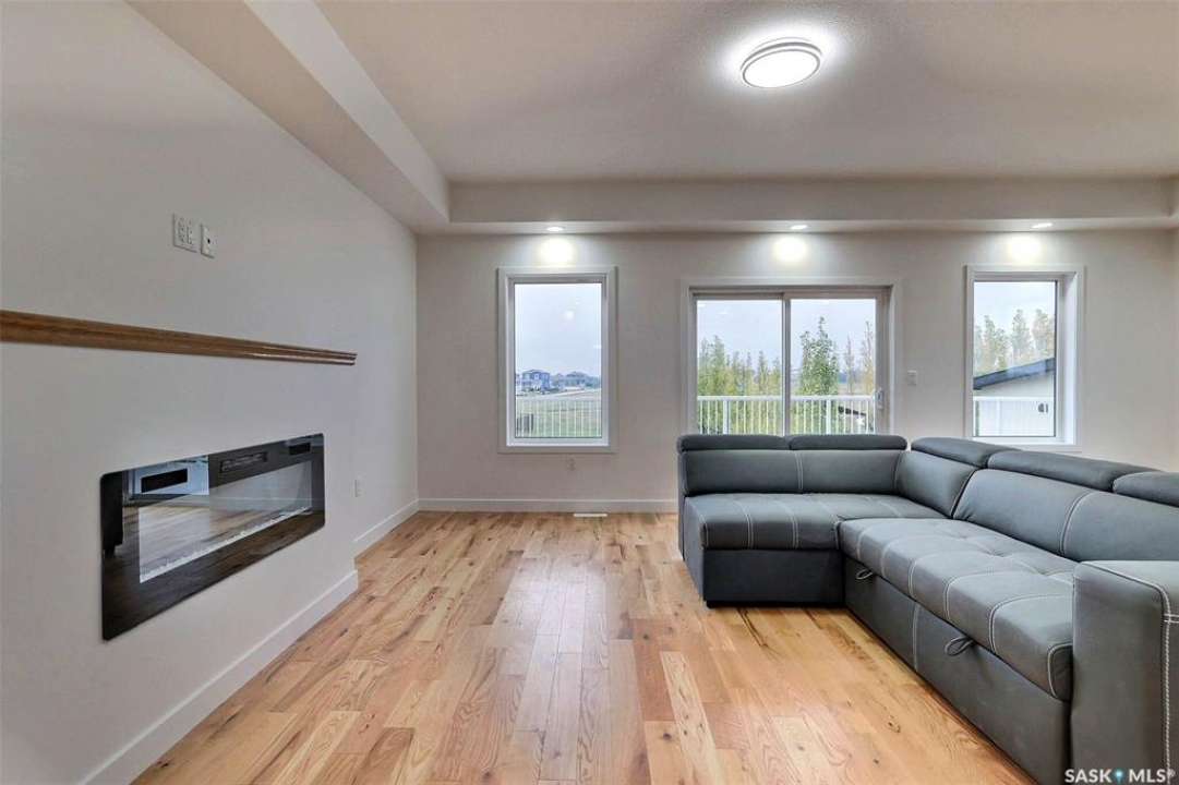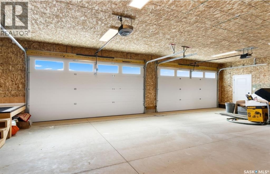 Custom built contemporary home on fantastic 15,000+ sq ft lot both fronting and backing open greenspace. Unique design speaks to a modern esthetic with circular driveway that would accommodate RV parking and many extra vehicles. Main floor houses a massive 30x40 garage/shop that is insulated/heated and wired 220 with a handy 1/2 bath with shop sink, hot and cold water and main floor drain. Perfect for the hobbyist or car enthusiast with two overheard doors and access to the rear yard. Huge entrance doubles as a mudroom with bench seating, closet, storage and laundry room. Up the custom oak hardwood staircase to extremely spacious open loft like layout with beautiful view of large rear yard and greenspace beyond. Gorgeous oak hardwood floors throughout the main living area with fireplace feature wall and an abundance of windows and sliding doors to upper deck. Oversized kitchen is open to living area with large sit up island with loads of cabinet and stone counter space, tiled backsplash and pantry with barn door. Large primary suite with walk-in closet and modern 3pc ensuite including oversized shower. 2 additional bedrooms and main bath. Huge lot has massive potential, allowing for additional structures, pool, garden/seating areas, or whatever you imagine for your outdoor living. Ideally located with the golf course/prairie right out your front door and expansive greenspace behind. Emerald Park is quiet living yet offering up all modern amenities of the city. Shopping, schools, medical and restaurants. Quick poss available, Call today!