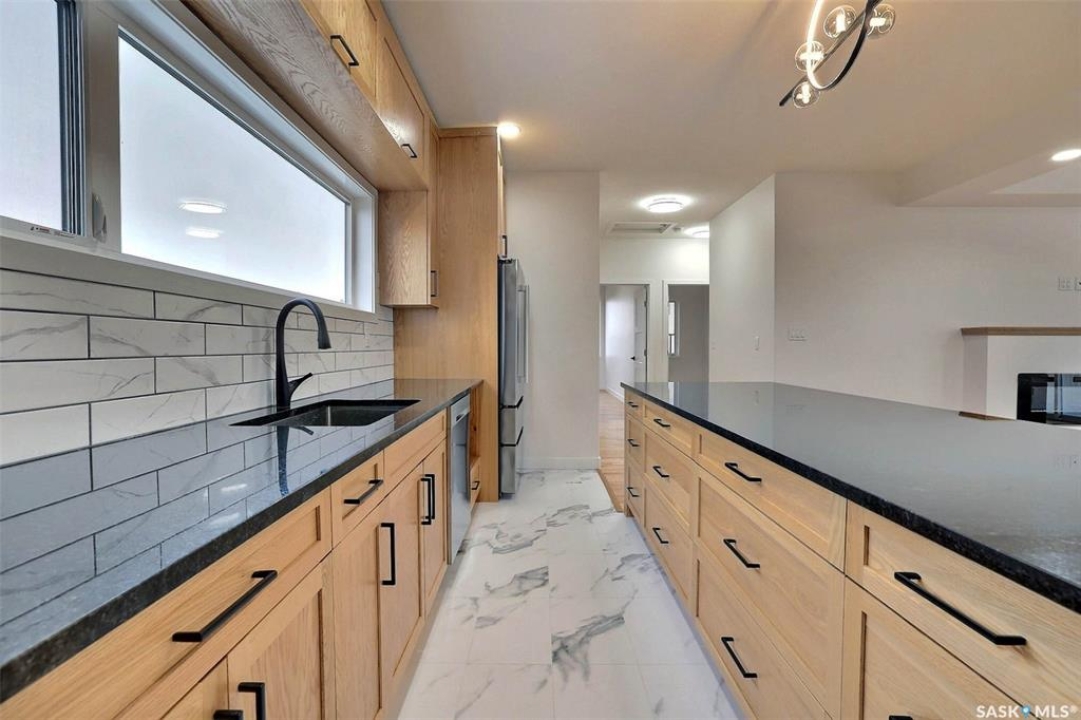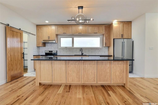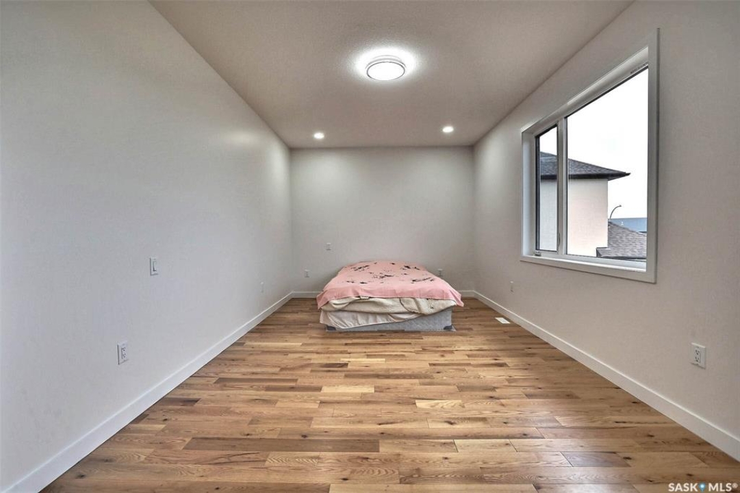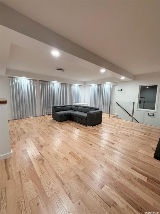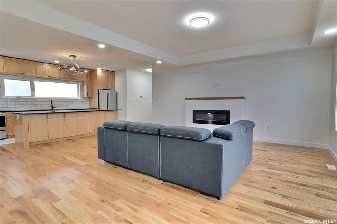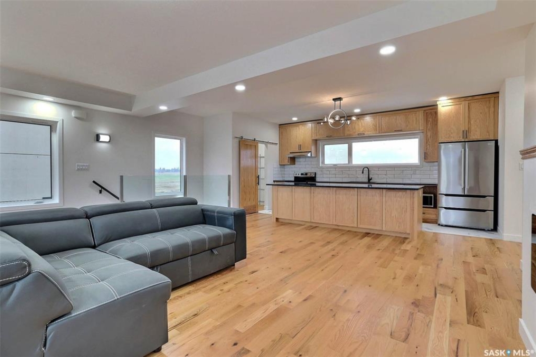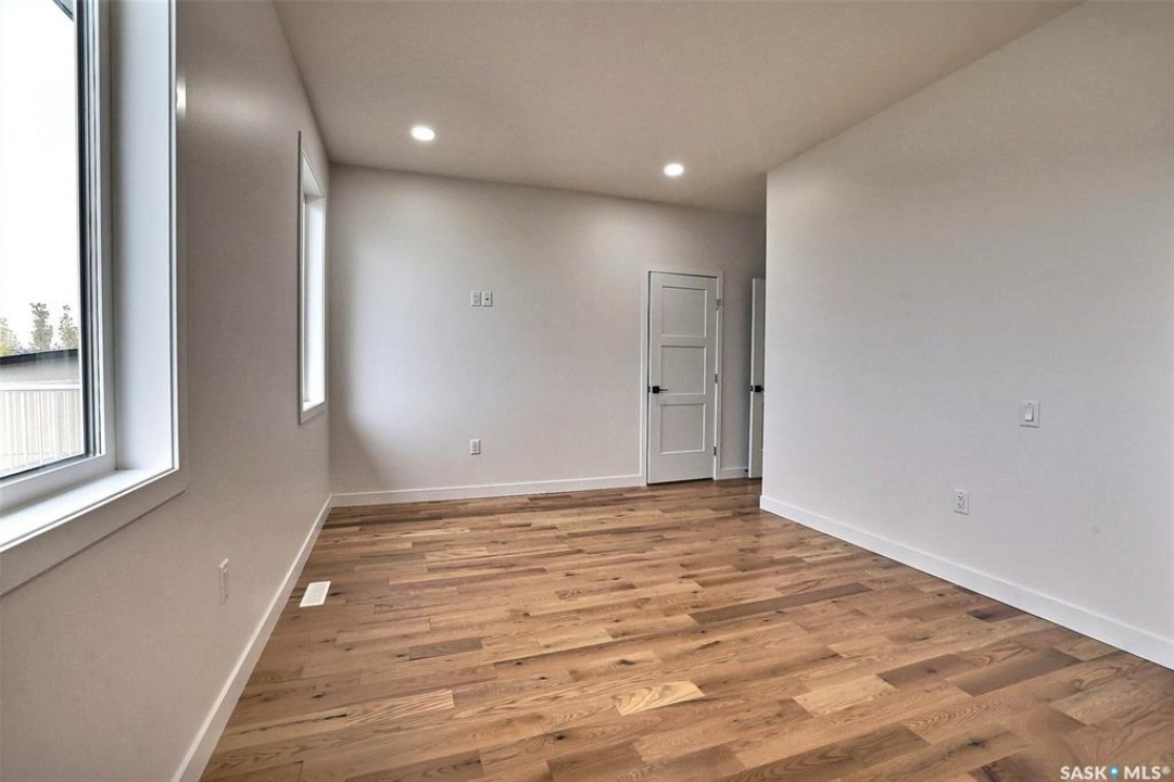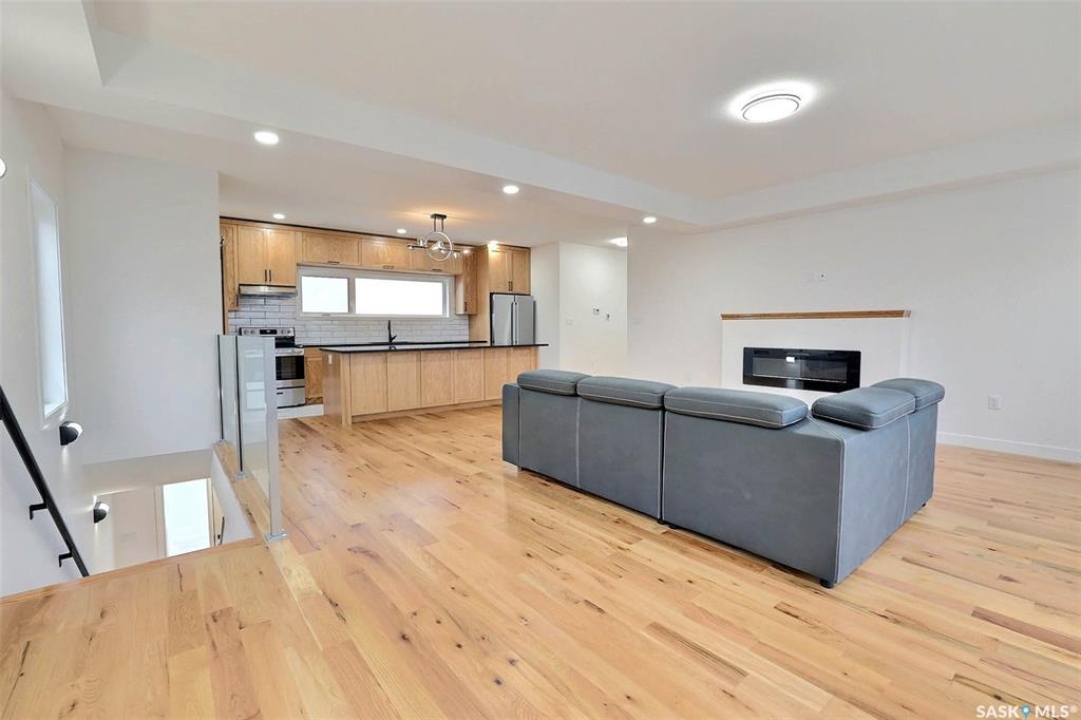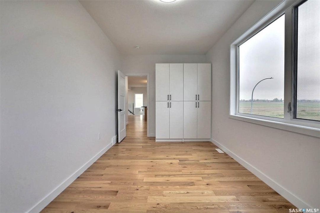 Custom built contemporary home on fantastic 15,000+ sq ft lot both fronting and backing open greenspace. Unique design speaks to a modern esthetic with circular driveway that would accommodate RV parking and many extra vehicles. Main floor houses a massive 30x40 garage/shop that is insulated/heated and wired 220 with a handy 1/2 bath with shop sink, hot and cold water and main floor drain. Perfect for the hobbyist or car enthusiast with two overheard doors and access to the rear yard. Huge entrance doubles as a mudroom with bench seating, closet, storage and laundry room. Up the custom oak hardwood staircase to extremely spacious open loft like layout with beautiful view of large rear yard and greenspace beyond. Gorgeous oak hardwood floors throughout the main living area with fireplace feature wall and an abundance of windows and sliding doors to upper deck. Oversized kitchen is open to living area with large sit up island with loads of cabinet and stone counter space, tiled backsplash and pantry with barn door. Large primary suite with walk-in closet and modern 3pc ensuite including oversized shower. 2 additional bedrooms and main bath. Huge lot has massive potential, allowing for additional structures, pool, garden/seating areas, or whatever you imagine for your outdoor living. Ideally located with the golf course/prairie right out your front door and expansive greenspace behind. Emerald Park is quiet living yet offering up all modern amenities of the city. Shopping, schools, medical and restaurants. Quick poss available, Call today!