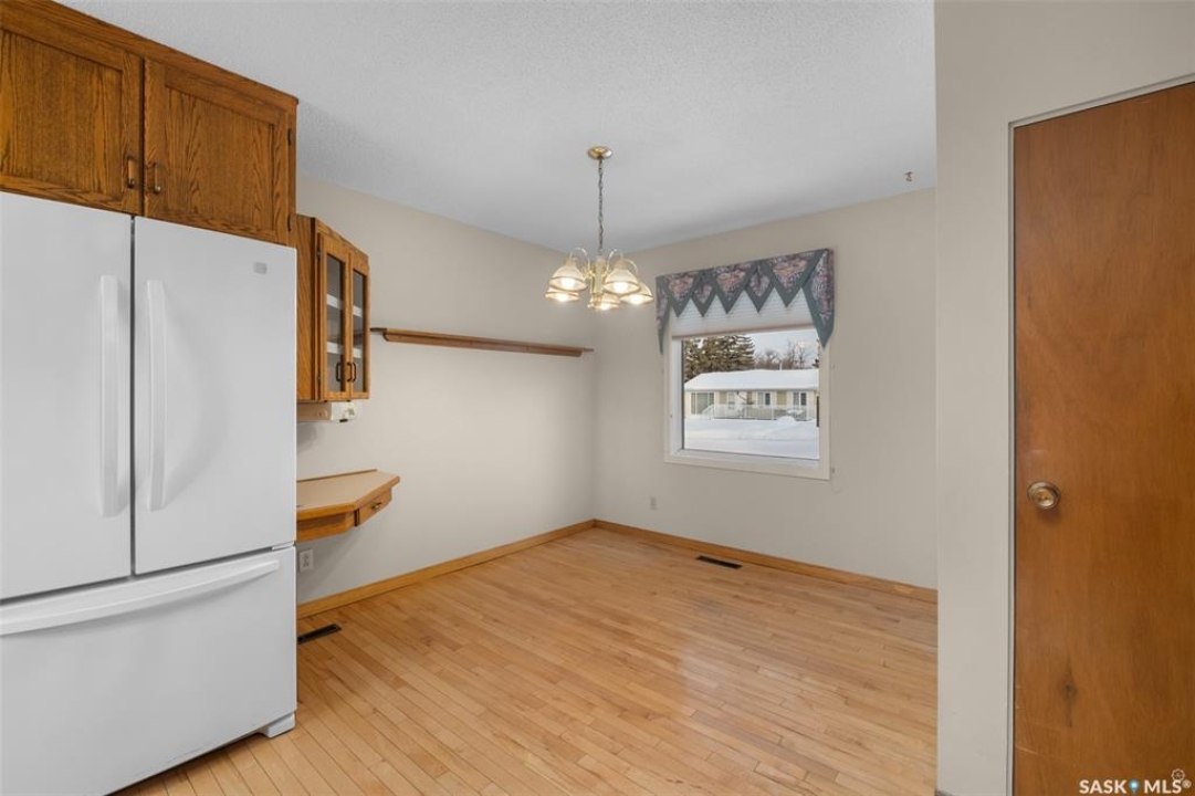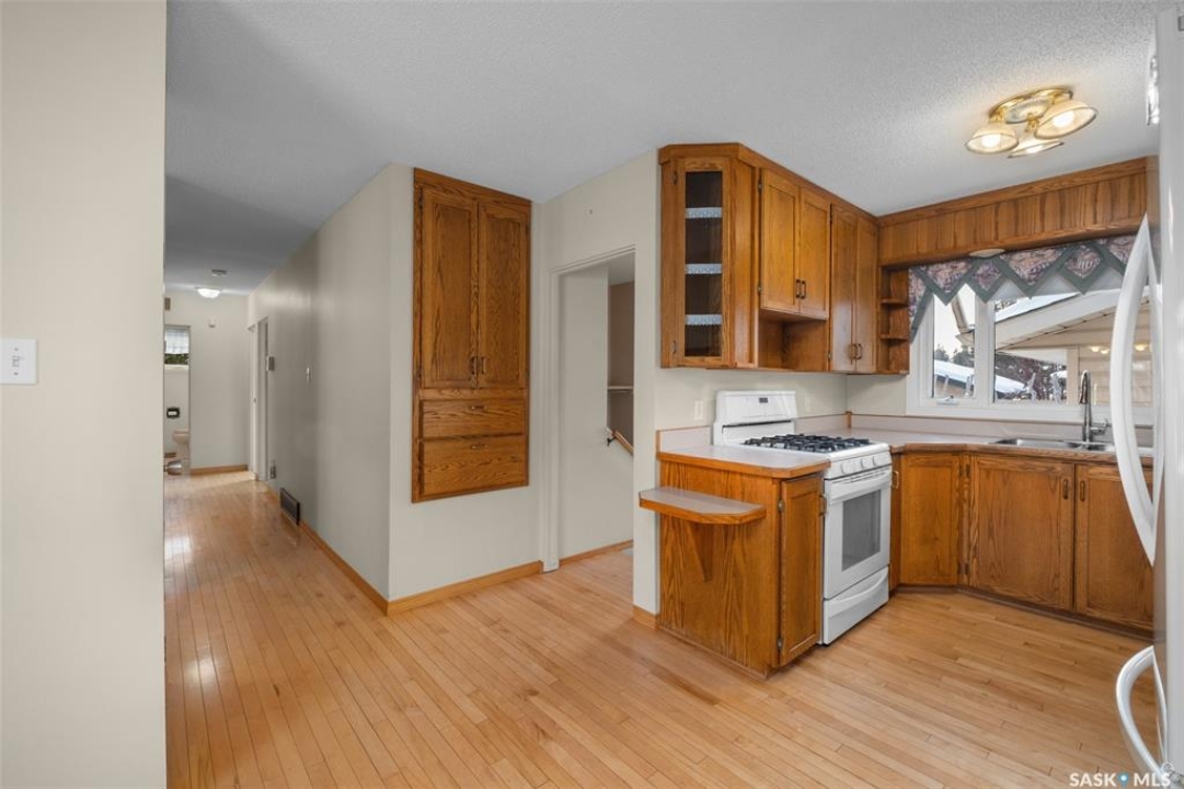 Exceptionally well maintained 3 bedroom and 2 bathroom bungalow located in the desirable Carlton Park neighbourhood! From the moment you step inside the hardwood floors throughout the main living areas set a warm and inviting tone. The main floor offers a large living room filled with natural light, a generously sized dining area and a spacious kitchen featuring a south facing window, ample cabinetry and counter space. There are also 3 good size bedrooms and a 4 piece bathroom that complete this level. The fully finished basement offers a cozy family room that features a wood burning fireplace that is ideal for relaxing or entertaining. This level also includes a 3 piece bathroom, convenient laundry room, versatile den suitable for a home office or hobby space, and a storage room that could easily be used as a workshop. Notable upgrades include shingles, furnace (2023), windows and doors. Situated on a beautifully maintained, fully fenced yard, complete with a garden area ideal for the green thumb, a south facing patio for outdoor enjoyment, and a single detached heated garage that has a new heater (2024). Located close to Cooke Municipal Golf Course, John Diefenbaker school, St. Catherine School and École Holy Cross School! Act now and make this your next home!