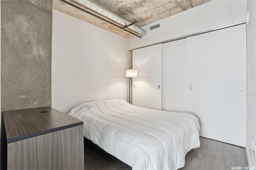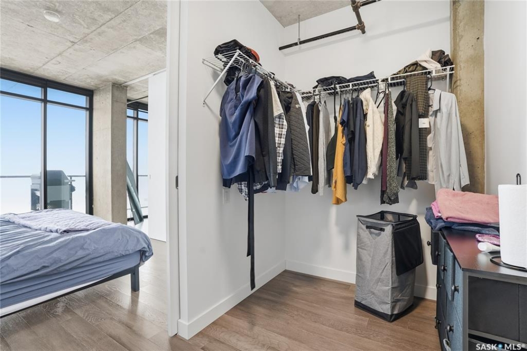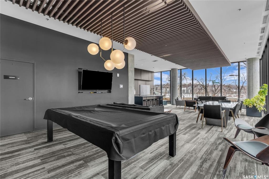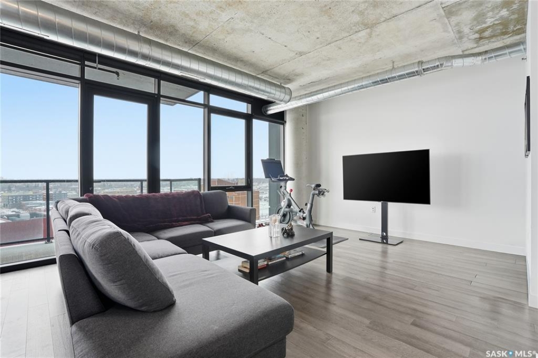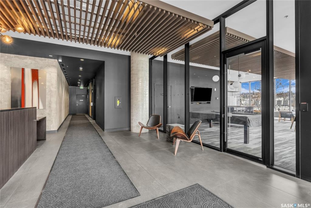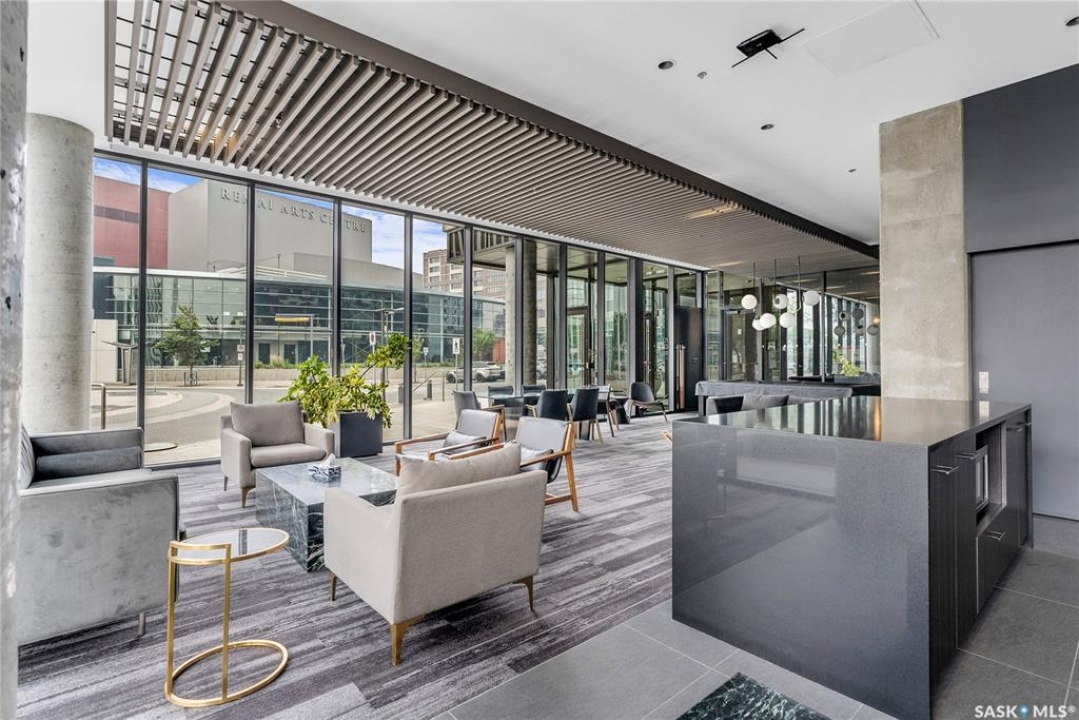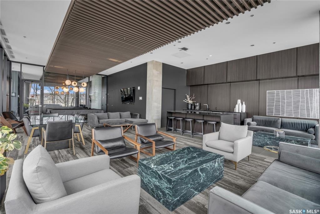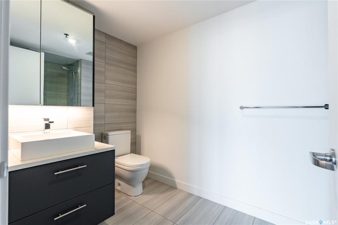Stunning 13th floor unit at No. 1 River Landing, featuring an expansive view of Saskatoon's downtown, River Landing Park and the South Saskatchewan River. Great layout with 9 ft concrete ceilings, kitchen with quartz counters and stainless steel appliances, 2 bedrooms + den and two bathrooms. Primary bedroom has direct access to the balcony and features a walk-thru closet open to your ensuite with a tiled shower. Second bedroom has a large closet and sliding door entry. Laundry (new washer & dryer!) and additional bathroom are tucked away from the main living space. The floor to ceiling windows run along the whole west side of the unit in the primary Bedroom and spacious living room. This home has central air conditioning, underground parking, storage space, gym and amenities room with pool table and kitchenette. Located just steps away from the river, Remai Modern, many local restaurants, the movie theatre and Midtown Mall. Easily access all downtown amenities and Circle Drive ensuring you're well-connected.
