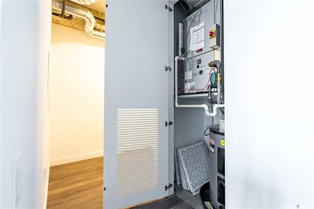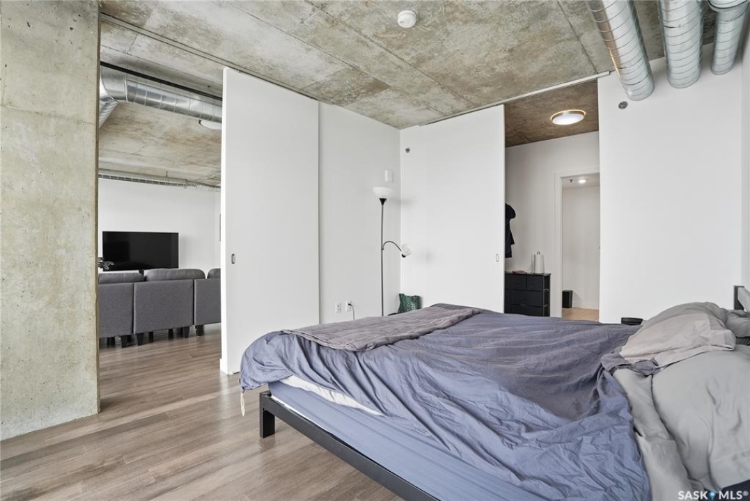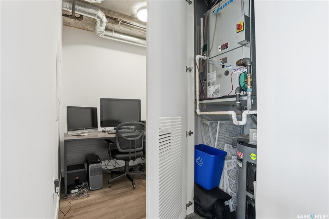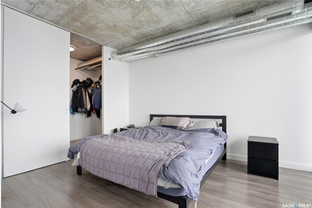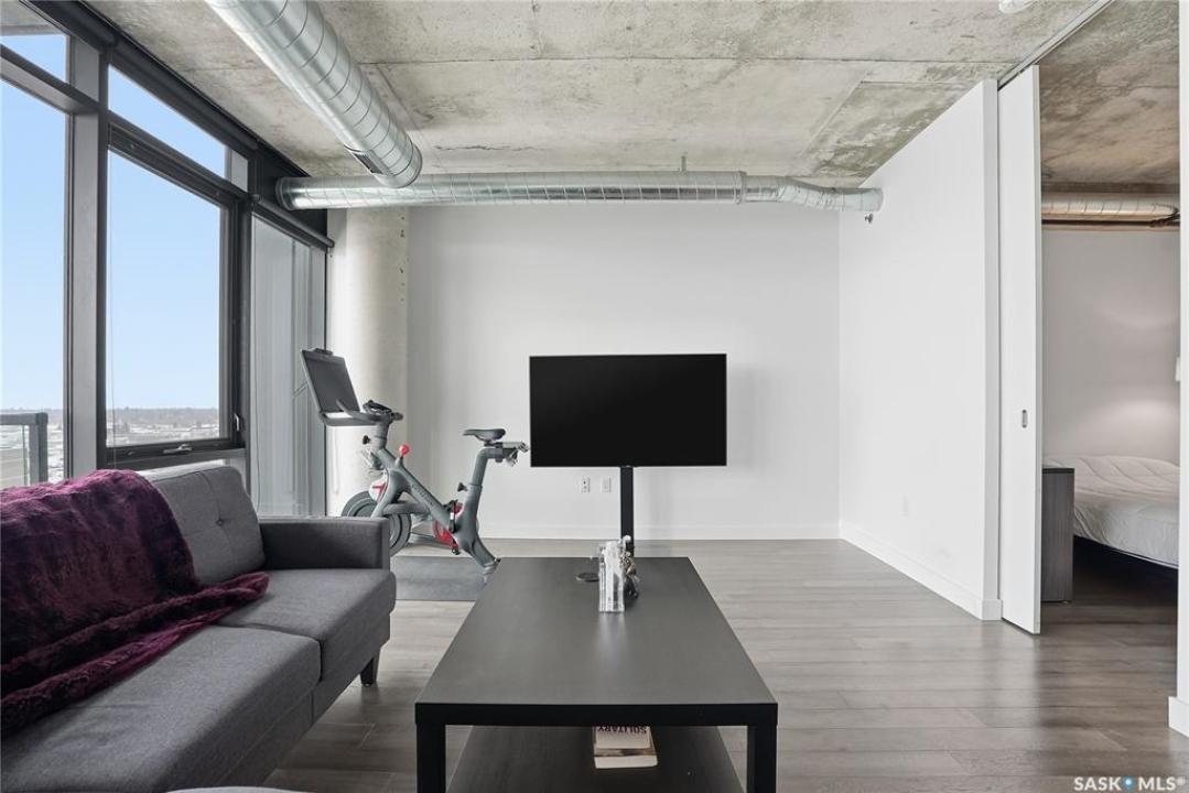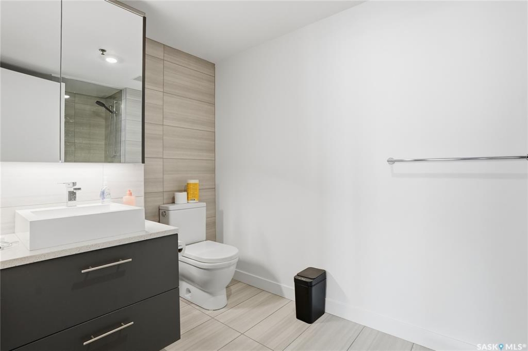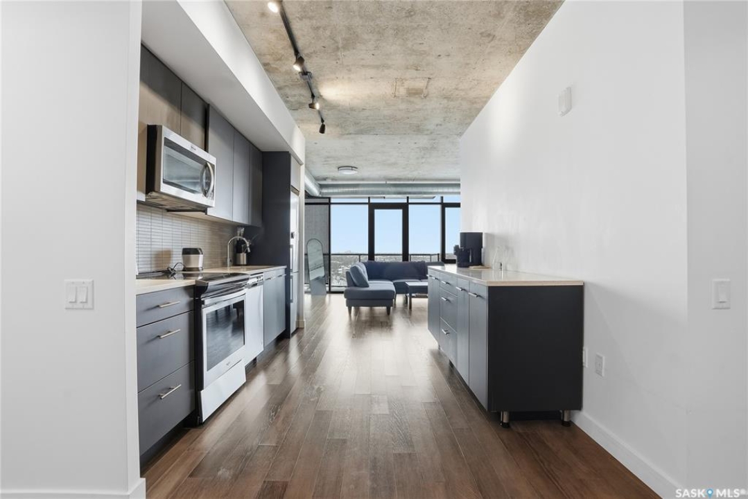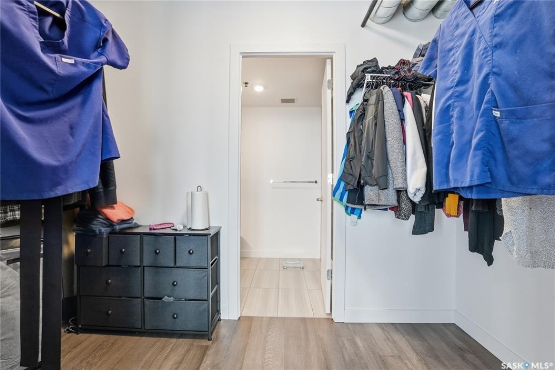 Stunning 13th floor unit at No. 1 River Landing, featuring an expansive view of Saskatoon's downtown, River Landing Park and the South Saskatchewan River. Great layout with 9 ft concrete ceilings, kitchen with quartz counters and stainless steel appliances, 2 bedrooms + den and two bathrooms. Primary bedroom has direct access to the balcony and features a walk-thru closet open to your ensuite with a tiled shower. Second bedroom has a large closet and sliding door entry. Laundry (new washer & dryer!) and additional bathroom are tucked away from the main living space. The floor to ceiling windows run along the whole west side of the unit in the primary Bedroom and spacious living room. This home has central air conditioning, underground parking, storage space, gym and amenities room with pool table and kitchenette. Located just steps away from the river, Remai Modern, many local restaurants, the movie theatre and Midtown Mall. Easily access all downtown amenities and Circle Drive ensuring you're well-connected.