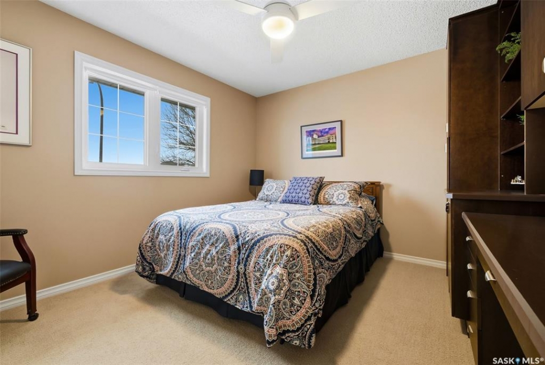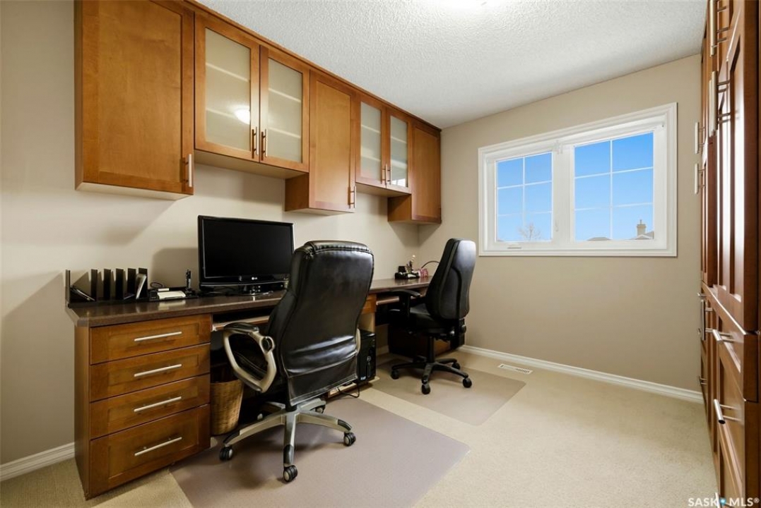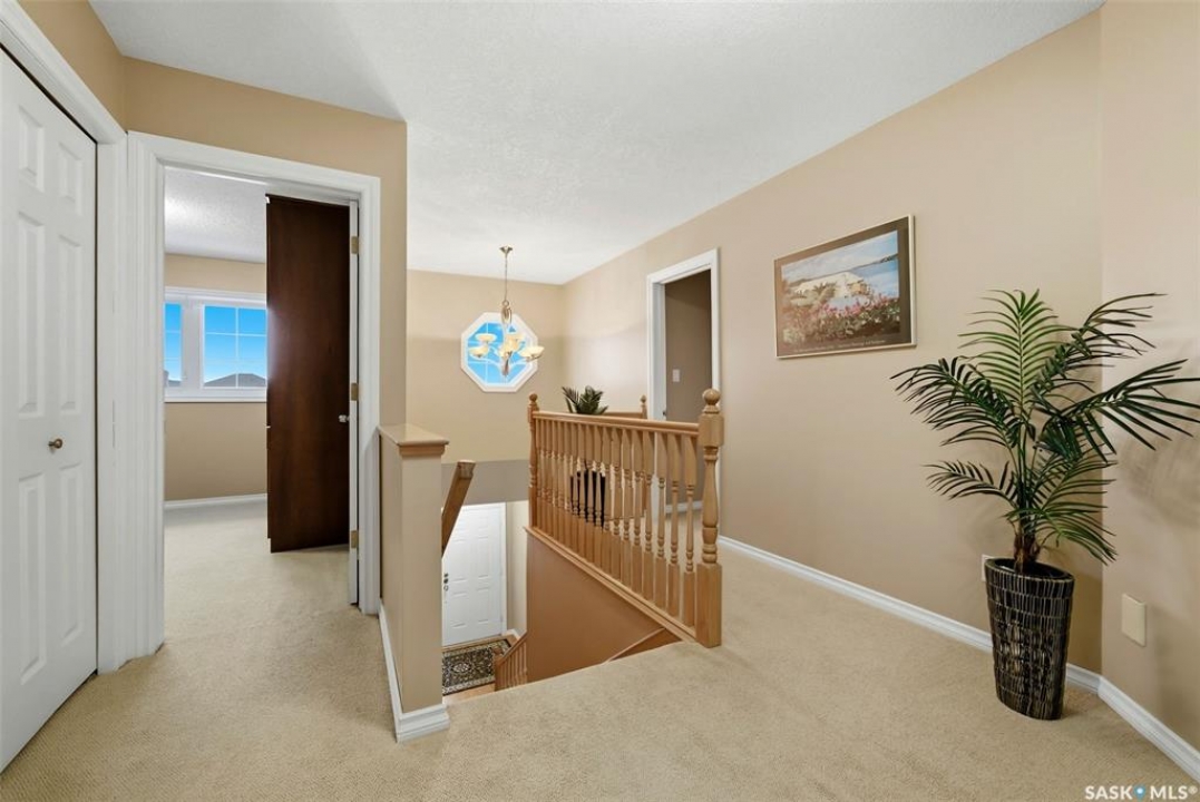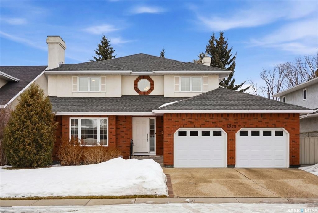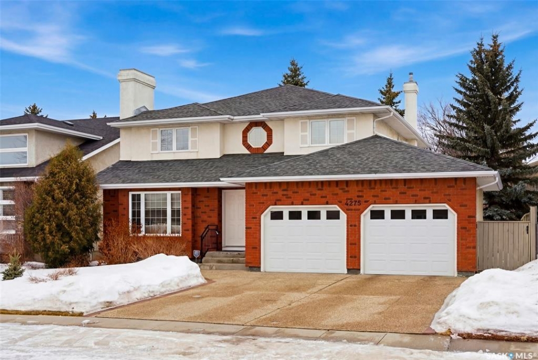 Located in a highly desirable neighbourhood, this impressive 2,510 sq. ft. custom built Munro home offers exceptional space, functionality, and family-friendly living. With 5 bedrooms, including two featuring custom built-ins, and a huge primary suite, this home is perfect for growing families or those needing flexible work-from-home space. The welcoming foyer features a built-in bench and opens to a bright formal living room with a large picture window and one of two gas fireplaces, flowing seamlessly into the formal dining area. Hardwood floors continue into the family room, where the second gas fireplace is complemented by built-in shelving. The spacious kitchen offers abundant cabinetry and counter space with granite countertops, plus a sunny eating nook with direct access to the beautifully landscaped backyard and patio—ideal for entertaining and family gatherings. The main floor is completed by a convenient half bath/laundry room and direct entry to the double attached garage. Upstairs, the oversized primary bedroom is a true retreat, featuring a walk-in closet and a luxurious ensuite with soaker jet tub. Three additional bedrooms complete this level, including one with built-in desk and storage, along with a full four-piece bathroom. The developed basement with a large recreation room, a framed fifth bedroom, and a beautifully renovated additional bathroom finishes off the lower level. The utility room includes built-in shelving, two high-efficiency furnaces (2011), central vacuum and attachments, triple pane windows on all levels installed in 2021. Shingles were replaced in 2015. A rare opportunity to own a spacious, well-maintained home in such a fantastic location. This one truly checks all the boxes.