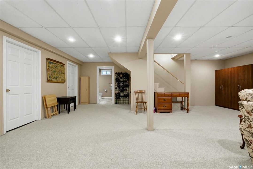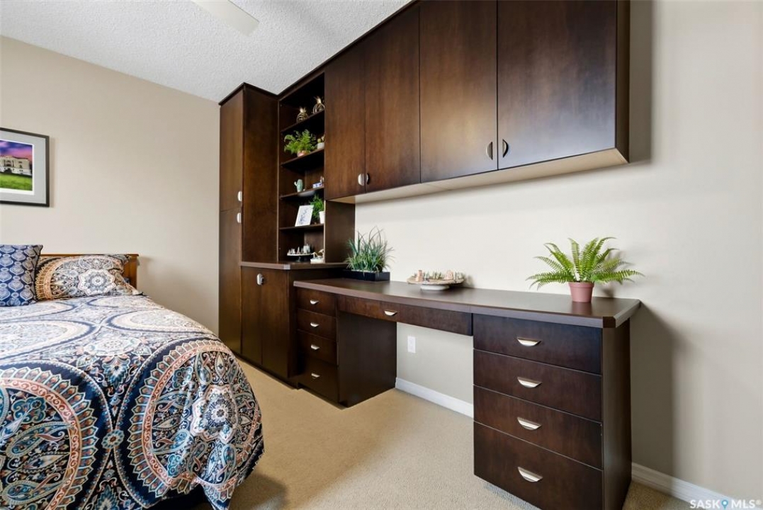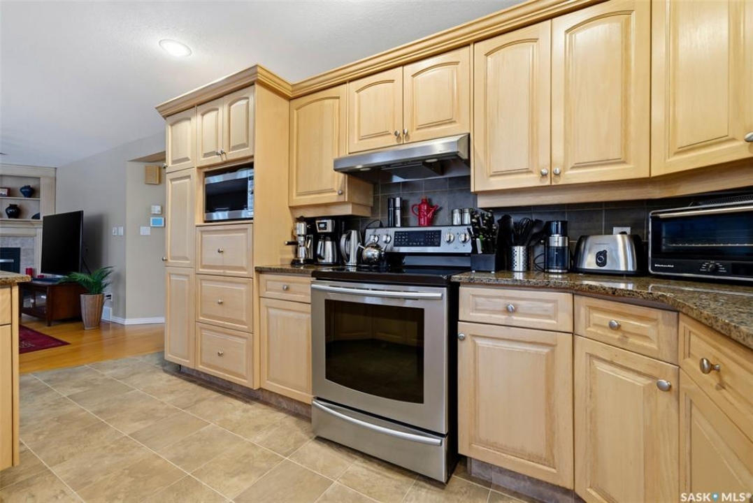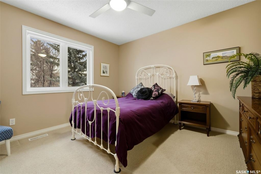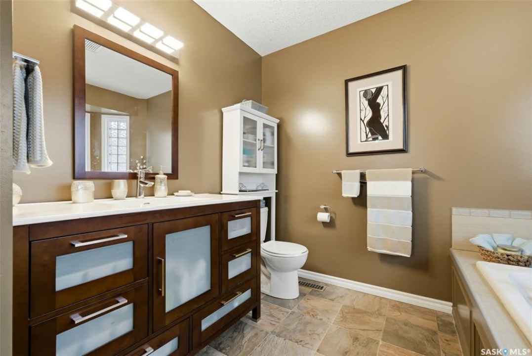 Located in a highly desirable neighbourhood, this impressive 2,510 sq. ft. custom built Munro home offers exceptional space, functionality, and family-friendly living. With 5 bedrooms, including two featuring custom built-ins, and a huge primary suite, this home is perfect for growing families or those needing flexible work-from-home space. The welcoming foyer features a built-in bench and opens to a bright formal living room with a large picture window and one of two gas fireplaces, flowing seamlessly into the formal dining area. Hardwood floors continue into the family room, where the second gas fireplace is complemented by built-in shelving. The spacious kitchen offers abundant cabinetry and counter space with granite countertops, plus a sunny eating nook with direct access to the beautifully landscaped backyard and patio—ideal for entertaining and family gatherings. The main floor is completed by a convenient half bath/laundry room and direct entry to the double attached garage. Upstairs, the oversized primary bedroom is a true retreat, featuring a walk-in closet and a luxurious ensuite with soaker jet tub. Three additional bedrooms complete this level, including one with built-in desk and storage, along with a full four-piece bathroom. The developed basement with a large recreation room, a framed fifth bedroom, and a beautifully renovated additional bathroom finishes off the lower level. The utility room includes built-in shelving, two high-efficiency furnaces (2011), central vacuum and attachments, triple pane windows on all levels installed in 2021. Shingles were replaced in 2015. A rare opportunity to own a spacious, well-maintained home in such a fantastic location. This one truly checks all the boxes.