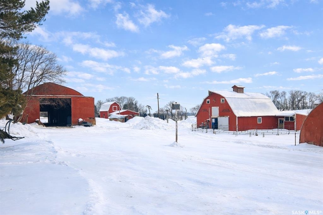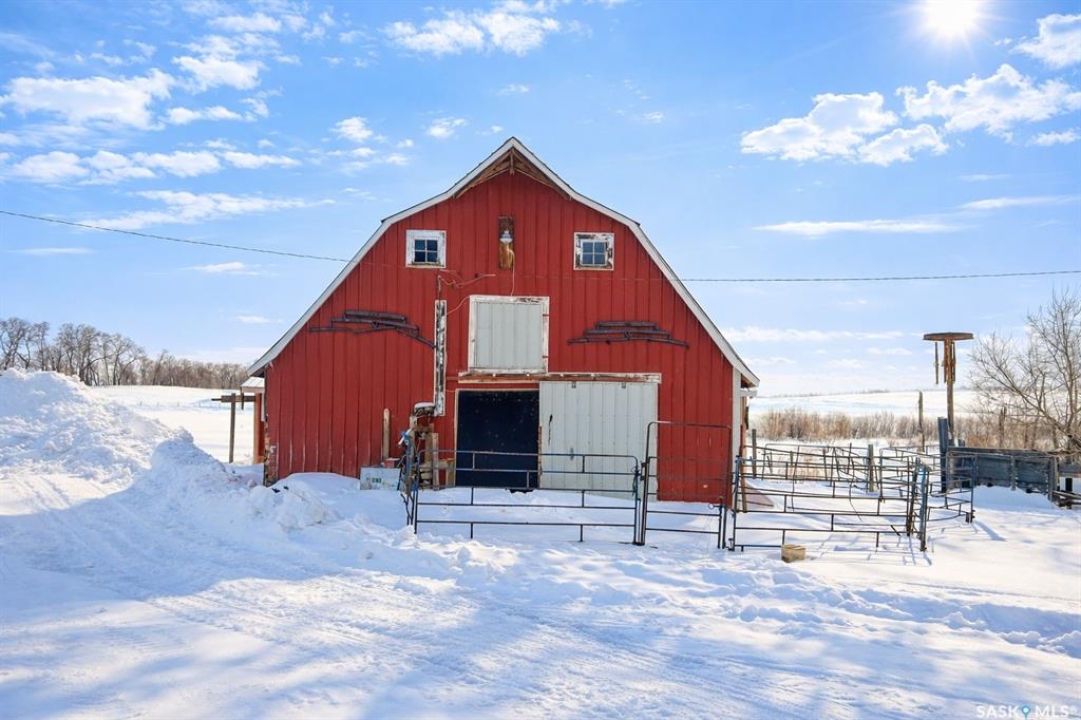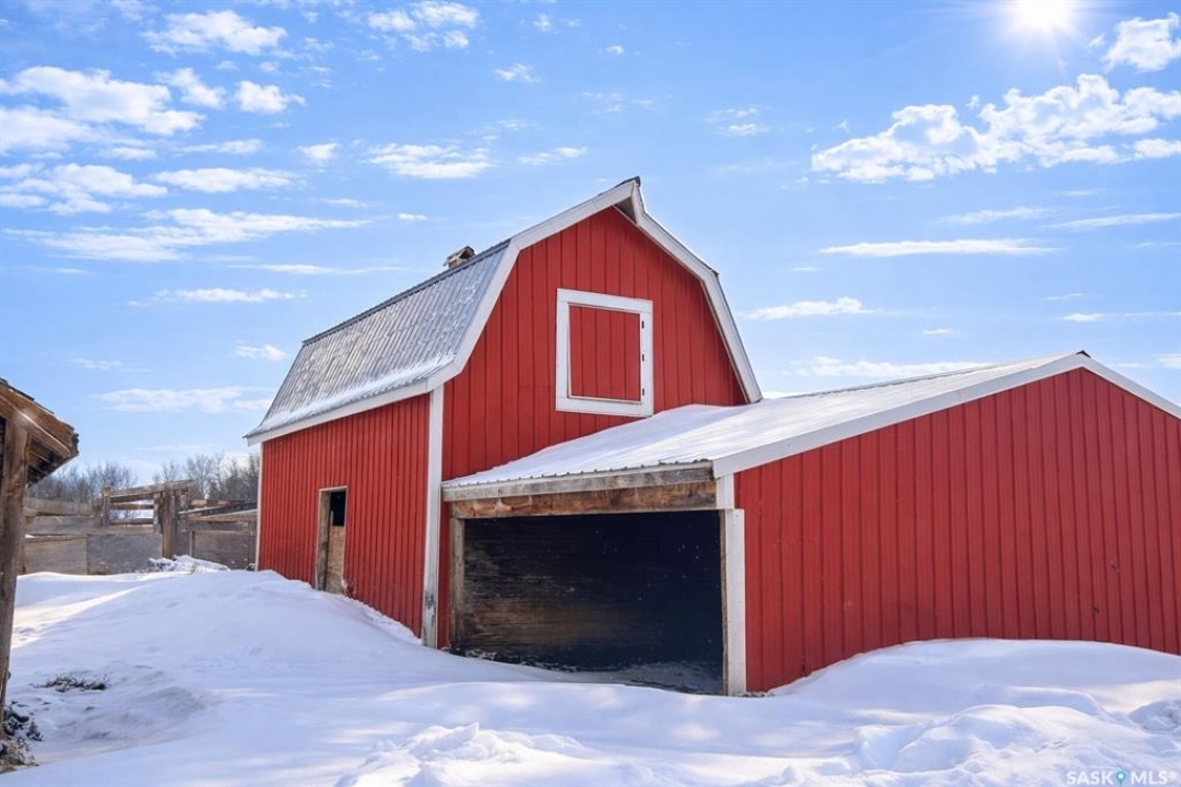 Welcome to this outstanding 17.04-acre country property, ideally located in the RM of Leask within the Brightholme District. Set in a peaceful and private rural setting, this well-developed farmstead offers an excellent opportunity for those seeking a hobby farm, small livestock operation, or tranquil country living with a move-in-ready family home. The beautifully established yard site is framed by sweeping prairie views and features an impressive collection of functional agricultural and utility buildings. Improvements include a large barn, a second mid-sized barn, pole shed/livestock shelter, brooder house with chicken coop, two heated watering bowls, an insulated 1,200 sq. ft. shop, a 1200-bushel hopper-bottom grain bin, and multiple additional storage sheds—providing versatility and ample space for equipment, animals, and projects. Adding unique historical charm is the original Brightholme Lutheran Parsonage, over a century old and still standing solid, offering rare heritage character to the property. The 1737 sq. ft. residence is a well-maintained four-bedroom, one-bathroom home that blends modern upgrades with warm country comfort. Recent improvements include a newly renovated kitchen, updated windows and doors throughout, a spacious porch addition, bright solarium, main-floor laundry, and a new propane furnace, ensuring efficiency and everyday convenience. The basement provides excellent additional space, ideal for a recreation room, along with a cold room and abundant storage. Outdoors, the mature yard is thoughtfully landscaped and includes a large garden area, fruit trees, and shrubs, enhancing both the visual appeal and self-sustaining potential of the property. This is a rare opportunity to own a turn-key acreage offering privacy, functionality, and character in a serene rural location—perfect for those looking to embrace country living without sacrificing comfort.