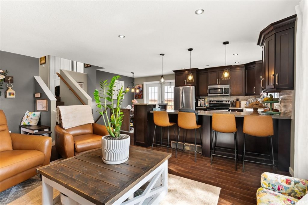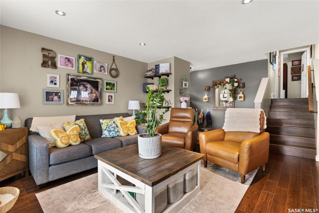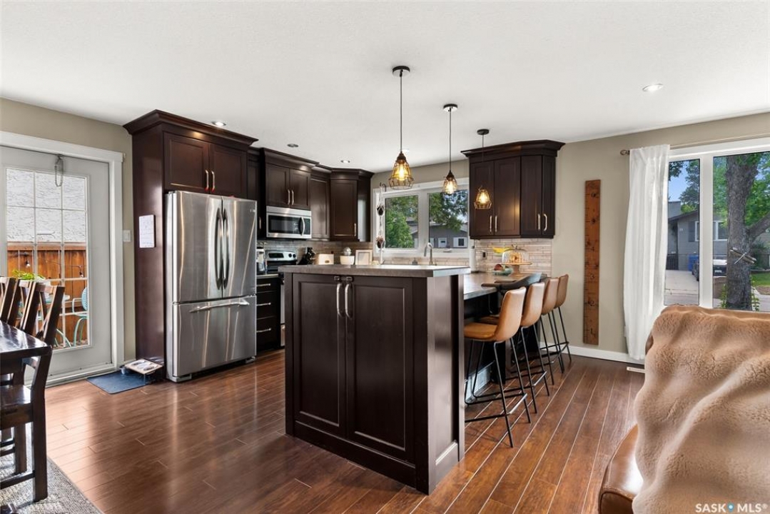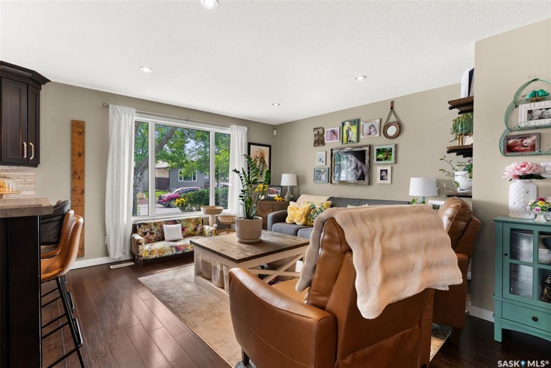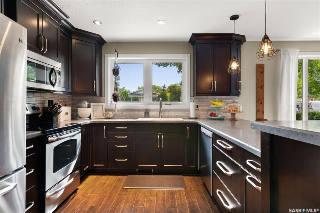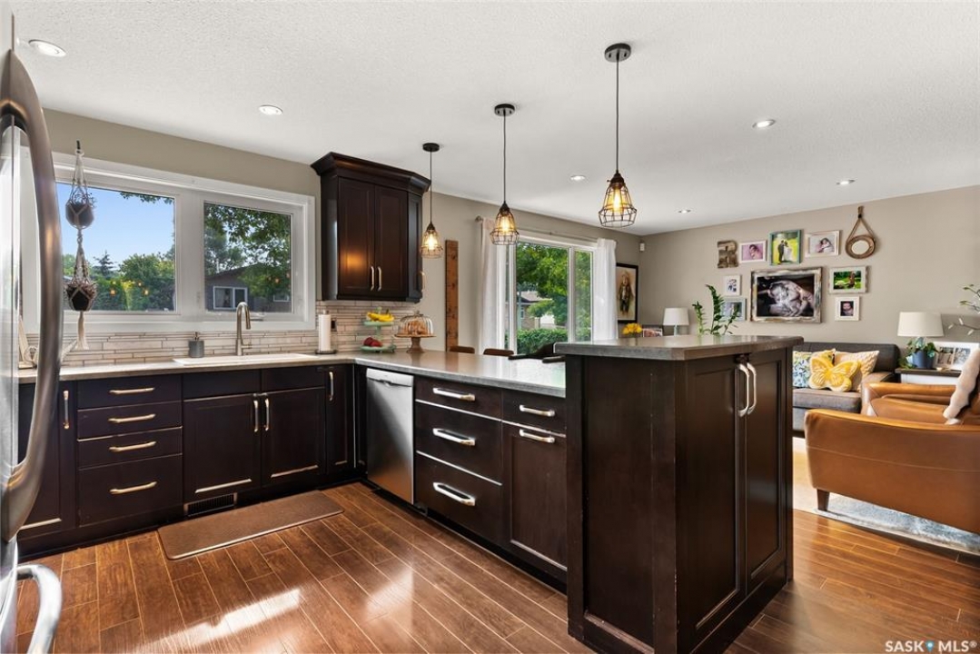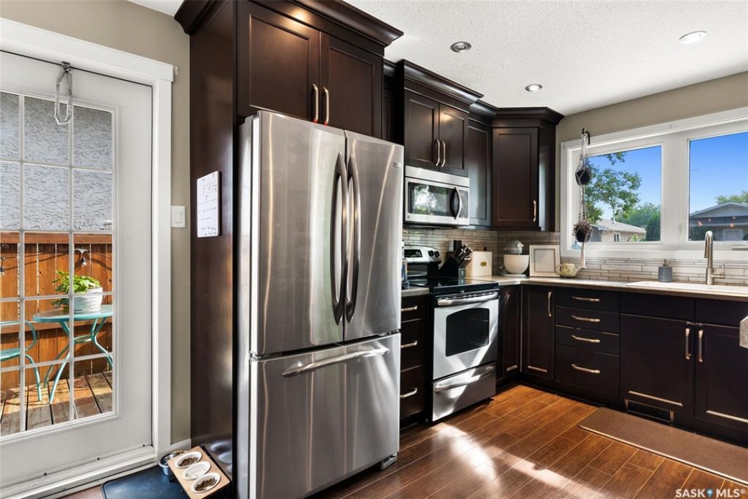 Fully finished three level split home with approximately 1500 sq ft of total living space is setup on a quiet crescent. Main level includes large east facing living-room window, updated kitchen with large sit up island, newer appliances, separate dining area with direct access to deck with natural gas bbq connection. Upper level includes three bedrooms. Updated three piece bath. Lower level with rec-room, plus an additional room that could be setup as home office, gym or bedroom, two piece bath and laundry. Back yard is fully fenced and landscaped. Bonus items: All appliances included, PVC windows, updated High Efficient Furnace and A/C.