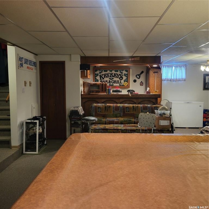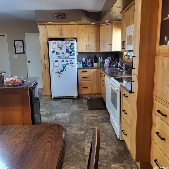 RM of Cana #214. Located only 7 miles east of Melville along Hwy #15 sits this beautiful quarter of land with an immaculate 11 acre yard site. The sellers are the original owners and built the house and developed the yard site. The house hade double 2" x 4" walls, newer triple pane PVC windows, stucco exterior, custom built kitchen cabinets, wood fireplace and composite decking on both decks. there are 3 bedrooms on the main floor plus another bedroom in the basement. the master bedroom also has a 2 pc ensuite. The laundry room is conveniently setup at the back entrance. The basement is fully developed with a huge family room, wet bar and another bathroom. The property is hooked up to the Yorkville water pipeline for an excellent water source. there is also a large dugout with a well beside it and has a pressure system in the house and can be used to water the garden and lawn area. The 28' x 32' garage has matching stucco finish with the house and has power and cement floor. There are numerous garden sheds, some with power, for extra storage. The fire pit area has brick walk way, with a TV stand and is well sheltered with trees and shrubs.