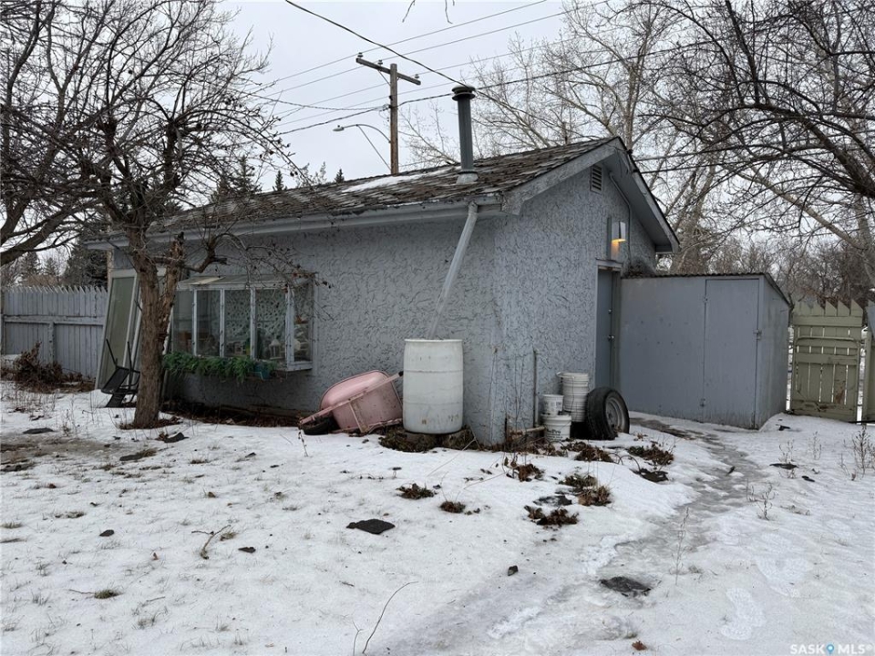 Welcome to this well-located home in a quiet and desirable South Hill neighbourhood. Situated on a large corner lot with mature landscaping, this property offers space, privacy, and excellent proximity to family-friendly amenities. A playground is located right beside the home, a convenience store and the Cornerstone School is just a couple of blocks away. The main floor features a decent size living room with large picture window, two bedrooms, a full bathroom, a spacious eat in kitchen with a built-in cabinet and lots of cupboards, and an abundance of original woodwork that adds character and charm throughout the whole main floor. An attached porch/sunroom overlooks the fully fenced backyard, providing a comfortable space to relax and enjoy the outdoors. The basement offers a wide stairwell for easy furniture access and includes two dens, a family room, and plumbing in place for a future bathroom. The basement does require some renovating, presenting a great opportunity for buyers to add value and customize the space to their needs. Outside, the property includes a single detached garage with heater -sold “as is” -off-street parking, a patio area, and a brick firepit—ideal for outdoor entertaining. Most furniture, appliances, and household items are included in the sale with no warranties or representations. Property is being sold “as is.”