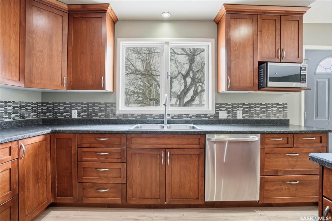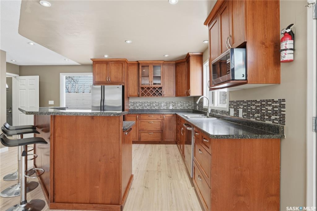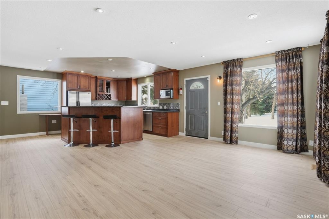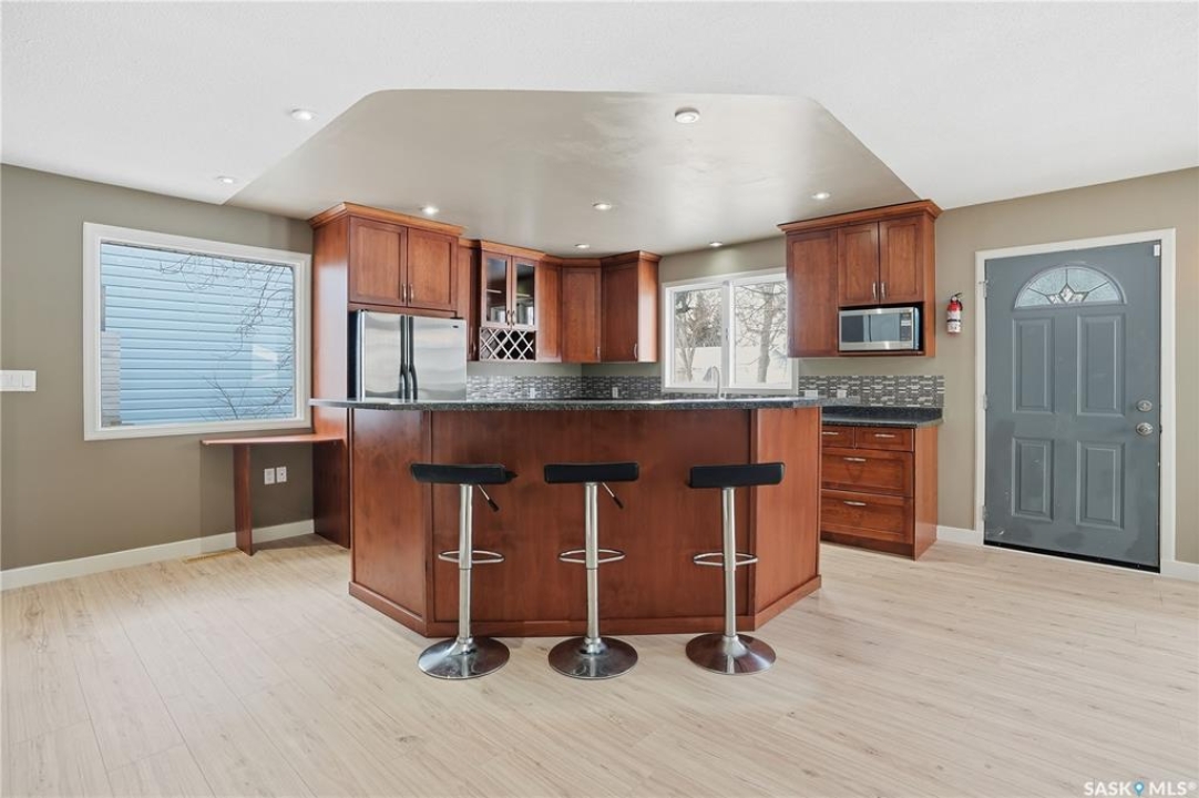 Welcome home to this fully finished 1,020 sq. ft. bungalow in the heart of Davidson, ideally located between Saskatoon and Regina. Just one block from the elementary school, this family-friendly location allows you to watch the kids walk to school right from your window. This well-cared-for home offers 2+1 bedrooms and two bathrooms, along with a beautiful, spacious kitchen featuring plenty of cabinets, ample counter space, and brand-new flooring that flows seamlessly through the living room, kitchen, and dining area—perfect for everyday living and entertaining. The convenience of main-floor laundry and the abundance of storage throughout the home add to its ease and functionality. All appliances are included, making this home truly move-in ready. The fully finished basement provides excellent additional living space, featuring a great flex area complete with a wet bar and built-in safe. Outside, enjoy a generous-sized yard ideal for relaxing or hosting friends and family, as well as an oversized single detached insulated garage. Whether you're downsizing, purchasing your first home, commuting to Saskatoon or Regina, or simply looking for comfortable living in a welcoming community, this home checks all the boxes. Priced to sell. Contact your REALTOR � today to book your own private viewing.