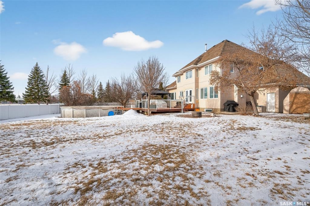RARE OPPORTUNITY! Located on a highly sought-after family-friendly neighborhood where homes like this rarely come available, this exceptional executive-style home is perfectly positioned on a huge lot backing onto green space. Offering privacy, space, and an incredible layout, this custom-built home checks every box for the growing family. From the moment you step inside, you'll be impressed by the bright, open design featuring a grand staircase and soaring vaulted ceilings. The main floor is thoughtfully designed for everyday family life and entertaining, offering a dedicated home office, spacious living room with adjoining formal dining area, and a beautiful kitchen with abundant cabinetry, excellent prep space, and timeless finishes. The kitchen flows into a sunny breakfast nook with garden doors to the deck and a cozy family room highlighted by a natural gas fireplace. A convenient 2-piece bath and a mudroom/laundry room with direct access to the heated 2-car garage complete the main level. Upstairs, the family-friendly layout continues with three generously sized children's bedrooms, a full 4-piece bathroom, and a stunning Primary Bedroom featuring a huge walk-in closet, luxurious 5-piece ensuite, and large windows that flood the space with natural light. The fully finished basement offers endless possibilities with an oversized rec/family room ideal for a home gym and TV area, a den perfect for toys or crafts, a large bedroom, a 4-piece bathroom – perfect for company, and a clean, efficient mechanical/storage room. Step outside to your own backyard oasis—fully fenced, beautifully landscaped, and backing green space. Enjoy a large deck with gazebo, fire-pit area, storage shed, adorable playhouse, and a natural gas–heated above-ground pool. This is the kind of backyard kids dream of and families gather in—an exceptional home in an unbeatable location where memories are made.