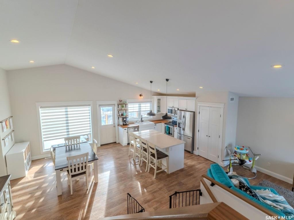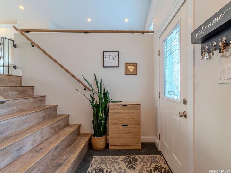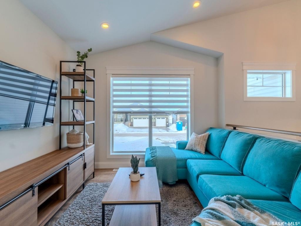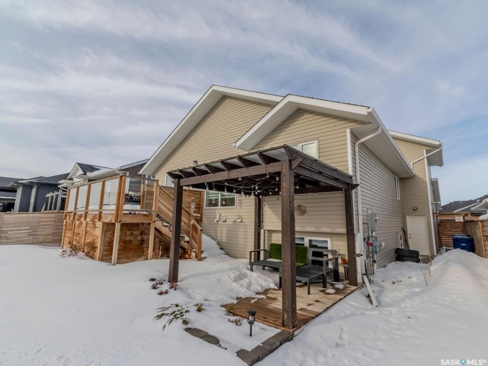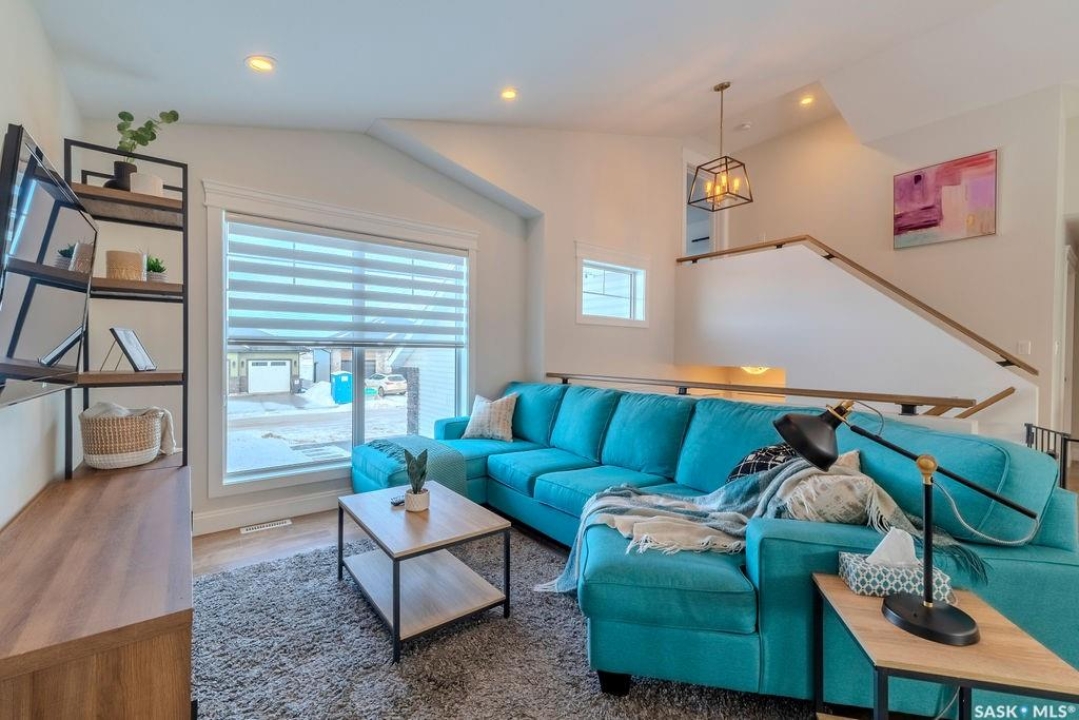 Fully finished & very well kept (original owners)! Welcome to 203 Settler cres. Unique modified bi-level home in the growing community of Warman on a high-end street close to the new school, sports complex, groceries, walking trails & the water! You'll love this floor plan that's refreshingly different from many other homes in town. Wide stairway as you walk in leading you onto the open concept main level. Bright/ clean feel with light tones, vaulted ceilings and lots of natural light. Main floor features a kitchen with island (great for entertaining guests), electric fireplace, full bath and two spare bedrooms. The primary bedroom is on the second level and has a large walk-in closet + 5pc en-suite bathroom with double sinks. Basement is fully finished with large/open family room, 3pc bath (walk-in shower), bedroom and a large laundry room that could also be an office/den. Beautiful street appeal with a concrete driveway, custom paving stone walkway & lawn (UG sprinklers front & back). The South facing backyard has a lovely 2 tier deck with a covered/private portion. Also has waterproof storage underneath. Other notable features include central air, trees/shrubs, sprinkler valves to stay & double attached nat gas heated garage with direct entry. With fantastic pride of ownership, this home has it all! Perfect for a growing family in a wonderful area. Available for early April possession (April 10 give or take). Don't wait, contact today!