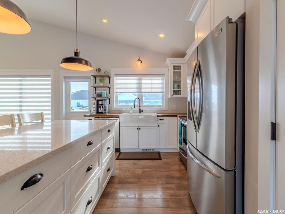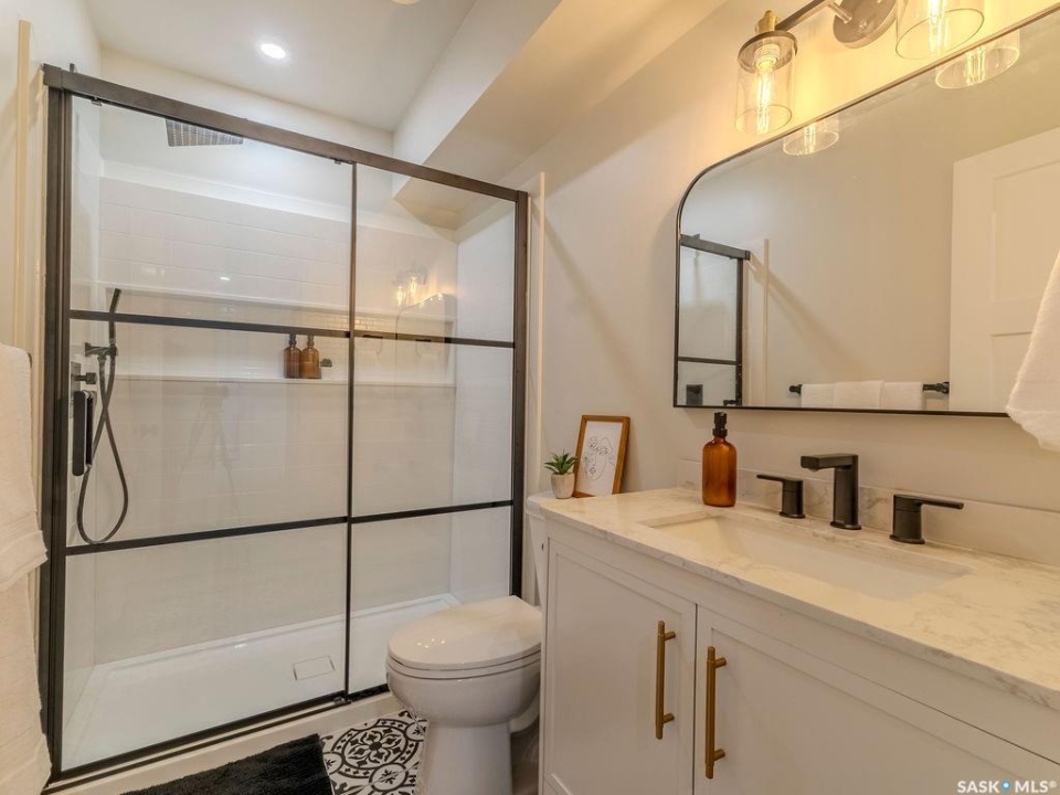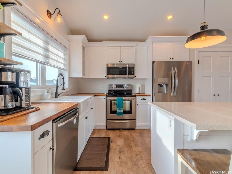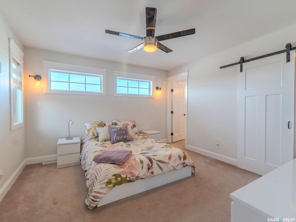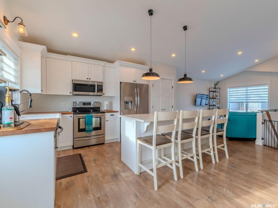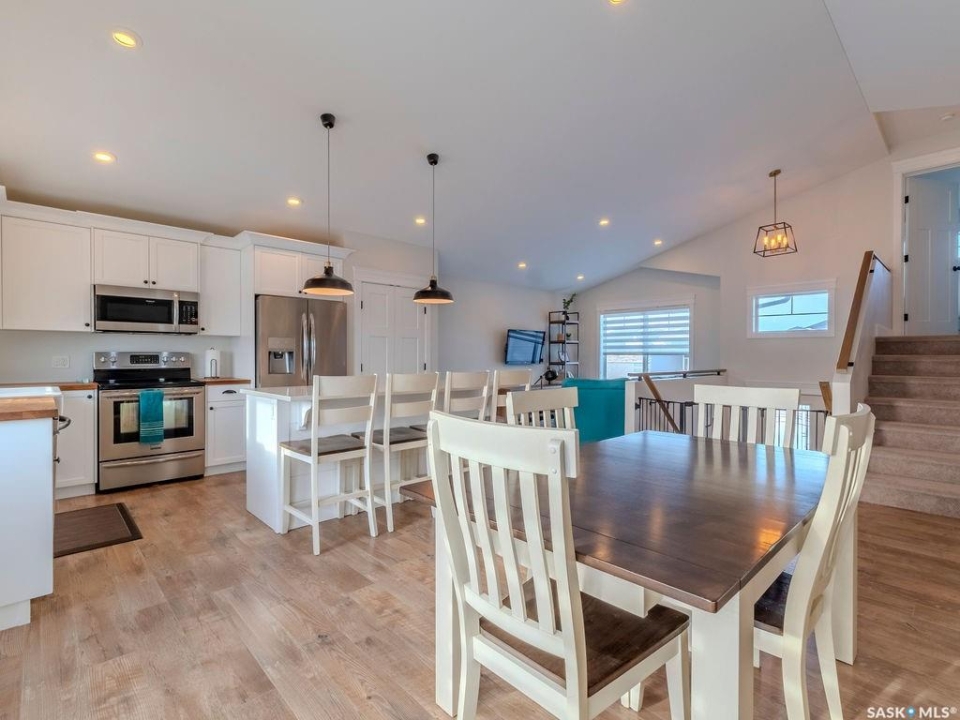 Fully finished & very well kept (original owners)! Welcome to 203 Settler cres. Unique modified bi-level home in the growing community of Warman on a high-end street close to the new school, sports complex, groceries, walking trails & the water! You'll love this floor plan that's refreshingly different from many other homes in town. Wide stairway as you walk in leading you onto the open concept main level. Bright/ clean feel with light tones, vaulted ceilings and lots of natural light. Main floor features a kitchen with island (great for entertaining guests), electric fireplace, full bath and two spare bedrooms. The primary bedroom is on the second level and has a large walk-in closet + 5pc en-suite bathroom with double sinks. Basement is fully finished with large/open family room, 3pc bath (walk-in shower), bedroom and a large laundry room that could also be an office/den. Beautiful street appeal with a concrete driveway, custom paving stone walkway & lawn (UG sprinklers front & back). The South facing backyard has a lovely 2 tier deck with a covered/private portion. Also has waterproof storage underneath. Other notable features include central air, trees/shrubs, sprinkler valves to stay & double attached nat gas heated garage with direct entry. With fantastic pride of ownership, this home has it all! Perfect for a growing family in a wonderful area. Available for early April possession (April 10 give or take). Don't wait, contact today!
