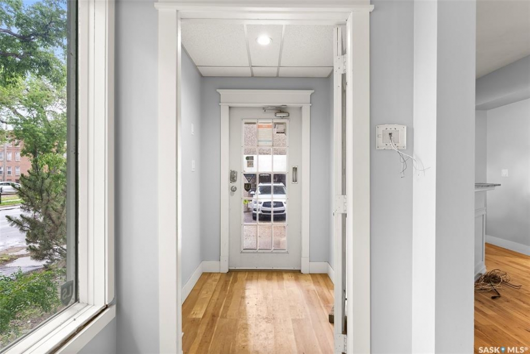 Discover an exceptional opportunity for a 2,547 sqft building in Downtown's highly coveted area. Previously utilized as a spa and more recently as a law office, the space is currently optimized for office use, boasting excellent potential for multi-office configurations. The main floor features a welcoming reception area, freshly painted and renovated offices, and a convenient half bath. Upstairs, the second floor showcases a 3pc bath, a kitchen, a spacious living/dining room, a versatile bedroom/office space, and a laundry room complete with washer and dryer. The second floor living area can serve as residential quarters or be leased separately. On the upper level, the third floor offers two rooms illuminated by a beautiful skylight, along with a 3pc bath. This property presents a unique opportunity for diverse business ventures or residential purposes, blending practicality, convenience, and potential income streams.
