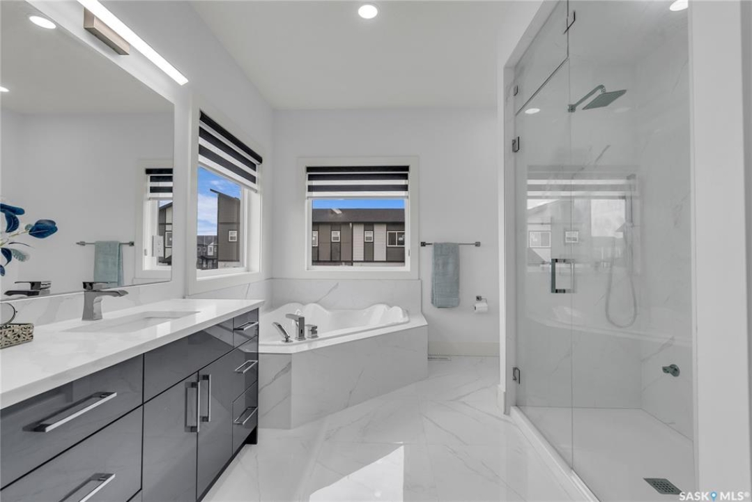 This one-of-a-kind 2,619 sq ft 2 storey home beams w/ modern elegance & the upmost quality. Walking into your foyer w/ oversized tile floors, chandelier, & elegant staircase leading you to the 2nd level. Main floor living space, w/ 10 ft ceilings, wide plank laminate flooring, upgraded trim/baseboards, tile feature wall, cove ceiling, recessed lighting, gas fireplace w/ stone accent, built-in sound system & motorized blinds. Leading to your dinette & kitchen w/ high-end appliances including dishwasher, glass top stove, built-in microwave & oven, Frigidaire fridge/freezer combo, custom vented hoodfan, soft-close cabinets, Calcutta quartz island w/ waterfall edge, custom backsplash/lighting pack. Equipped w/ a 2nd prep kitchen w/ quartz counter, backsplash, gas range w/ powerful exhaust fan, garburator, & walk-in pantry w/ custom shelving. Bedroom, 4pc bath w/ heated floors complete this floor. 2nd level primary bedroom, motorized blinds, ceiling fan, built-in speakers,walk-in closet w/ custom floor to ceiling mirror, ensuite w/ Calcutta quartz double vanity, jet soaker tub, tempered glass shower w/ tile surround, rainfall shower w/ steam option & heated tile flooring. 2 additional good sized bedrooms, 4-pc bath & walk-in laundry room w/ S.S sink & tile floors, additional bonus room w/ French doors & built in speakers, complete the 2nd floor. Basement equipped w/ full legal suite w/ separate entrance, laminate flooring, 2 bedrooms, separate laundry, SS appliances, 4pc bath w/ tile floors, quartz countertops, separate furnace/HRV unit. Additional bedroom in basement w/ 4pc ensuite that is in the owners side, but is being presently rented to tenant along with basement suite. Coming to your park backing yard, w/ upgraded metal fencing, oversized composite deck w/ glass aluminum railing, glass privacy screen, & BBQ gas line. Double attached heated garage w/ high ceilings, upgraded triple car driveway, security cameras, 2ft concrete apron around the home. B'ment rent $1700