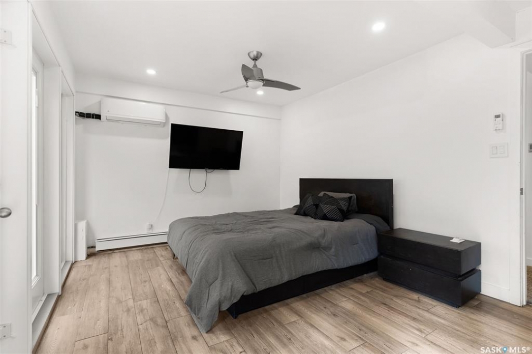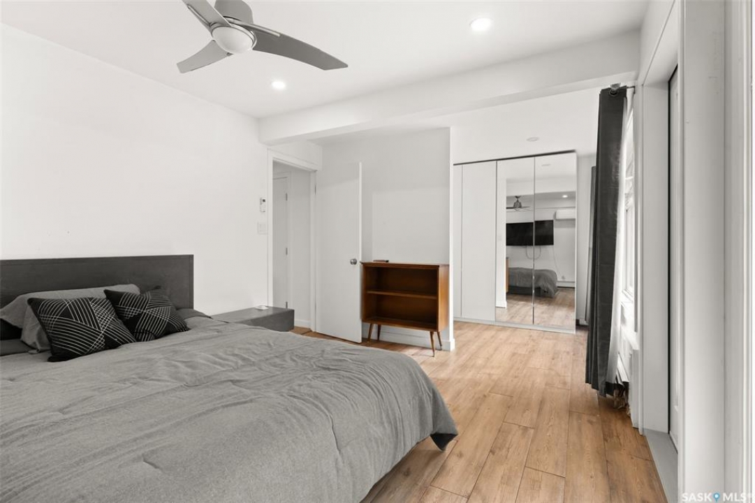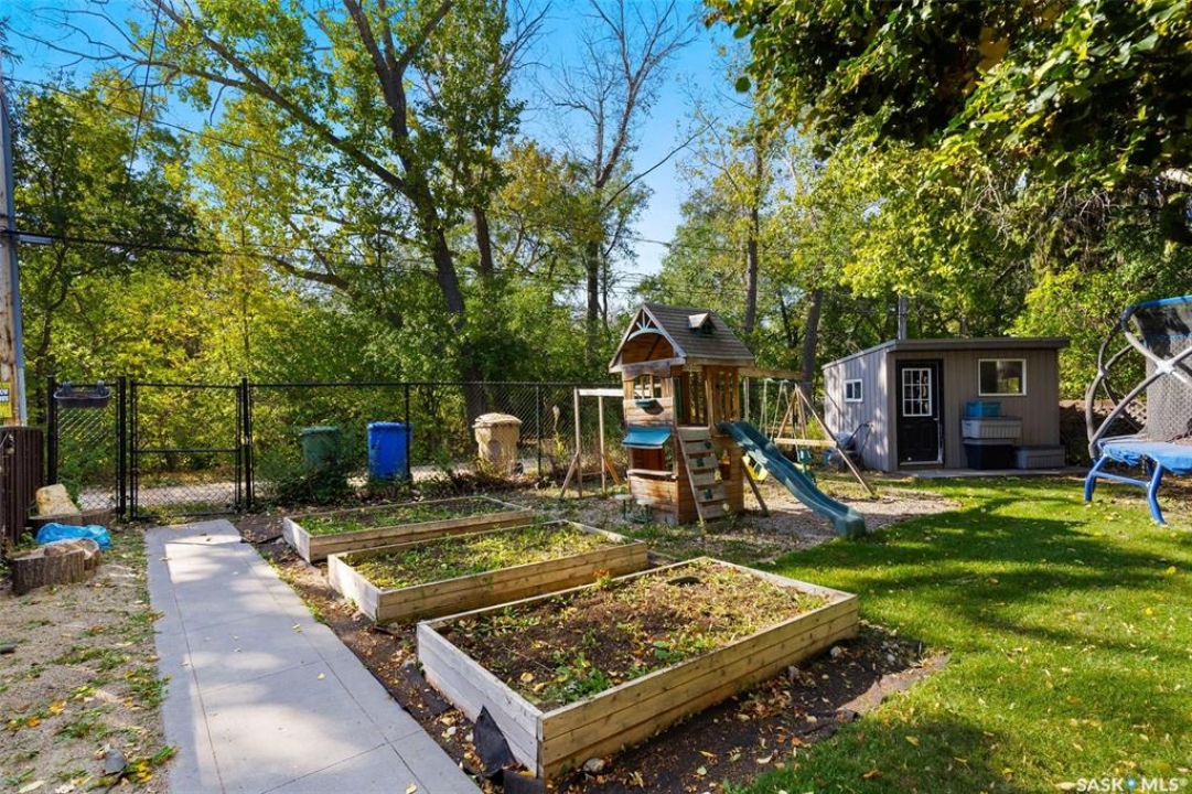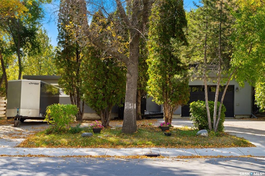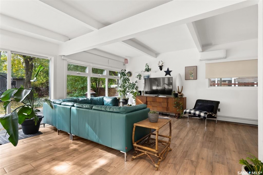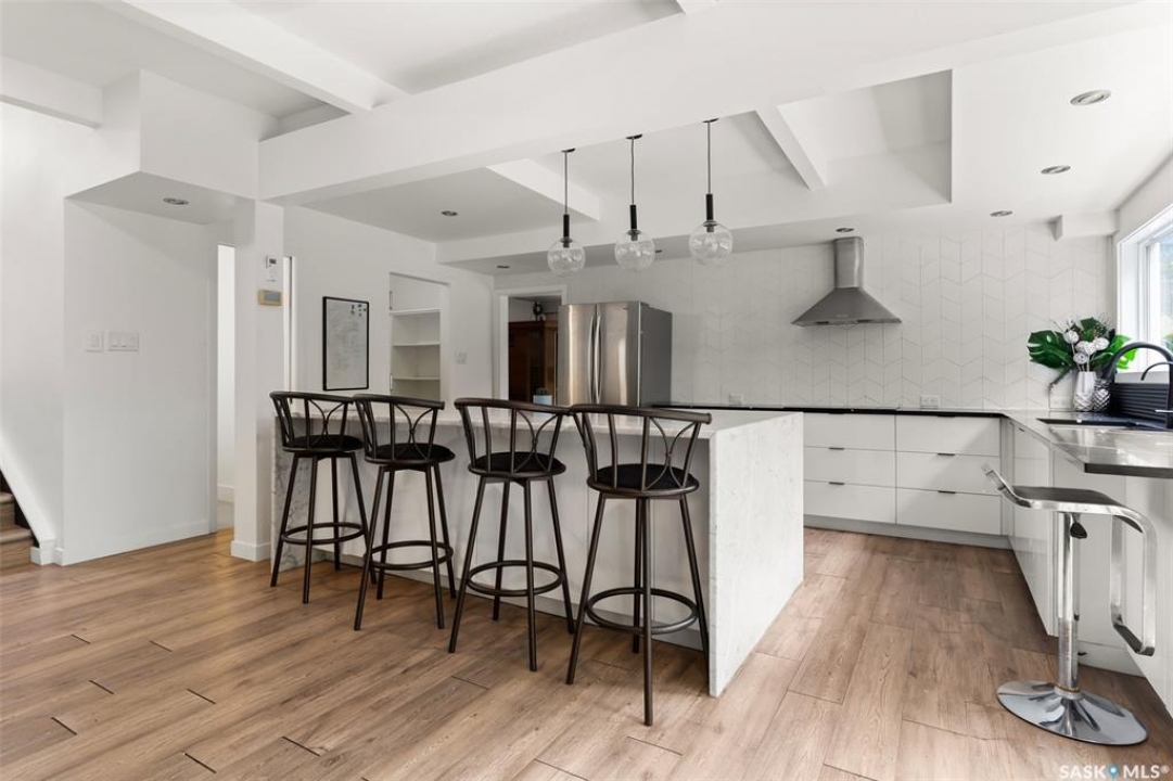 Welcome to 3051 Quinn Drive, a beautifully updated mid-century modern home in Regina's desirable Arnhem Place neighbourhood. This rare property is steps away from the lush green spaces of Wascana Park, offering unmatched access to walking trails, playgrounds, and the lake just steps from your door. This split-level home boasts over 2,500 sq. ft. of living space with an open-concept design, exposed beams, and oversized windows that fill the home with natural light. The stylish kitchen features quartz countertops, modern cabinetry, stainless steel appliances, a gas range, and a large island with seating. Multiple living areas, including a sun-filled living room and lower-level family/media room, provide flexibility for both relaxation and entertaining. The home offers 3 bedrooms and 3 bathrooms, including a spacious primary suite and updated spa-like bathrooms. A sauna, versatile recreation spaces, and contemporary finishes enhance everyday comfort. Outdoors, the private backyard is a true retreat with mature trees, a large patio, raised garden beds, and room for kids to play. The property also includes a double attached garage and additional driveway parking. Located in one of Regina's most sought-after areas, you'll enjoy the perfect balance of nature and convenience, with schools, downtown, and amenities all nearby. Don't miss this opportunity to own a one-of-a-kind home in an incredible park-side location!