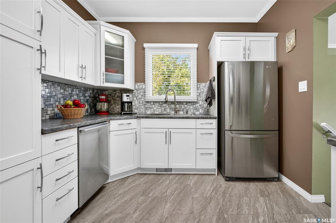 A HOME YOU HAVE BEEN WAITING FOR - Warm & Inviting...Totally updated including new concrete basement (2000). From the moment you step into the front veranda you will be impressed. Main floor features cozy living room opening into a large dining room with built in china cabinet. Beautiful bright kitchen with lots of crisp white cabinets, stainless appliances including built in dishwasher. 2 bedrooms - both carpeted. Stunning bathroom with walk in shower. And a cozy east facing sun room/sitting room that is perfect for your morning coffee. House was lifted in 2000 and a new concrete basement poured - new water and sewer lines done at same time . 8 ft basement walls are insulated and gyproced. Basement has laundry area with washer and dryer included and a 2pce bath - the rest is open for future development - perhaps a bedroom with an ensuite , a family room - endless possibilities. There are so many updates to this beautiful home - starting with the new basement, siding, soffits, facia, vinyl fencing, updated windows up and down, exterior and interior doors, flooring including high end laminates and luxury vinyl, updated kitchen and bathroom. Other features include central air, central vac, underground sprinklers front and back, composite deck off back door plus a concrete patio. Single detached garage plus off street parking. Adjacent to a park and within walking distance to Civic Centre Plaza and T&C Mall.. CALL A REALTOR TODAY TO BOOK YOUR SHOWING......