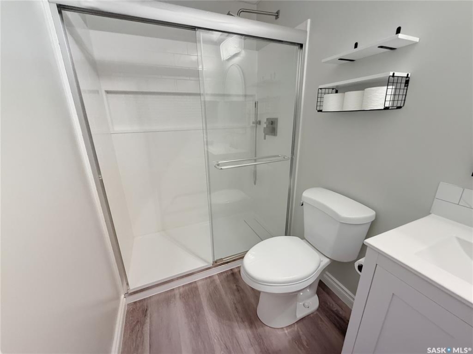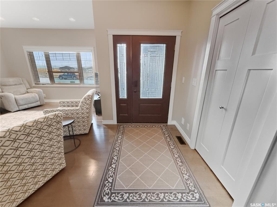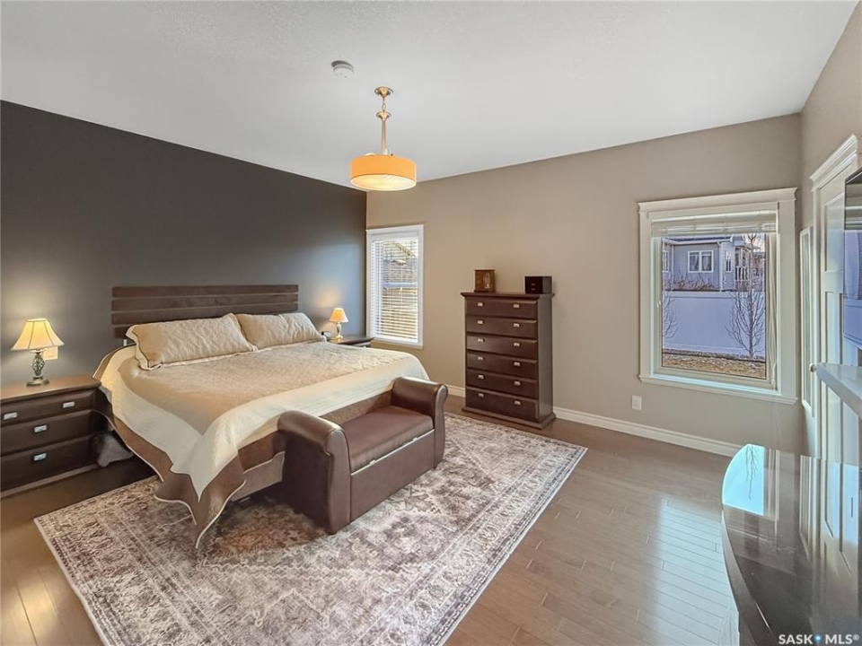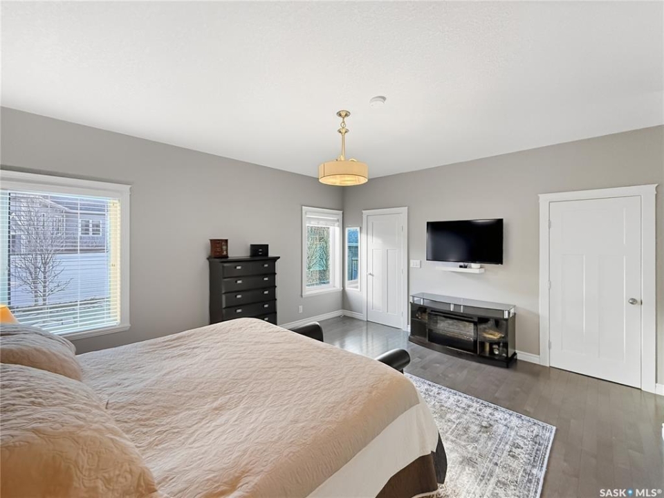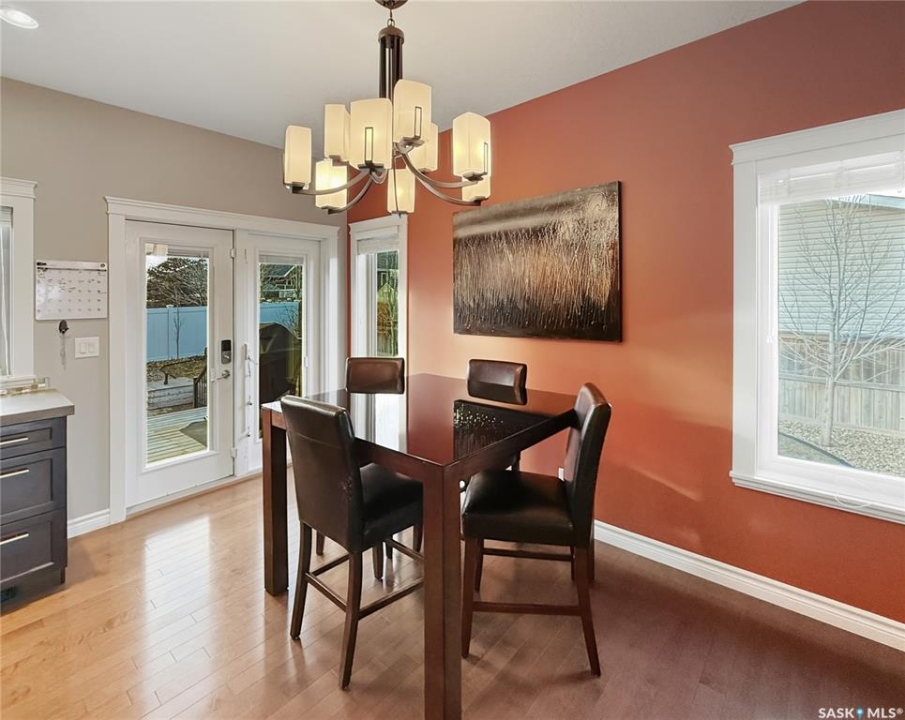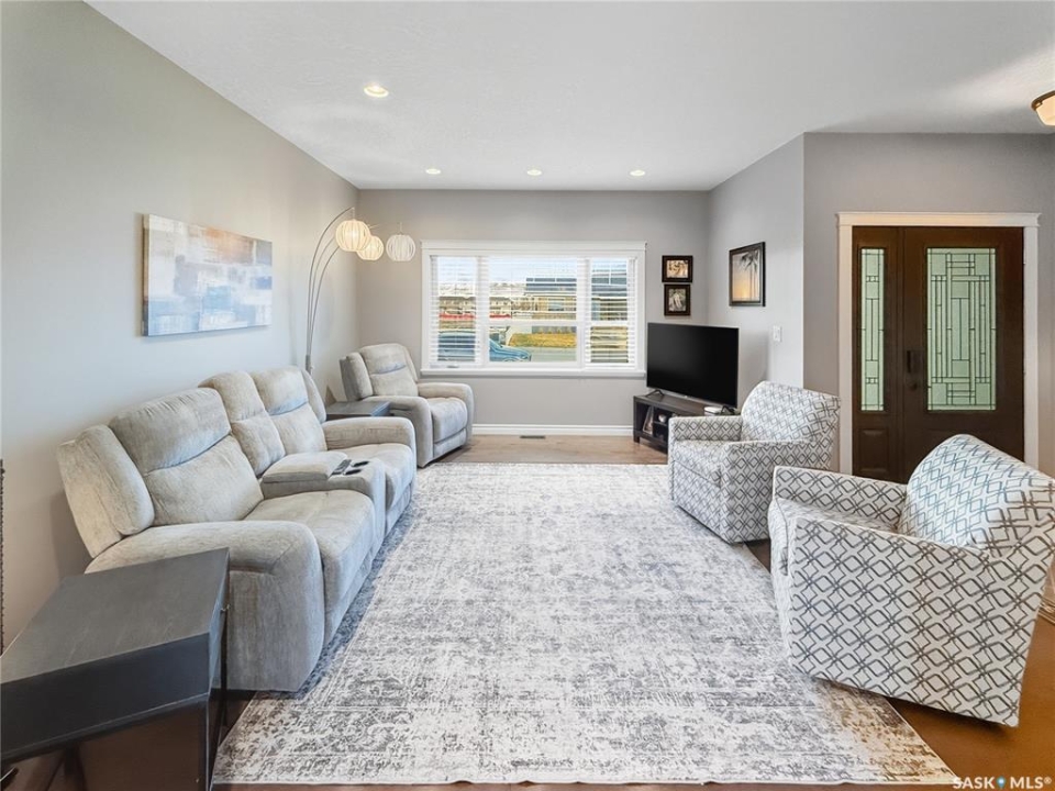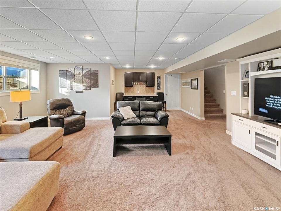 Located in the highly sought-after Highland subdivision, where demand continues to outpace supply, this 2013-built bungalow is one buyers will move quickly on. Offering 1,414 sq ft, outstanding curb appeal welcomes you with Hardie board siding, stone accents, an exposed aggregate driveway, and a Wi-Fi enabled Celebrite exterior lighting package that adds stunning evening ambiance. Inside, an open-concept layout showcases engineered hardwood flooring and a front living room that flows seamlessly into the kitchen and dining area, anchored by a double-sided gas fireplace with a concrete mantle, creating warmth and visual interest throughout the main living space. The kitchen is filled with natural light from three west-facing windows plus a garden door and features concrete countertops and island, abundant cabinetry, corner pantry, under-cabinet lighting, and a full stainless steel appliance package. The dining area enjoys the second view of the fireplace and provides direct access to a covered deck, with steps down to a patio and fully fenced yard complete with a shed and two natural gas hookups—ideal for a BBQ and fire table. The main floor offers three bedrooms, including an oversized primary with walk-in closet and a spa-inspired ensuite featuring a jet tub and in-floor electric heat, plus a second four-piece bath. A main-floor laundry/mudroom leads directly to the heated double attached garage. The lower level is fully developed with a bright, oversized family room featuring large west-facing windows, a dry bar, two additional bedrooms, a refreshed three-piece bath, and a spacious utility/storage room with modern, energy-efficient mechanicals including a new hot water heater (September 2025). A true Highland gem in a low-inventory market—this home checks every box.