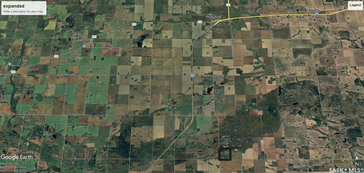 Here's a great opportunity to purchase a full quarter of nice land located near Meath Park. This property is situated 7 miles South of Meath Park at the intersection of the Meath Park Grid and Strong Pine Road. The make-up of the quarter is approx. 1/2 arable land and 1/2 either bush or native grass. Crop Insurance soil class is "L" with little to no stones. There are numerous potential yardsites. Off the beaten path and yet only 3 miles off pavement. School bus goes right by. It could be a great place to build and keep a few animals (lots of protection). Only 20 minutes to Prince Albert and 30 minutes to lake country. Tons of potential. Have a look!
