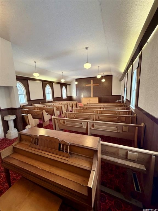 If you are looking for a unique investment property in Beechy, this could be a great purchase for you! Built in 1940, this character-filled church offers 1472 square feet of above grade space and a full basement, providing a unique opportunity for potentially being repurposed into a residence, an office space, studio, shop and more! The main floor features a large open sanctuary area with a vaulted ceiling, that could be ideal for gatherings, events, or an open-concept living space. Three additional smaller rooms on the main floor could offer flexible use as potential offices, storage, or bedrooms. The flooring on the main level is all carpeted, while the basement is concrete. Downstairs, there are 2 half bathrooms, and a functional kitchen. The house is heated with a furnace with forced air. The building is in relatively good shape overall. Call me today for a tour!