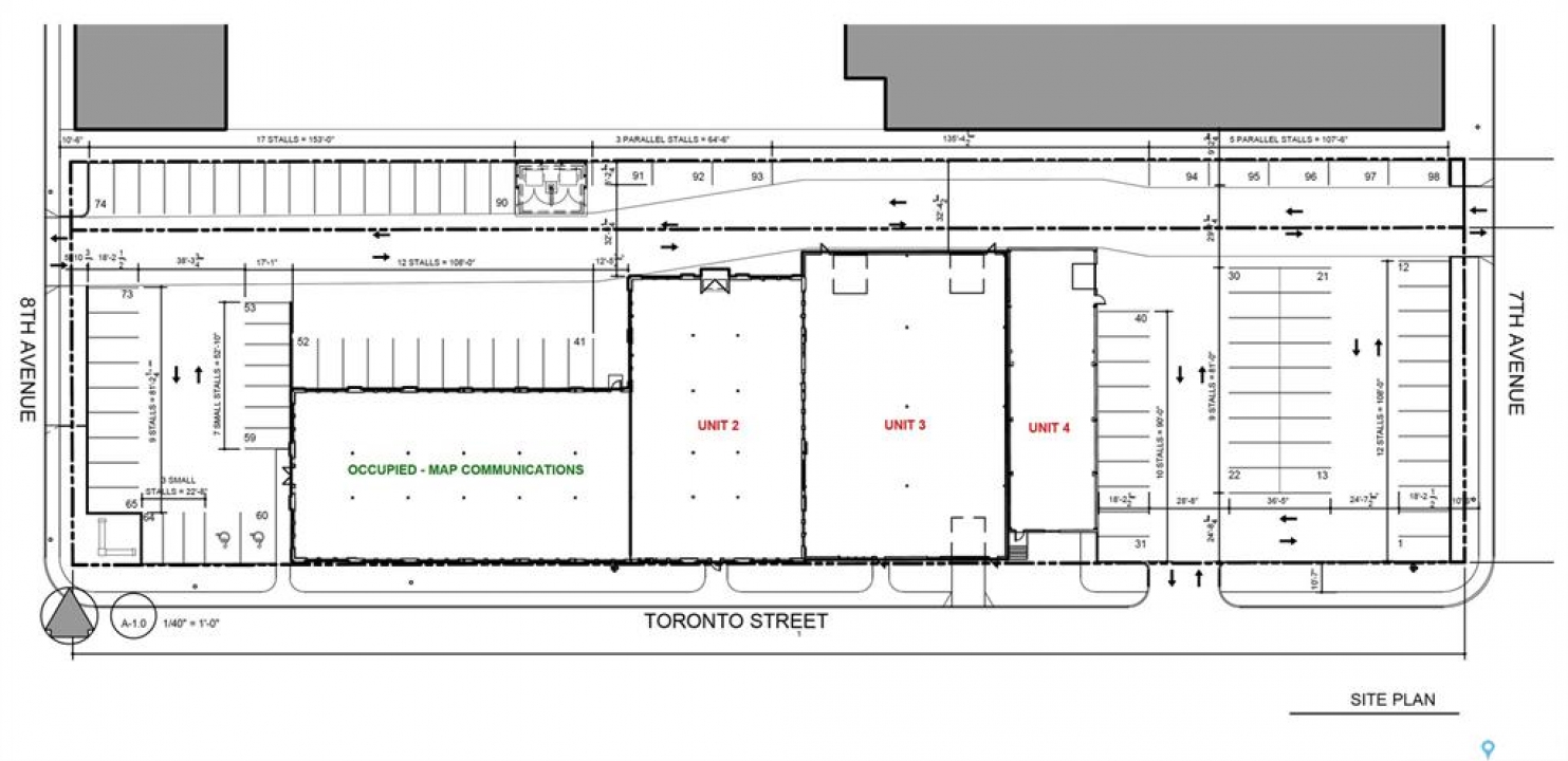 This historic and character-filled building (formerly Signal Industries) offers flexible spaces for lease ranging from 6,400 sqft up to 17,620 sqft. (when combined with two adjacent units to the north). This particular space features an atrium-like feel with abundant natural light and high ceilings. Its unique and rustic character-rich environment makes it suitable for a showroom, warehouse, storage, office, or creative studio. Currently the space is wide open with a loading dock at the west elevation. Up to 14 stalls available and more if combined with adjacent spaces.