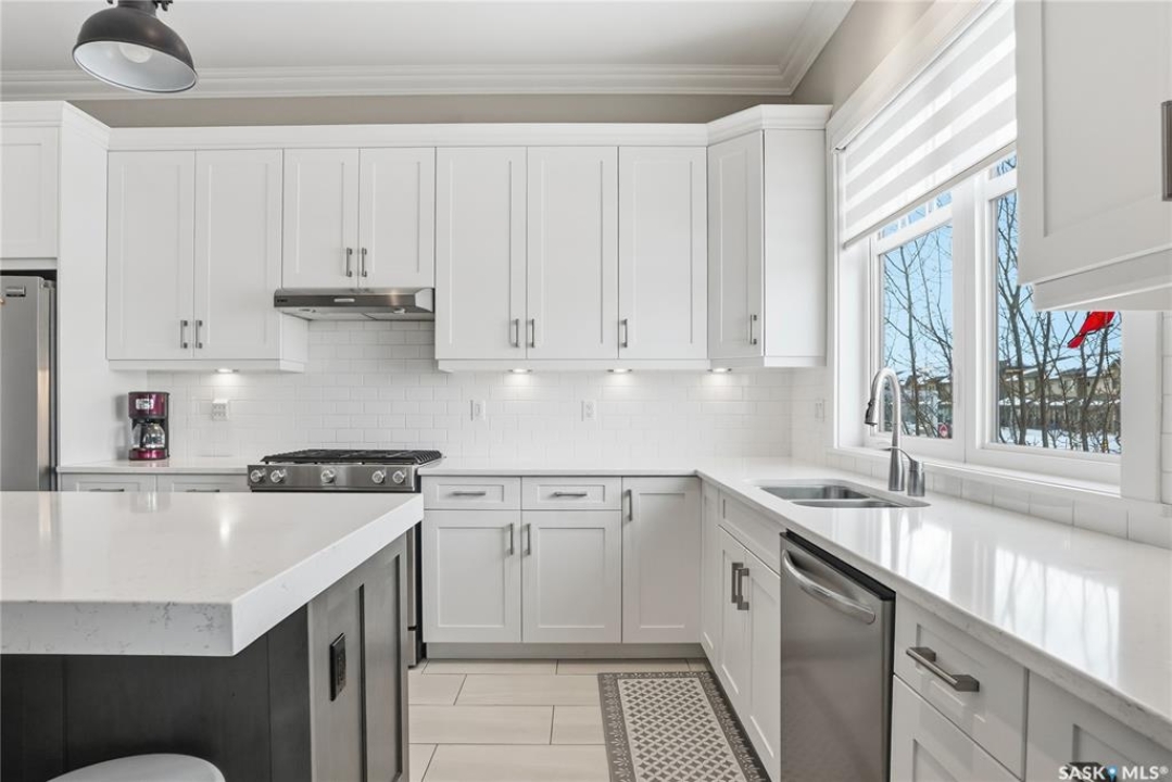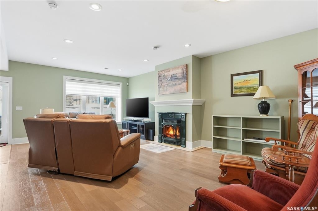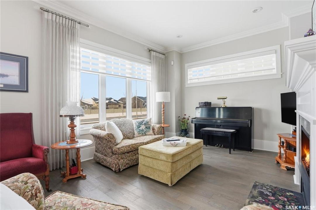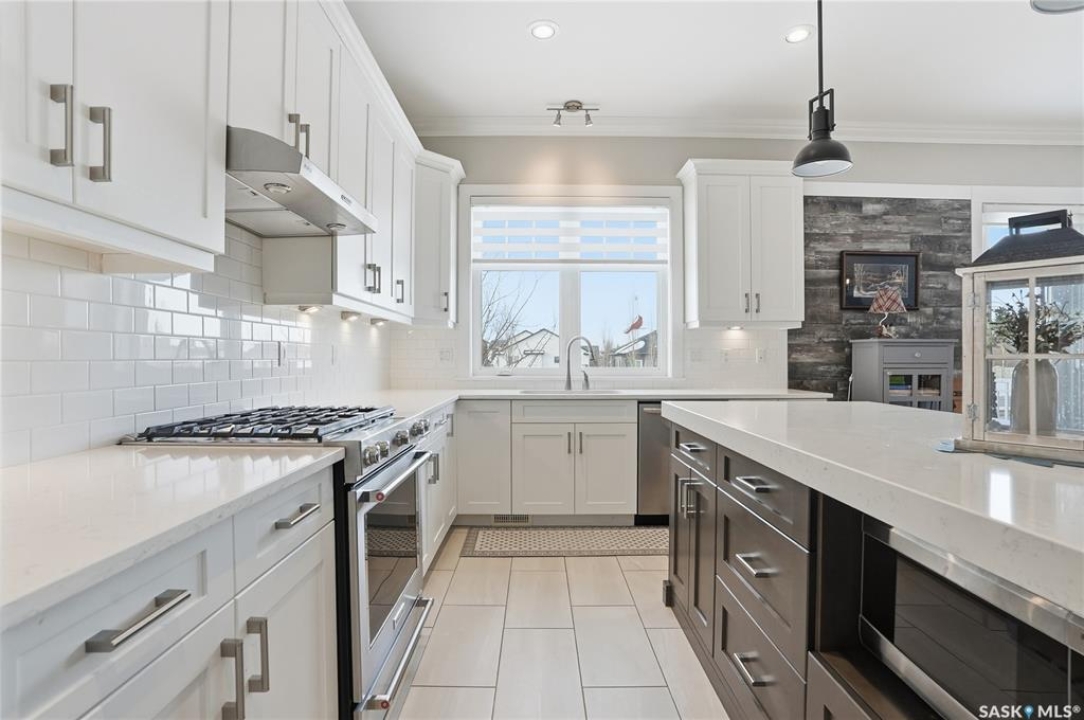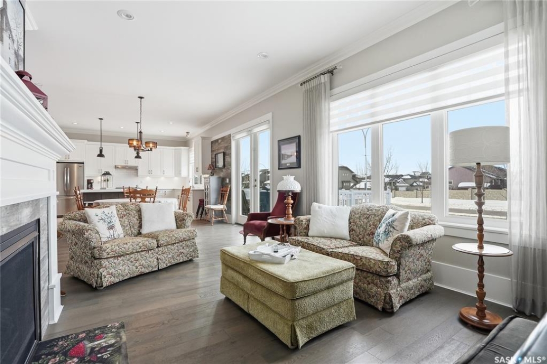 Experience upscale living in Rosewood, an area renowned for its upscale homes and convenient location. This modern, meticulously maintained home offers beautiful landscaping, excellent curb appeal, and seamless indoor-outdoor living. A warm entry welcomes you to a main floor office, while 10-foot ceilings create an expansive feel throughout the main level. The living area centers on a gas fireplace, and the chef's kitchen features stainless steel appliances, a gas stove, abundant cabinetry, an island, a dining area, garden doors to the deck, and a natural gas barbecue hookup. The primary bedroom is a private retreat with a walk-in closet, a luxurious 5-piece en suite, and heated floors. The walkout lower level boasts 9-foot ceilings, in-floor heating, a gas fireplace, and direct outdoor access, plus two bedrooms—one with its own en suite—and a convenient coffee bar with a wine fridge for entertaining. For parking and convenience, the heated garage includes a complete package with cabinets and above-door metal platforms. This property combines modern design with luxury finishes and a thoughtful layout, delivering an exceptional indoor-outdoor living experience ideal for entertaining.