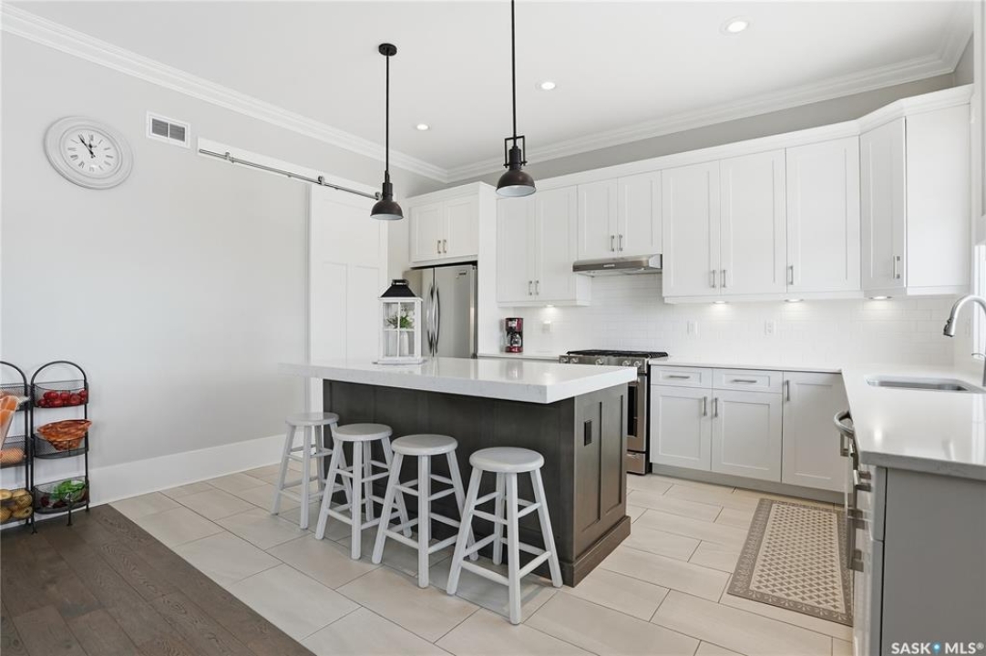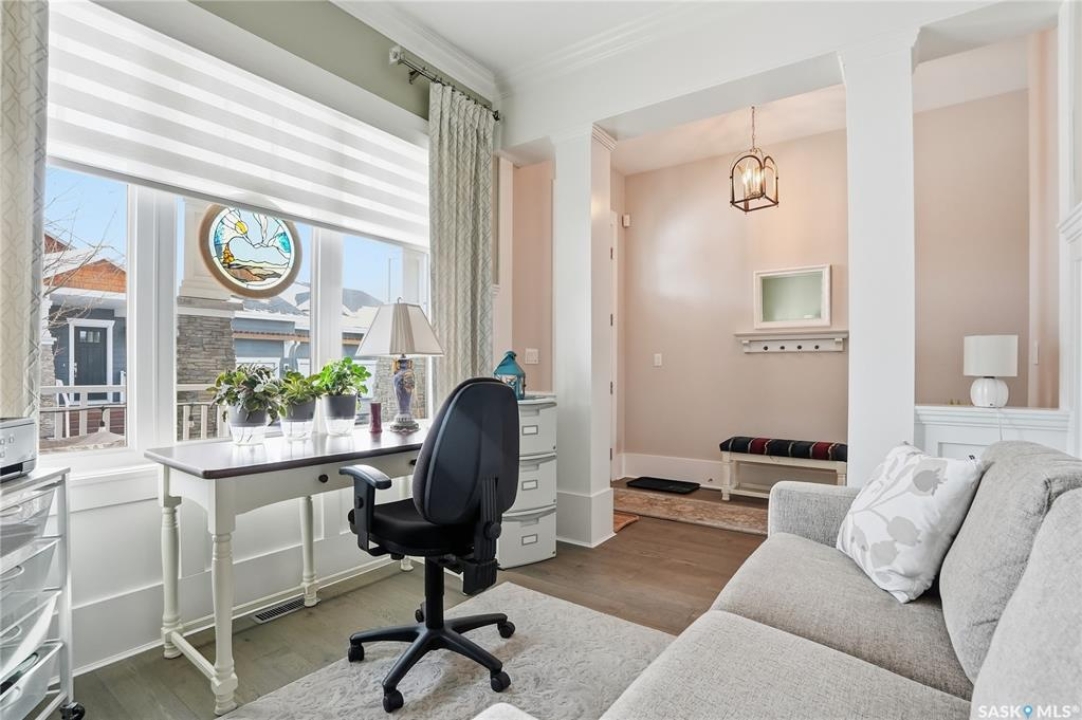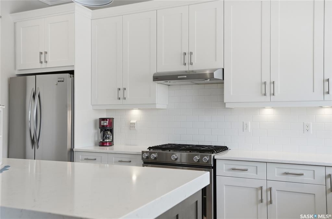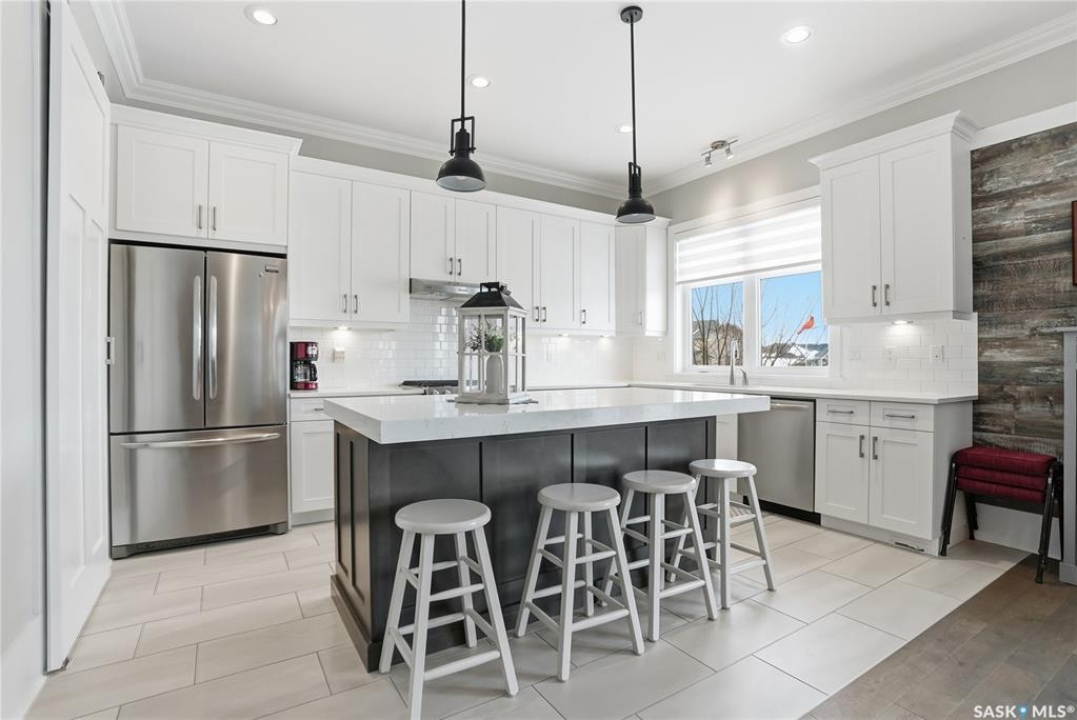 Experience upscale living in Rosewood, an area renowned for its upscale homes and convenient location. This modern, meticulously maintained home offers beautiful landscaping, excellent curb appeal, and seamless indoor-outdoor living. A warm entry welcomes you to a main floor office, while 10-foot ceilings create an expansive feel throughout the main level. The living area centers on a gas fireplace, and the chef's kitchen features stainless steel appliances, a gas stove, abundant cabinetry, an island, a dining area, garden doors to the deck, and a natural gas barbecue hookup. The primary bedroom is a private retreat with a walk-in closet, a luxurious 5-piece en suite, and heated floors. The walkout lower level boasts 9-foot ceilings, in-floor heating, a gas fireplace, and direct outdoor access, plus two bedrooms—one with its own en suite—and a convenient coffee bar with a wine fridge for entertaining. For parking and convenience, the heated garage includes a complete package with cabinets and above-door metal platforms. This property combines modern design with luxury finishes and a thoughtful layout, delivering an exceptional indoor-outdoor living experience ideal for entertaining.