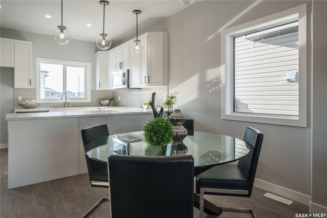 Welcome to "The Brandenberg" your future home—an impressive 1,258 sq ft single family home built by Ehrenburg Homes, located in the heart of Regina's hottest neighborhood, Eastbrook! Step inside and be wowed by the bright, open-concept main floor that was made for modern living. The spacious living room flows effortlessly into a dream kitchen featuring tons of counter space and cabinetry—perfect for whipping up your favorite meals or hosting friends for dinner. The dining area adjoins the kitchen, making it the go-to spot for everything from family dinners to weekend brunches. Plus, there's a stylish 2-piece bath for added convenience. Upstairs, you'll find three generously sized bedrooms and two full bathrooms—ideal for families, roommates, or anyone who loves extra space. The primary suite is your private retreat, complete with a sleek 3-piece ensuite and walk in closet, plenty of room to unwind. The additional bedrooms are perfect for kids, guests, or that home office you've been dreaming of. Need more space? Double detached garage for additional storage, the basement is wide open and ready for your vision—think home gym, rec room, or extra bedroom! Located in a vibrant, family-friendly community surrounded by parks, paths, schools, and local amenities, this is your chance to own a brand-new home in one of Regina's most exciting developments. Don't wait—Eastbrook is calling! (PST/GST are included within purchase price). Note: Interior photos are from a previous build. Same model but some colours may vary. Underground sprinklers in front ONLY.