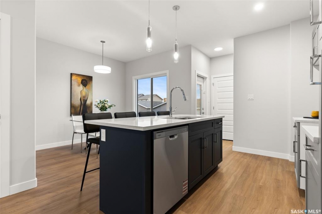 Welcome to “The Ashwood” by premier builder Ehrenburg Homes, located in the desirable Eastbrook community. This thoughtfully designed two-storey home offers 1,404 sq. ft. of above-grade living space and showcases quality craftsmanship with modern finishes throughout. The main floor features an open-concept layout ideal for entertaining and everyday living, finished with vinyl plank flooring. A welcoming living room greets you with a stylish electric fireplace as a focal point. The contemporary kitchen is designed for functionality and flow, featuring a central island with eating bar, ample cabinetry, and a seamless connection to the dining area—perfect for family gatherings. A convenient 2-piece bathroom completes the main level. Upstairs, the primary bedroom includes a walk-in closet and a private 4-piece ensuite. Two additional well-sized bedrooms are complemented by a full 4-piece bathroom, while a comfortable bonus room provides flexible space for a family lounge, playroom, or home office. The second-floor laundry adds everyday convenience for busy households. The basement is unfinished, offering excellent potential for future development such as a recreation room, gym, or additional bedroom. The home is built with wood-frame construction, a forced-air natural gas furnace, and a gas water heater, ensuring efficiency and comfort. Outside, enjoy a double detached garage, underground sprinkler system, and a manageable lot—perfect for low-maintenance living. The home is currently under construction, with possession to be determined upon completion. Backed by the Saskatchewan New Home Warranty and Ehrenburg Homes' reputation for quality, The Ashwood delivers a perfect blend of style, function, and peace of mind. PST & GST are included in the purchase price.