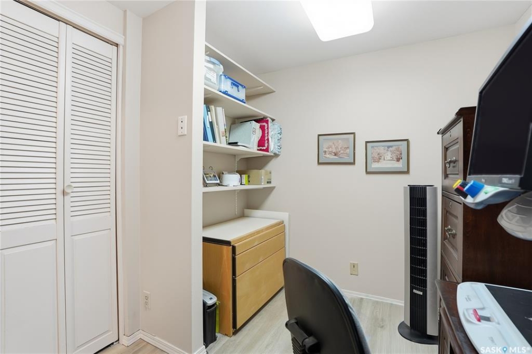 Welcome to unit 1003 – 510 5th Ave North located in the heart of Saskatoon's desirable City Park neighborhood! This condo greets you with plenty of natural light flowing, a functional layout, and spectacular views overlooking Kinsmen Park! Step into your open concept living area, with laminate flooring, sliding glass door to your balcony with picturesque park views, gas fireplace against a tiled mantle, and recessed lighting. Your kitchen provides ample oak cabinetry, tiled backsplash, stainless steel appliances including fridge, stove, dishwasher and hood fan. Open to your formal dining space with a chandelier for a touch of elegance. Your king accommodating primary bedroom features a walk-through closet leading you to your 3-pc ensuite with glass shower and modern vanity. Second bedroom + a den, as well as a 4-pc bath with tile surround tub, a storage room with freezer and laundry hookup, completes this unit! The Discovery Park complex has it all – including an indoor pool, sauna, hot tub, fitness area, amenities room and library! With an unmatched location, only steps away from City Hospital, quick access to the U of S, downtown and our beautiful South Saskatchewan River, this is one you won't want to miss!