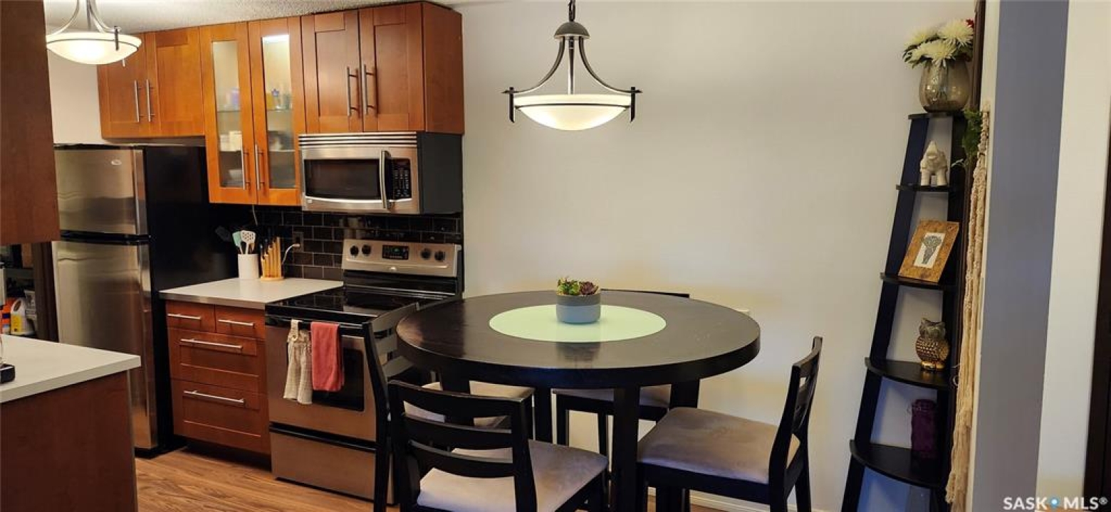 Beautifully updated and immaculately maintained 2 bedroom condo in Shorebird Watch in the Lakeridge neighborhood. Just move in and enjoy this unit --- updated everything: laminate flooring throughout, maple kitchen, countertops, tile backsplash, stainless steel appliances, all newer interior doors and hardware, updated 4-piece bathroom with newer vanity, fixtures, and tub surround. Convenient ensuite laundry in storage pantry off kitchen. Patio doors to deck. Well maintained complex in a great Saskatoon east side location. Don't miss this beauty!
