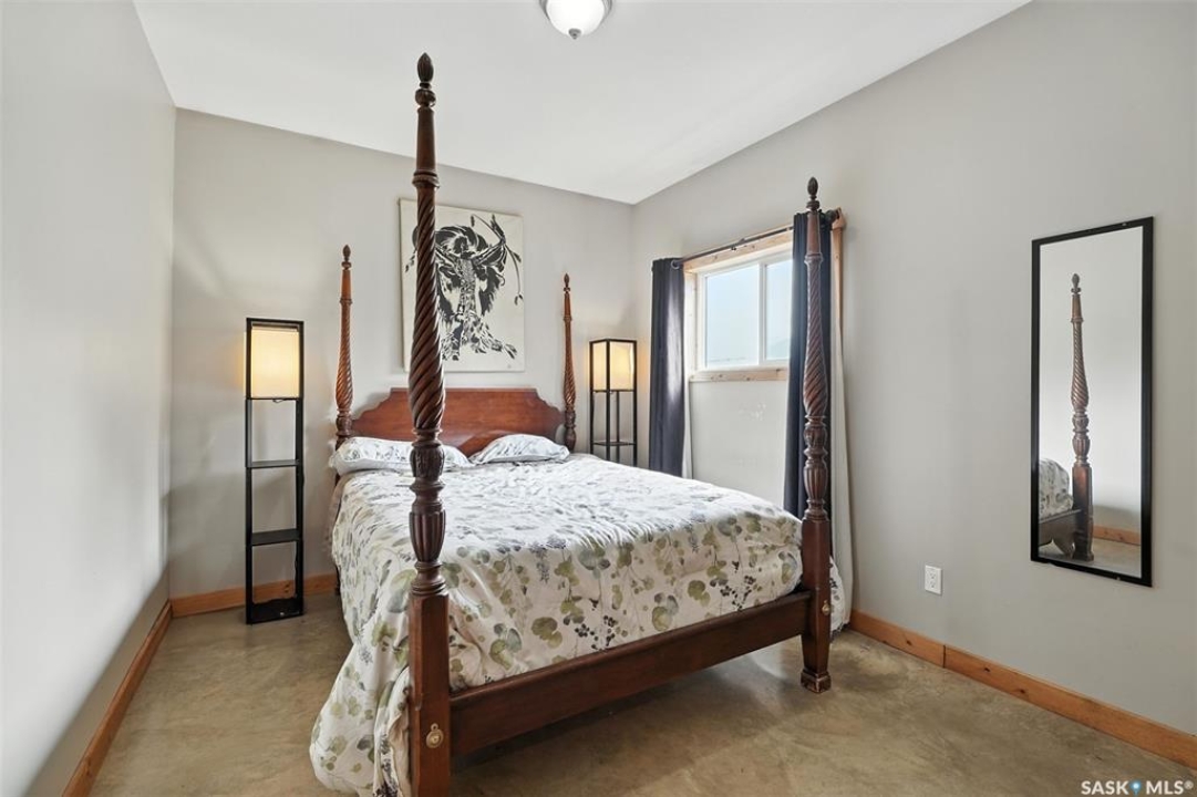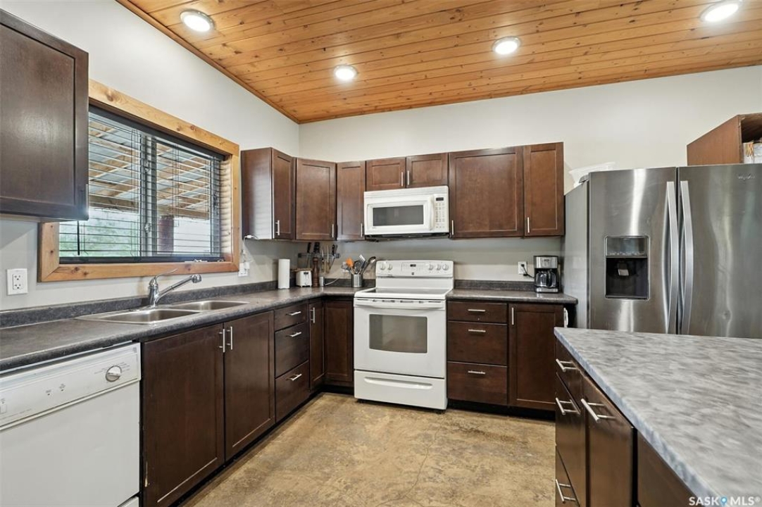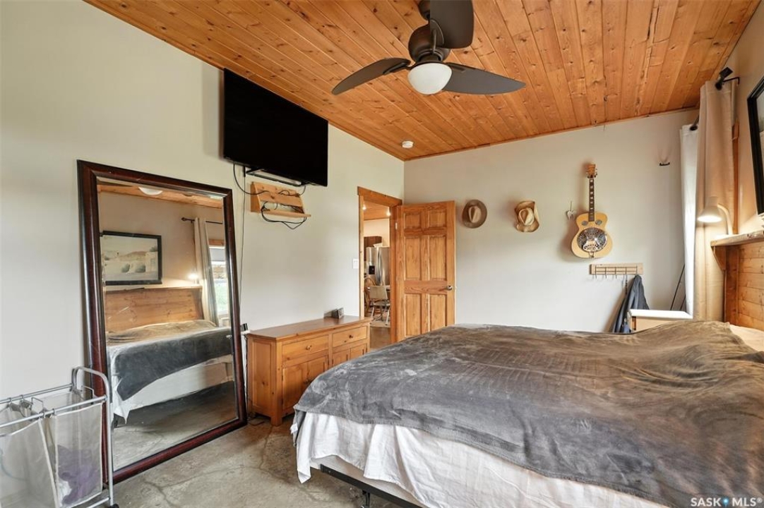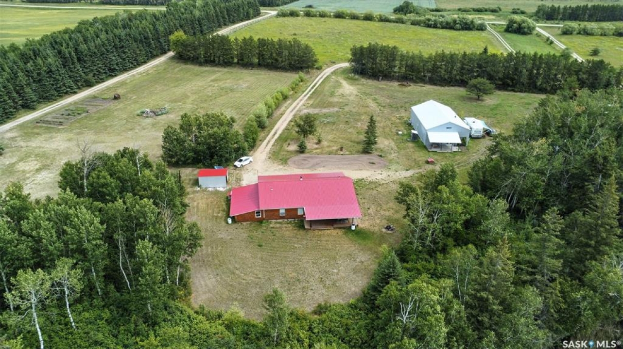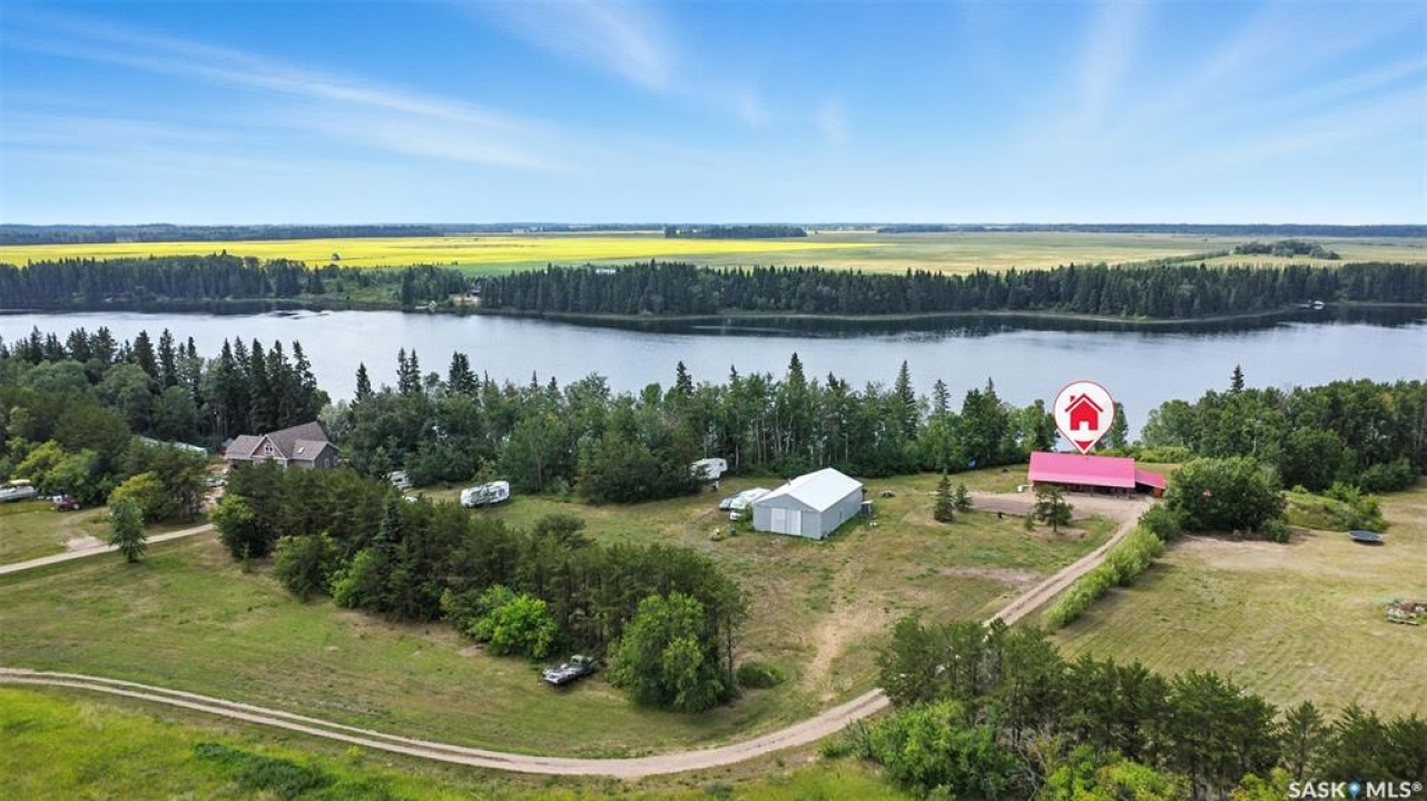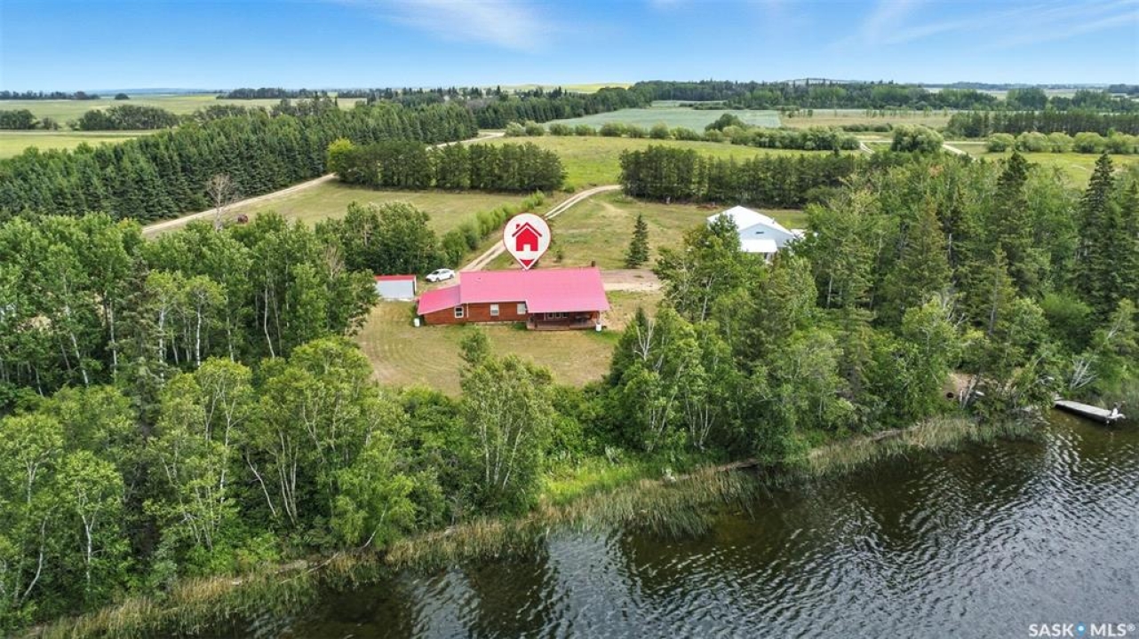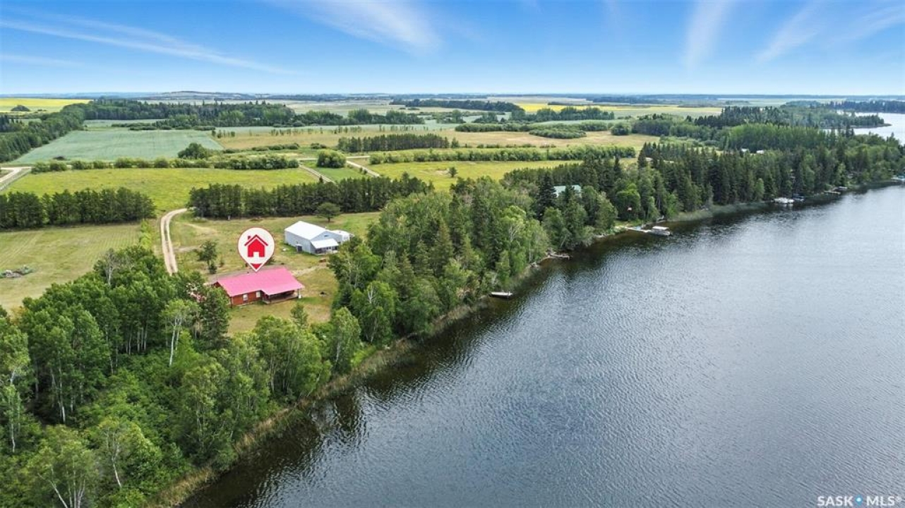 Welcome to this one and kind waterfront private acreage located at Fish Lake, SK offers a serene and picturesque setting. The property spans across 4.99 acres The house was built in 2016 and boast over 1800 sq ft with three spacious bedrooms. The open concept kitchen has plenty of cupboard and counter space with island. Master bedroom has 5pc bathroom! House is equipped with in floor radiant heat and wood burning stove for supplement heat. Head on out the living room door to back deck overlooking the lake. The property numerous outbuilding for storage and wood cutting station. The house is equipped with a well and a septic tank. The property has large heated shop measuring 33 X 38 and heated attached garage. There is no public reserve on the lake front and the well is under ground spring fed.