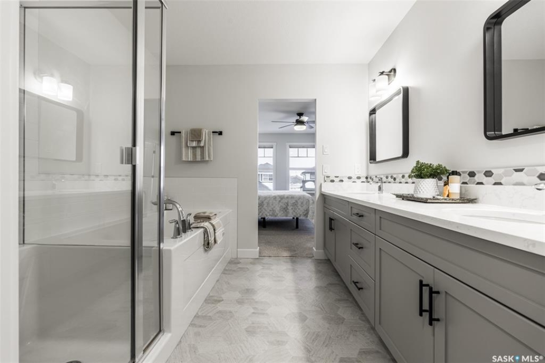 Welcome to 343 Stilling Manor in Saskatoon's Rosewood neighbourhood. Buyers, this home is exactly what you need! Built in late 2021 it's practically brand new with the addition of the yard, fence, blinds, and appliances all completed. With 2000+ square feet of living space this two storey home is a great buy. The front entry way is spacious and has an built in bench beside the large entrance closet. The main floor living room dining room and kitchen are open concept and all overlook the west facing backyard. The kitchen has quartz countertops, high end stainless steel appliances, and a large pantry for storage. The fridge has 4 sections that can be changed from fridge to freezer, depending on your family's needs. On the main you'll also find a powder room with a large vanity, and access to the insulated double attached garage. This second floor will surely impress! The large primary bedroom easily fits a king sized bed, there's big east facing windows with Hunter Douglas blinds, and 2 walk in closets. The ensuite has a long vanity with drawers & doors to store your necessities, there's a separate tub and a tiled shower with seating. The water closet is separated at the end of the ensuite for privacy. A very thoughtful design that makes it feel like a custom built home. Also on the second floor are 2 more bedrooms for kids or guests, a 4 piece bathroom for everyone to use, and a bright bonus room for family activities. Having laundry on the second floor is always lovely but when it is this spacious it feels like less of a chore! The basement is open for development but it has been insulated and has the electrical all done. In warmer months you enjoy really enjoy this fully developed backyard. Fully fenced, with a deck to enjoy the sun while you BBQ, garden beds and lovely green grass. It may seem years away but summers back here are going to be glorious! This house is located near parks and all the amenities that Meadows Market has to offer.