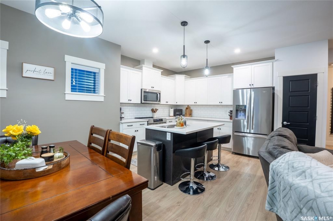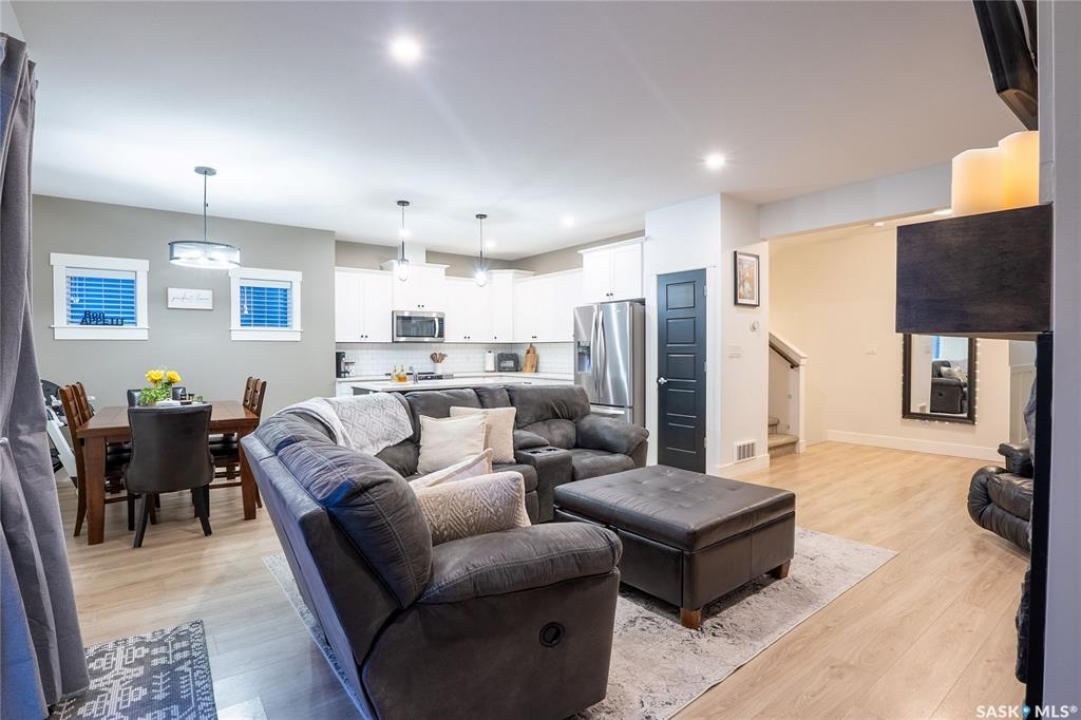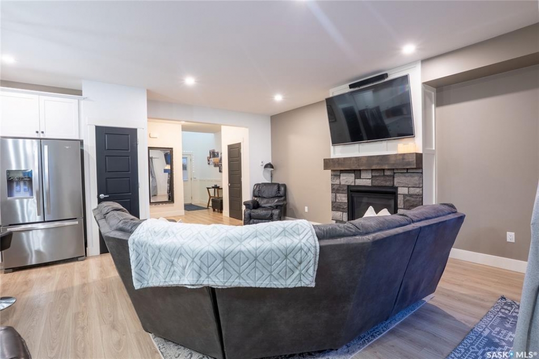Welcome to 96-900 St. Andrews Lane, a beautifully maintained family home ideally located close to schools, Legends Sports Centre, shopping, walking trails, and other everyday amenities. Built in 2021, this property shows like new and offers modern design with thoughtful upgrades throughout. The main floor features a bright, open-concept layout with 9' ceilings and an abundance of natural light. The stylish kitchen is sure to impress with soft-close cabinetry, quartz countertops, a tiled backsplash, pantry, and upgraded high-end stove and dishwasher (appliances included). The inviting living room is centered around a stunning gas fireplace and opens through patio doors to a covered deck overlooking the fully fenced, landscaped, east-facing backyard. Upstairs, you'll find a spacious bonus room and convenient laundry area. The impressive primary bedroom boasts vaulted ceilings, a walk-in closet, and a luxurious ensuite complete with tiled shower, soaker tub, and dual sinks. Just a few steps up are two additional bedrooms and a full 4-piece bathroom. The basement is open for future development and is roughed in for a bathroom and/or wet bar. Additional highlights include a double attached garage with interior drain, insulation, drywall, and an electric heater (included), a double concrete driveway, and a finished, low-maintenance yard. TVs and TV mounts are also included. Pride of ownership is evident throughout—this home shows exceptionally well. Contact today to arrange your private viewing.
