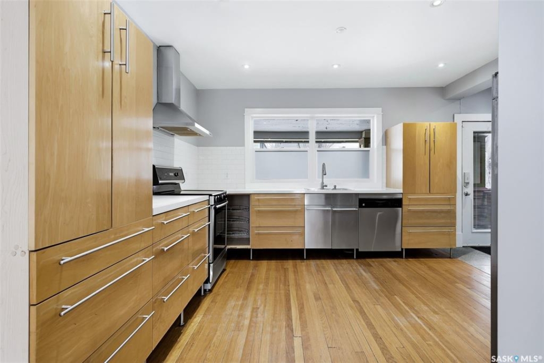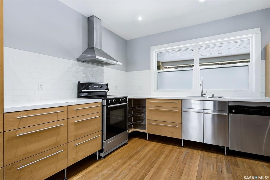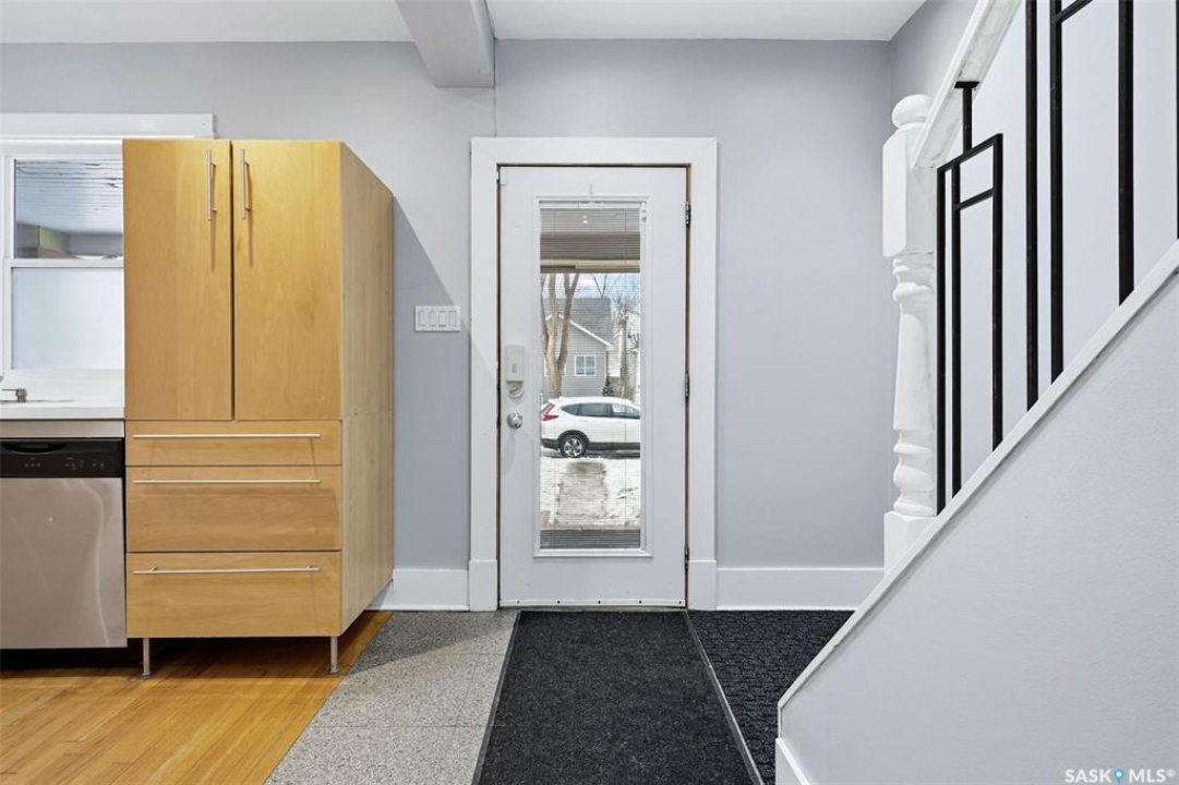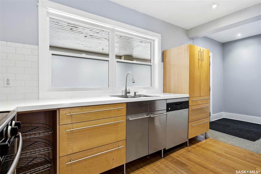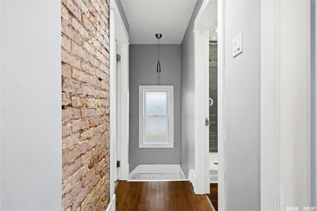 Welcome to 2255 Montreal Street, a charming 1921 character home where timeless appeal meets thoughtful modern updates. With mature trees and a welcoming front veranda, this home offers classic street presence and a warm first impression. Step inside to find hardwood floors throughout the main level and a bright, show-stopping kitchen that truly anchors the home. The modern kitchen features an abundance of cabinetry and workspace, crisp white tile backsplash, and a stainless steel appliance package including stove, dishwasher, and oversized fridge and freezer. This space blends function and style beautifully. The main floor also offers a comfortable living room with updated lighting and pot lights, along with a dining area recently upgraded with a new garden door leading to the backyard, perfect for easy indoor-outdoor living. Upstairs, you will find three bedrooms with hardwood flooring, custom shelving, and charming exposed brick details that highlight the home's original character. A beautifully updated four-piece bathroom completes this level, featuring a deep soaker tub and a separate stand-up shower. The basement provides laundry and ample storage space. Outside, the yard is ready for your vision and is framed by mature trees. A single detached garage offers storage, along with an additional parking stall for convenience. Located within walking distance to Balfour Collegiate and Miller High School, and close to the General Hospital, parks, and everyday amenities, this home offers excellent accessibility for daily life. Significant upgrades have already been completed, including new shingles in 2026, updated vinyl siding, windows and doors, kitchen, bathroom, appliances, and more. This move-in ready home sparkles and is ready to welcome its next owners.