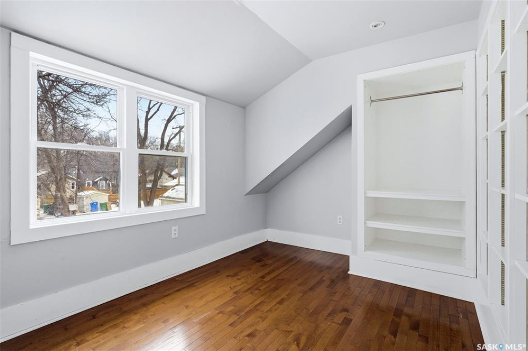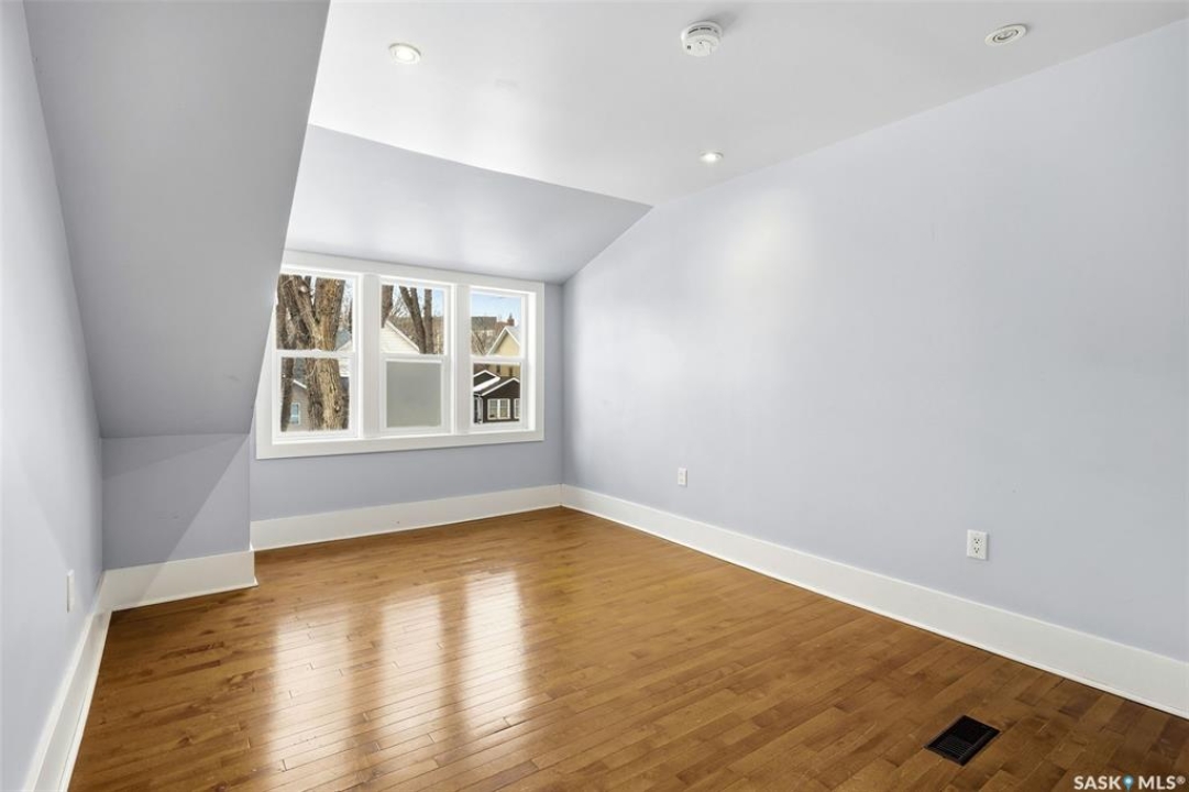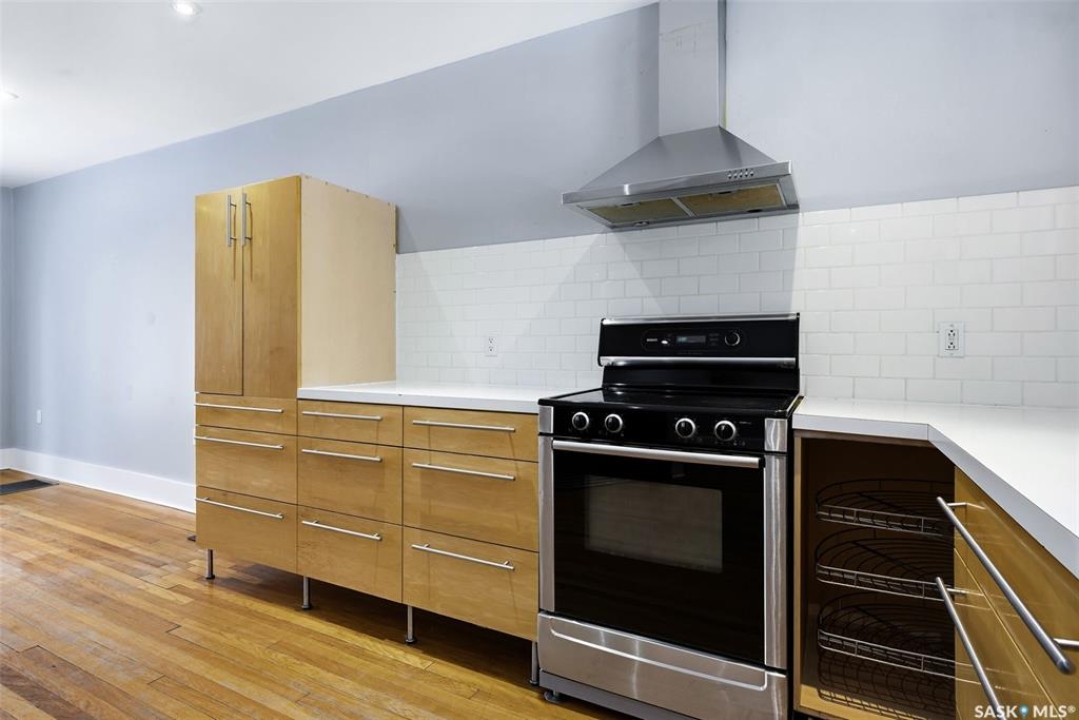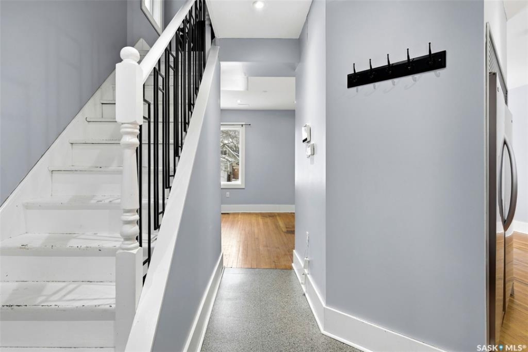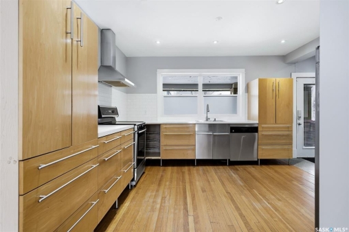 Welcome to 2255 Montreal Street, a charming 1921 character home where timeless appeal meets thoughtful modern updates. With mature trees and a welcoming front veranda, this home offers classic street presence and a warm first impression. Step inside to find hardwood floors throughout the main level and a bright, show-stopping kitchen that truly anchors the home. The modern kitchen features an abundance of cabinetry and workspace, crisp white tile backsplash, and a stainless steel appliance package including stove, dishwasher, and oversized fridge and freezer. This space blends function and style beautifully. The main floor also offers a comfortable living room with updated lighting and pot lights, along with a dining area recently upgraded with a new garden door leading to the backyard, perfect for easy indoor-outdoor living. Upstairs, you will find three bedrooms with hardwood flooring, custom shelving, and charming exposed brick details that highlight the home's original character. A beautifully updated four-piece bathroom completes this level, featuring a deep soaker tub and a separate stand-up shower. The basement provides laundry and ample storage space. Outside, the yard is ready for your vision and is framed by mature trees. A single detached garage offers storage, along with an additional parking stall for convenience. Located within walking distance to Balfour Collegiate and Miller High School, and close to the General Hospital, parks, and everyday amenities, this home offers excellent accessibility for daily life. Significant upgrades have already been completed, including new shingles in 2026, updated vinyl siding, windows and doors, kitchen, bathroom, appliances, and more. This move-in ready home sparkles and is ready to welcome its next owners.