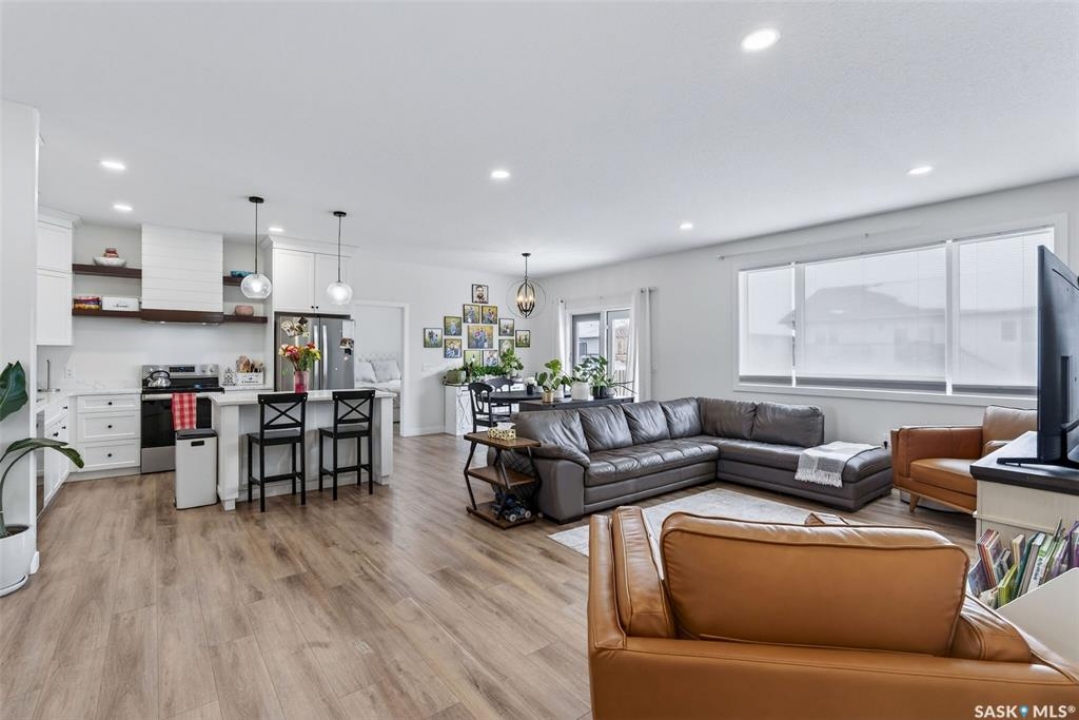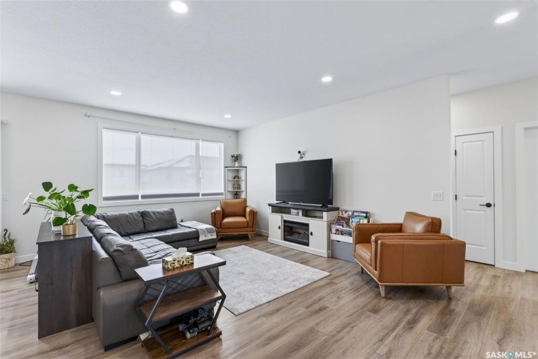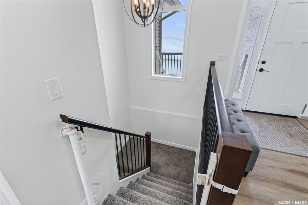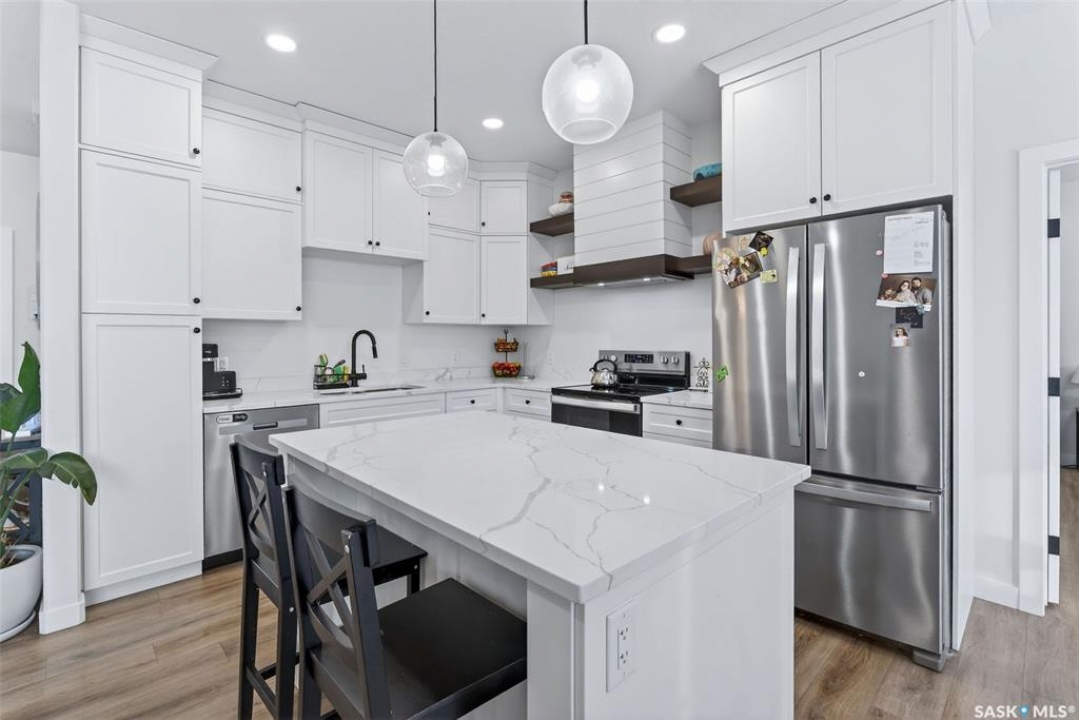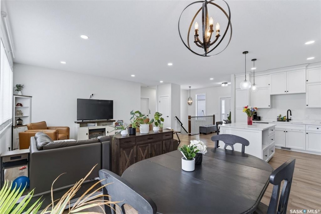 Welcome to this stunning dream home located in one of Humboldt's most sought after neighborhood! This 2023 built raised bungalow is sure to impress! Entering this home you are greeted by 9ft ceilings, an open concept floor plan, large entry with closets and shiplap feature wall with built in bench. This spacious living room fitted with large south facing windows opens to a gorgeous kitchen with crisp white cabinetry, floating shelves, Quartz counters, island and more. This space is ideal for entertaining! The dining area opens to the raised deck overlooking the backyard. The Primary Bedroom is a true retreat! This room offers backyard views, a designer bathroom with walk in shower, and walk through closet that leads to the laundry room. The main floor of this home offers two more bedrooms plus a full bath. The lower level offers 9ft ceilings and opens to a grand family room/ recreational area, plus designated storage space, two spacious bedrooms, full bath, plus utility room. Plenty of room for any family! The attached garage measures 24x26ft and is heated. This home is absolutely stunning and move in ready! Many extras including a fenced backyard complete with deck, two paving stone patios, raised flower beds (almost complete) and more. The front yard has been partially landscaped with stone planters, levelled and ready for sod.