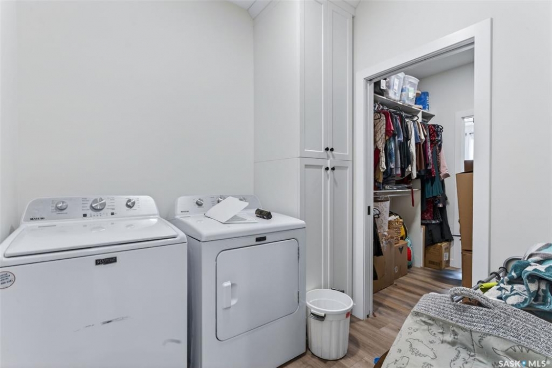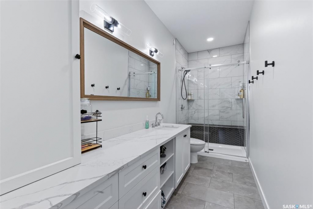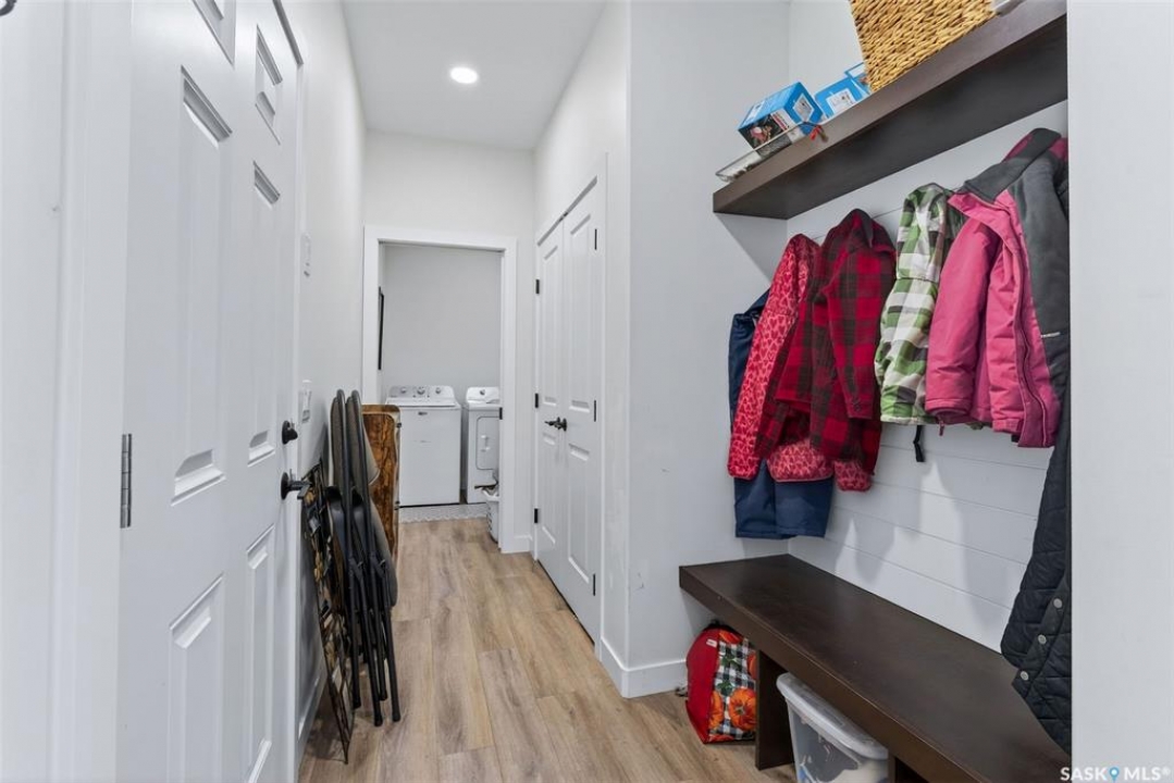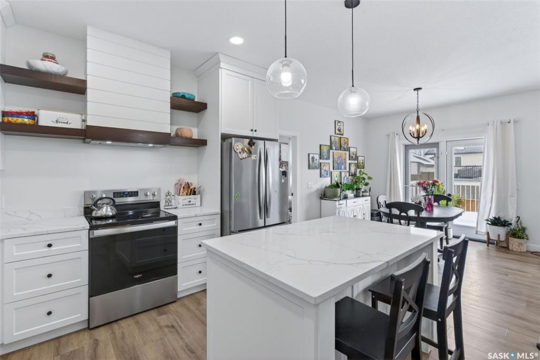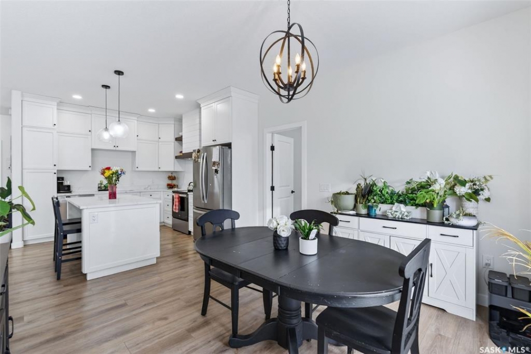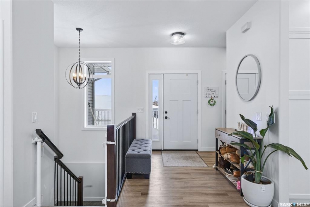 Welcome to this stunning dream home located in one of Humboldt's most sought after neighborhood! This 2023 built raised bungalow is sure to impress! Entering this home you are greeted by 9ft ceilings, an open concept floor plan, large entry with closets and shiplap feature wall with built in bench. This spacious living room fitted with large south facing windows opens to a gorgeous kitchen with crisp white cabinetry, floating shelves, Quartz counters, island and more. This space is ideal for entertaining! The dining area opens to the raised deck overlooking the backyard. The Primary Bedroom is a true retreat! This room offers backyard views, a designer bathroom with walk in shower, and walk through closet that leads to the laundry room. The main floor of this home offers two more bedrooms plus a full bath. The lower level offers 9ft ceilings and opens to a grand family room/ recreational area, plus designated storage space, two spacious bedrooms, full bath, plus utility room. Plenty of room for any family! The attached garage measures 24x26ft and is heated. This home is absolutely stunning and move in ready! Many extras including a fenced backyard complete with deck, two paving stone patios, raised flower beds (almost complete) and more. The front yard has been partially landscaped with stone planters, levelled and ready for sod.