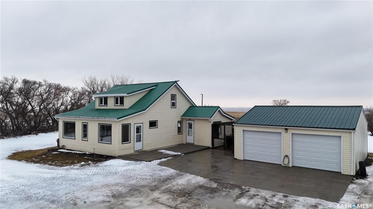 80 ACRES with Updated CHARACTER HOME, Outbuildings & PRODUCTIVE FARMLAND This versatile 80-ACRE FARM PROPERTY with G soil rating offers strong potential for HOBBY FARMING, livestock farming, or rural living with income opportunity. The cultivated land was seeded to wheat in 2025 and could be rented to offset annual costs. The UPDATED 1,340 sq. ft. CHARACTER HOME retains its original charm and features two mudrooms (one with MAIN FLOOR LAUNDRY and nearby 3-piece bath), an upgraded country kitchen with STAINLESS STEEL APPLIANCES, island, open shelving and coffee bar, formal dining area, LARGE LIVING ROOM with play area, and an additional bedroom/office/den. Upstairs offers two more bedrooms and a renovated bathroom, with original hardwood floors, staircases, banisters, and storage. Updates over past several years include GEOTHERMAL HEATING AND COOLING with back-up electric heat if needed, ON DEMAND HOT WATER HEATER, windows, insulation and siding, PEX water lines, drilled well (2008), underground power, and metal roof on house and garage. Outbuildings include a LARGE BARN and heated, insulated double detached garage with concrete pad. Treed yard-site provides shelter, privacy, and ample garden space. CONVENIENTLY LOCATED: 25 km to Outlook or 15 to Dinsmore (school access), 6 km to Macrorie, 16 km to Lake Diefenbaker, and approx. 1.5 hrs to Saskatoon. A rare, WELL-ROUNDED RURAL PROPERTY offering lifestyle, land, and income potential. Directions: Approx 10 km West of Outlook on HWY 15 to Surbiton Rd; Turn left (south) at directional realtor sign and head approx 15 km south on Surbiton Rd; Turn left at realtor sign, then left at end of shared road.
