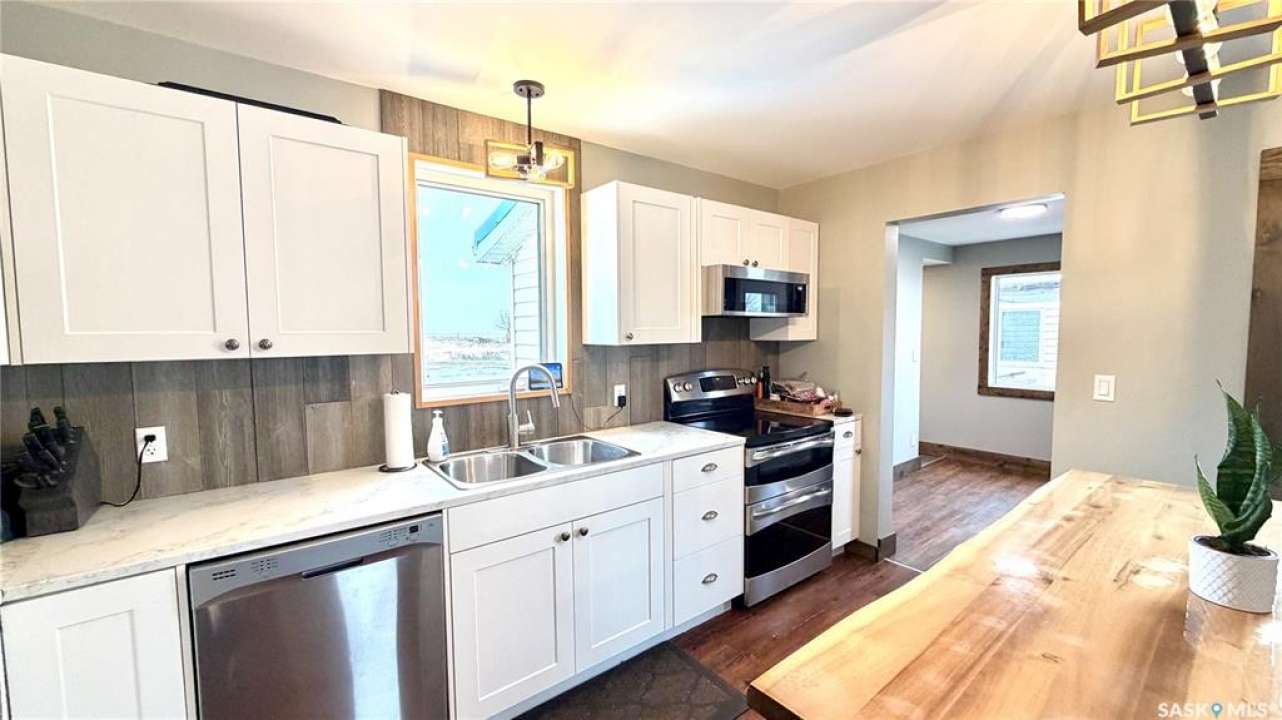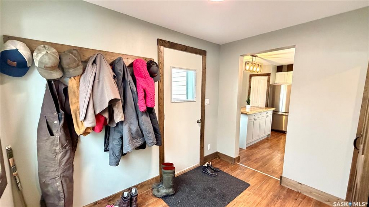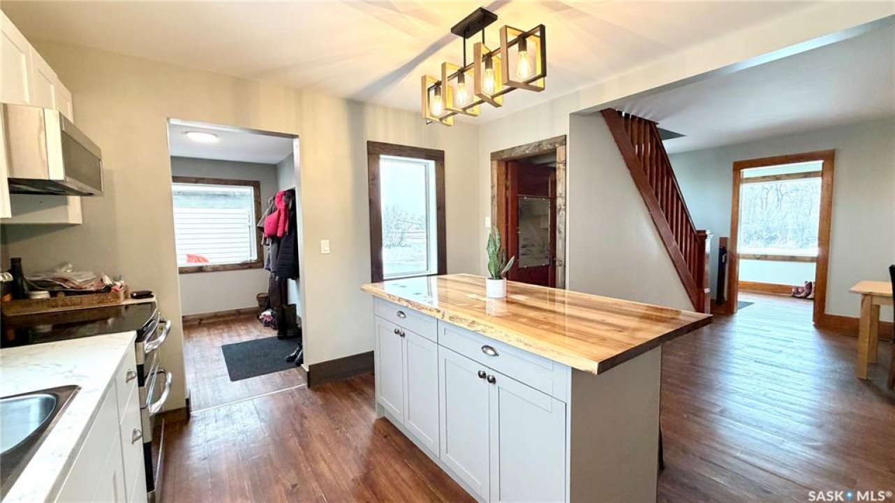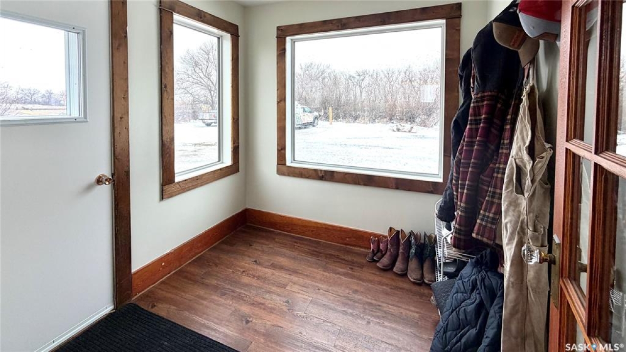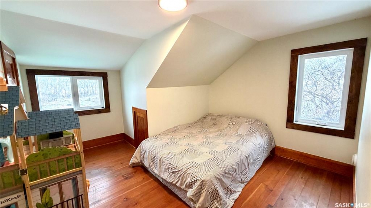 80 ACRES with Updated CHARACTER HOME, Outbuildings & PRODUCTIVE FARMLAND This versatile 80-ACRE FARM PROPERTY with G soil rating offers strong potential for HOBBY FARMING, livestock farming, or rural living with income opportunity. The cultivated land was seeded to wheat in 2025 and could be rented to offset annual costs. The UPDATED 1,340 sq. ft. CHARACTER HOME retains its original charm and features two mudrooms (one with MAIN FLOOR LAUNDRY and nearby 3-piece bath), an upgraded country kitchen with STAINLESS STEEL APPLIANCES, island, open shelving and coffee bar, formal dining area, LARGE LIVING ROOM with play area, and an additional bedroom/office/den. Upstairs offers two more bedrooms and a renovated bathroom, with original hardwood floors, staircases, banisters, and storage. Updates over past several years include GEOTHERMAL HEATING AND COOLING with back-up electric heat if needed, ON DEMAND HOT WATER HEATER, windows, insulation and siding, PEX water lines, drilled well (2008), underground power, and metal roof on house and garage. Outbuildings include a LARGE BARN and heated, insulated double detached garage with concrete pad. Treed yard-site provides shelter, privacy, and ample garden space. CONVENIENTLY LOCATED: 19 km to Outlook or Dinsmore (school access), 9 km to Macrorie, 16 km to Lake Diefenbaker, and approx. 1.5 hrs to Saskatoon. A rare, WELL-ROUNDED RURAL PROPERTY offering lifestyle, land, and income potential. Directions: West of Outlook on HWY 15 to Surbiton Rd; Turn left (south) at directional realtor sign and head approx 15 km south on Surbiton Rd; Turn left at realtor sign, then left at end of shared road.