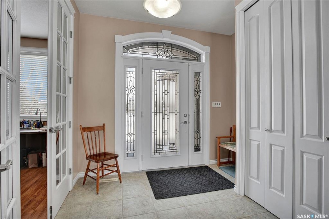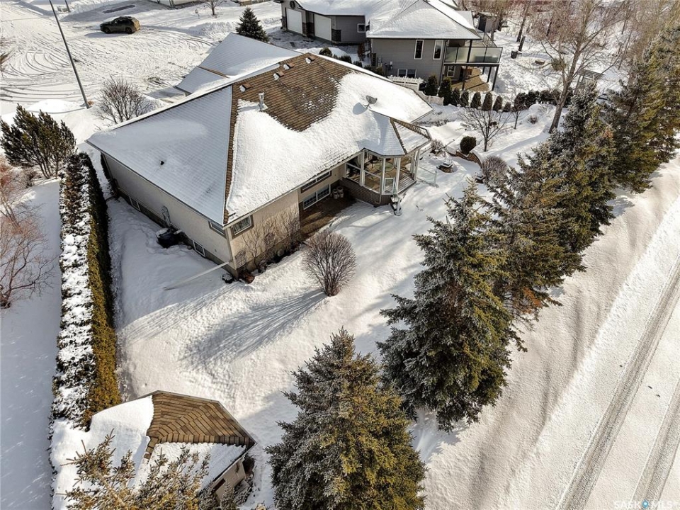 Welcome to this impressive 1,500-square-foot bungalow in Rosthern, thoughtfully designed for comfort, function, and style. This walkout home offers an elevated living experience with exceptional flow and natural light throughout. The main floor features two spacious bedrooms plus a dedicated office that easily adapts to your needs. A refined gas fireplace anchors the living area, creating warmth and atmosphere without overpowering the space. The well-appointed kitchen includes a gas stove, generous storage, and seamless connection to the dining area. Main-floor laundry adds everyday convenience and practicality to the layout. The attached 26x26 garage provides ample space for vehicles, storage, and hobbies. Downstairs, the walkout basement expands your living options with two additional bedrooms. A separate craft room offers flexibility for creative projects, work, or extra storage. The large family room is ideal for relaxing, entertaining, or accommodating guests. Step out to a beautifully treed and landscaped yard that feels both private and inviting. A dedicated firepit area enhances outdoor living and evening enjoyment. The covered west-facing deck backs onto wide-open spaces, delivering stunning prairie sunsets and peaceful views. Recent upgrades include a new boiler and air exchanger within the last year, ensuring efficiency and peace of mind. Located in a diverse and growing community, Rosthern offers a new composite school, 18-hole golf course, upgraded arena, swimming pool, vibrant downtown, and a new hospital in development, along with twin highway access to Saskatoon and Prince Albert.