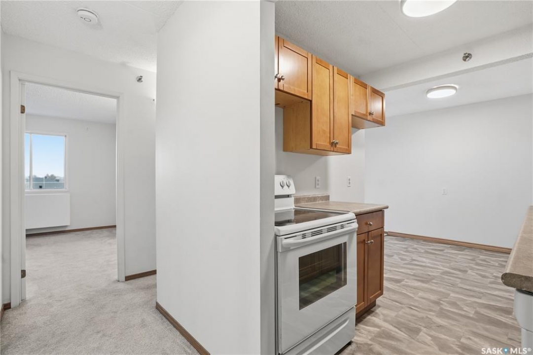 Located in the Atrium on Rae, this move in ready 1 bedroom condo comes with maple kitchen cabinets, dishwasher and stove included. This unit has an in-suite storage room, wall air conditioner and large West facing balcony. Shared coin operated laundry is down the hall. This unit comes with one covered parking stall. Condo fees include heating, water, sewer, garbage, common building insurance, common area maintenance, external building maintenance, snow removal, lawn care and reserve fund.