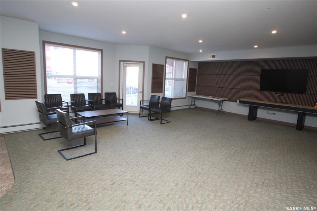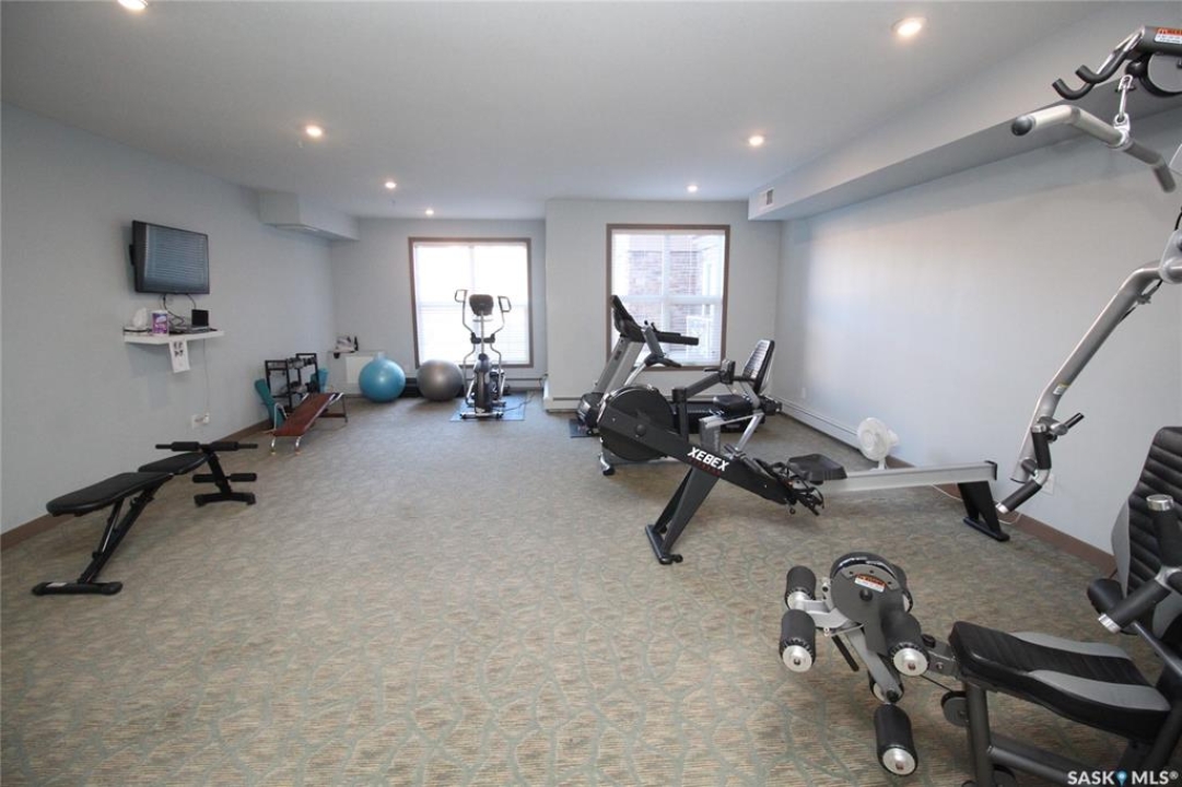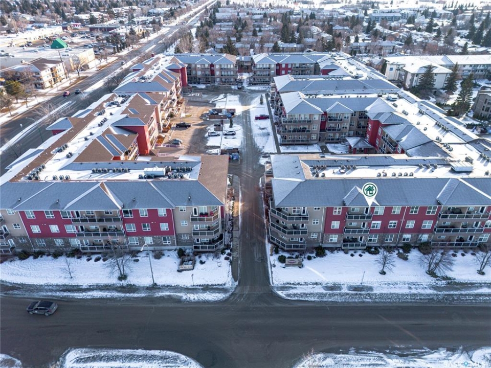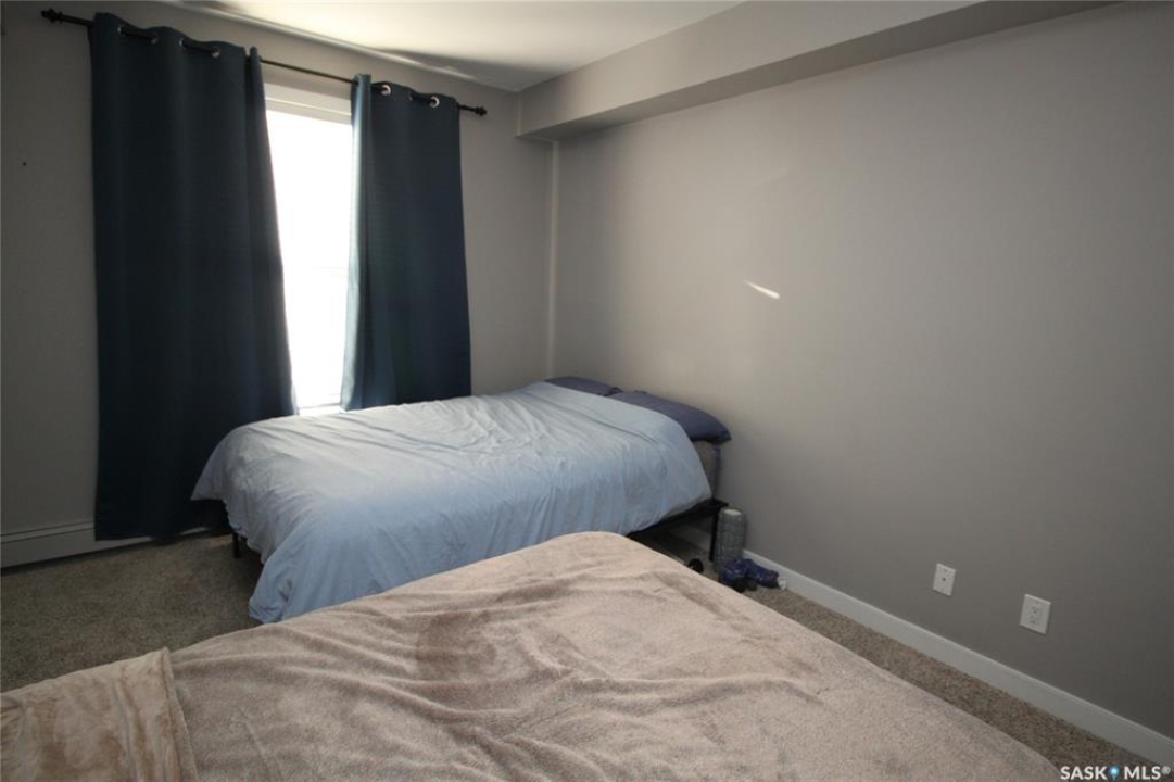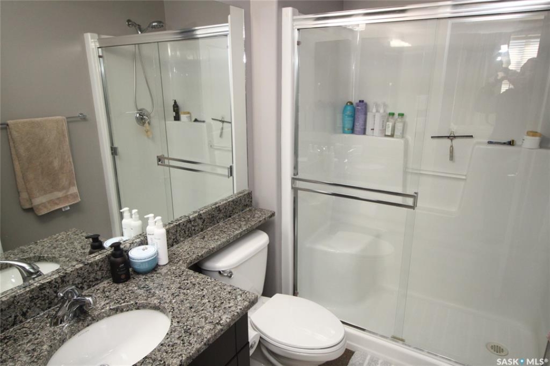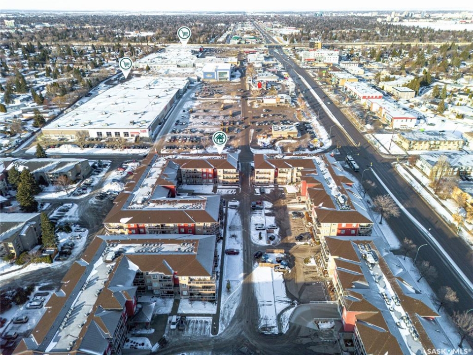 Located in one of Saskatoon's most desirable communities. Top floor 2-bedroom 1055 sq ft condo with an unobstructed view to the west. Kitchen has granite countertops, rich espresso cabinets with soft-close drawers, dual undermount sink and stainless steel appliances. Large living room with a garden door that leads from the living room to the west-facing deck. The door has a convenient phantom screen and the deck has a gas barbeque hookup. Spacious primary bedroom with a 3-piece en-suite and a walk-through closet. Laminate flooring throughout most of the condo. The in-suite laundry room is large enough to accommodate additional storage. One underground parking stall and one electrified ground-level parking stall. This complex has a guest suite that may be rented, an amenities room and an exercise room. Additional storage is located in front of the underground parking stall. Several visitor parking stalls are located throughout the complex. Great location. Close to 8th Street shopping and restaurants and easy access to Circle Drive.