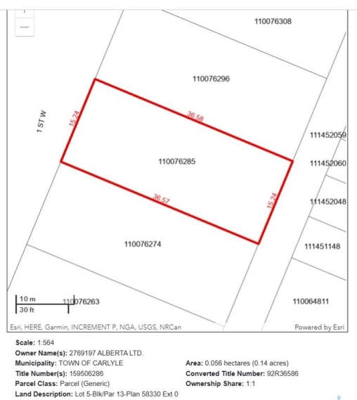 209 - 1st St West - LOCATION LOCATION - This 50 x 120' Residential R2 lot presents a great opportunity to build your home at a great location with walking distance to all the amenities offered in Carlyle. For the investment minded buyer R2 zoning allows a duplex property which would answer to the need of residential rental housing in Carlyle providing a respectable return on investment. Or a single one level modular would answer the need for an affordable starter or retirement home. Options are plenty, Services are all in vicinity for affordable connection. ATTACHED PICTURES INCLUDE SAMPLE PLANS OF MODULAR HOMES THAT COULD ACCOMODATE A QUICK TURN AROUND FOR YOUR NEEDS... Contact realtors for more info.