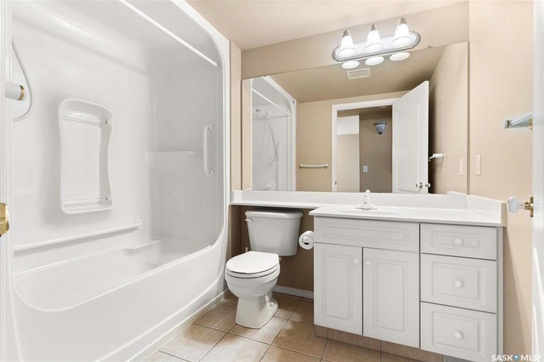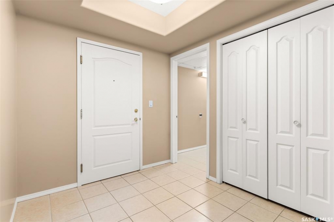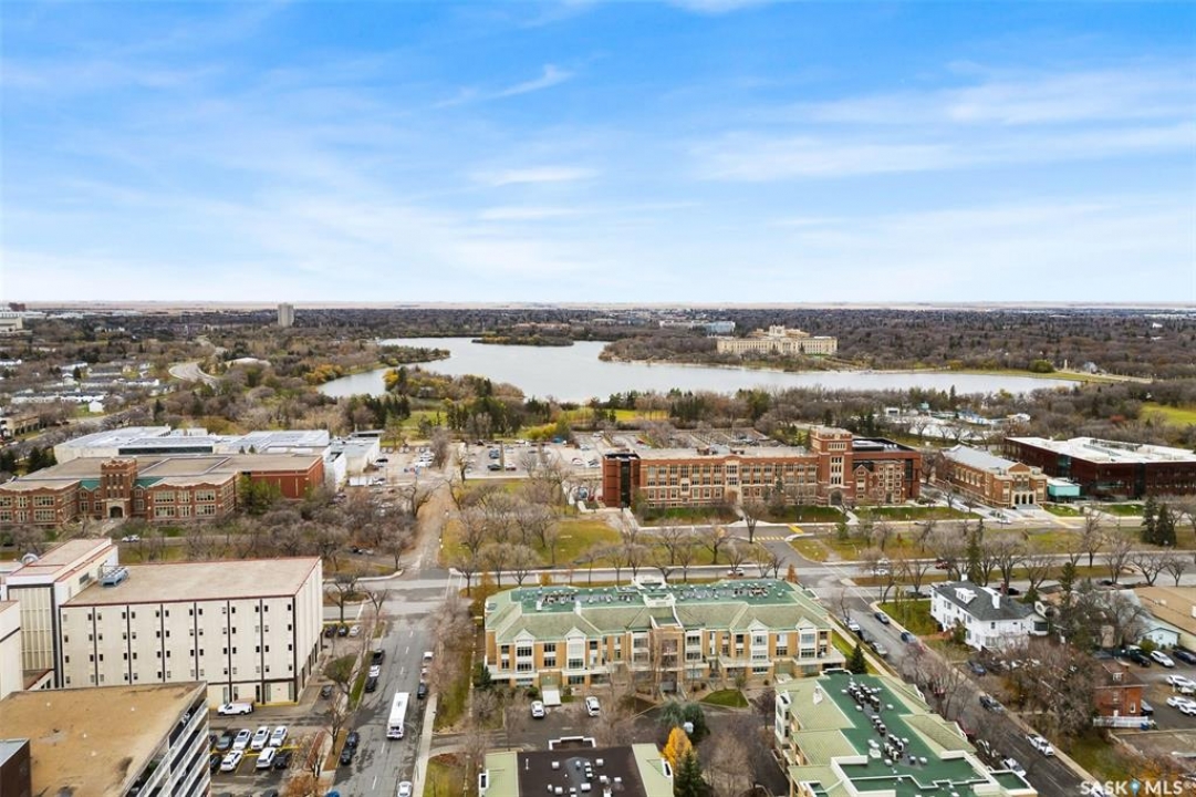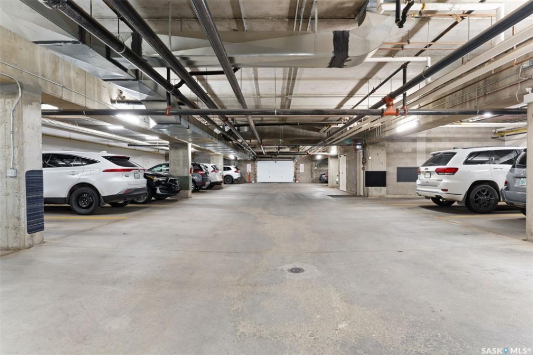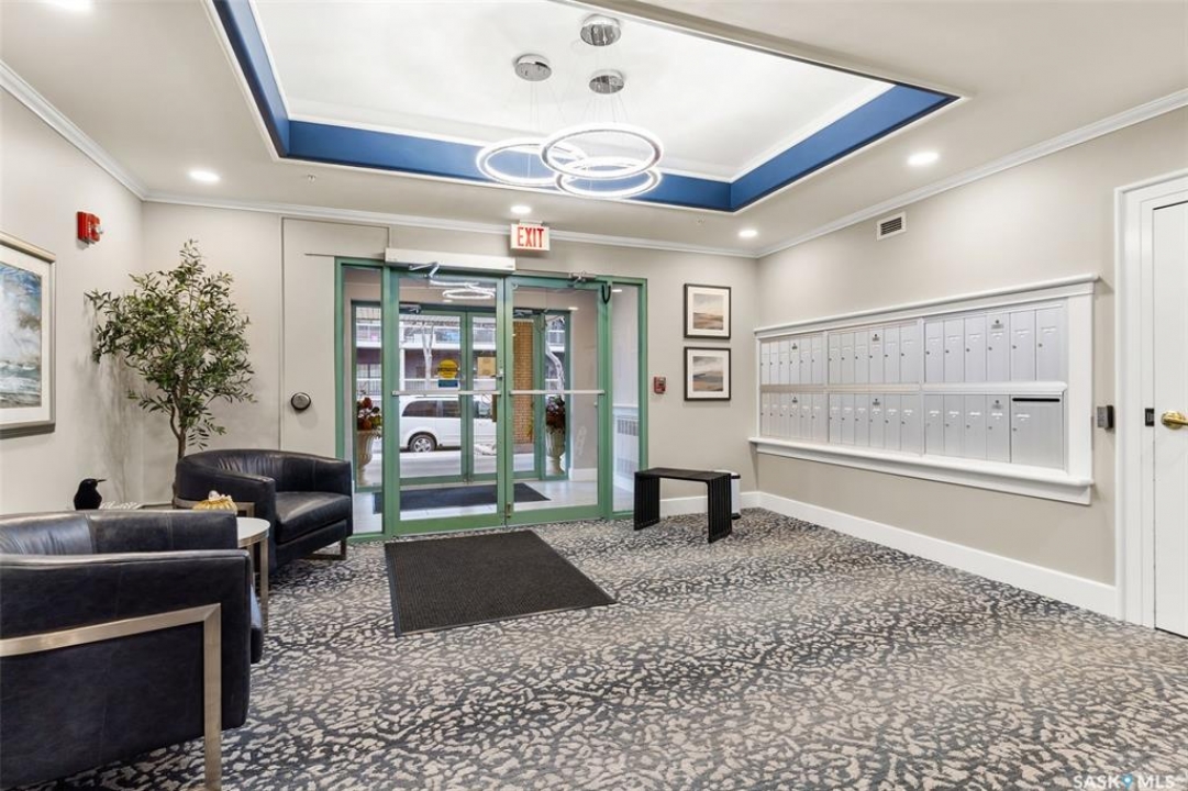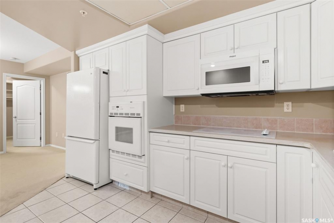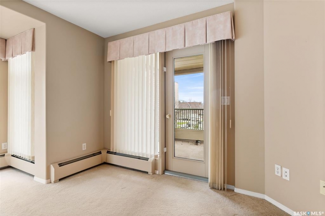 Experience the height of elegant, easy living in this impressive executive condo in the highly sought-after College Park community. Offering 1,338 square feet of thoughtfully designed space, this third-floor unit is filled with natural light and features an open-concept layout ideal for relaxing or entertaining. Step into a grand tiled foyer that leads to the spacious main living area. The inviting living room is anchored by a cozy gas fireplace and a sunlit alcove surrounded by windows—perfect for reading, working, or unwinding. The dining area easily accommodates a large table, while the well-appointed kitchen offers ample cabinetry, white appliances including a built-in oven and cooktop, and generous counter space. A covered east-facing balcony provides a peaceful retreat for morning coffee, complete with a gas BBQ hookup for outdoor dining. The spacious primary suite includes a large walk-in closet and a sleek three-piece ensuite with an oversized shower. A second bedroom offers flexible space for guests or a home office, with a four-piece main bath nearby. Additional conveniences include in-suite laundry with shelving, custom blinds, central air, and elevator access. This condo also includes a secure storage room and a heated underground parking stall (#31). Residents enjoy an amenities room with games and fitness equipment, a parkade car wash, off-street visitor parking, and a same-floor garbage chute. Steps from Wascana Park, shopping, dining, and essential services, it's also within walking distance to downtown, Darke Hall, and the refurbished Globe Theatre. Enjoy refined urban living at its best—condo fees cover heat, water, sewer, garbage/recycling, exterior maintenance, lawn care, snow removal, building insurance, and reserve fund contributions. Contact your realtor for more information or a private tour.