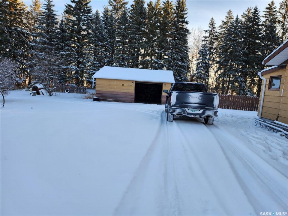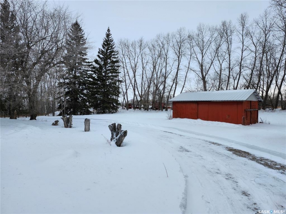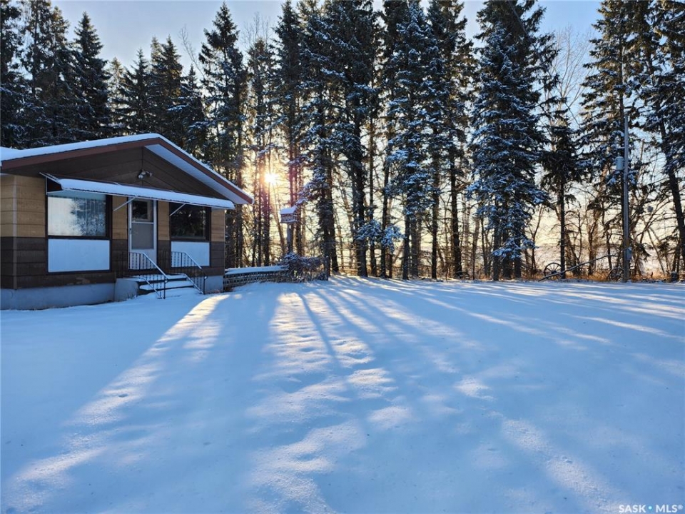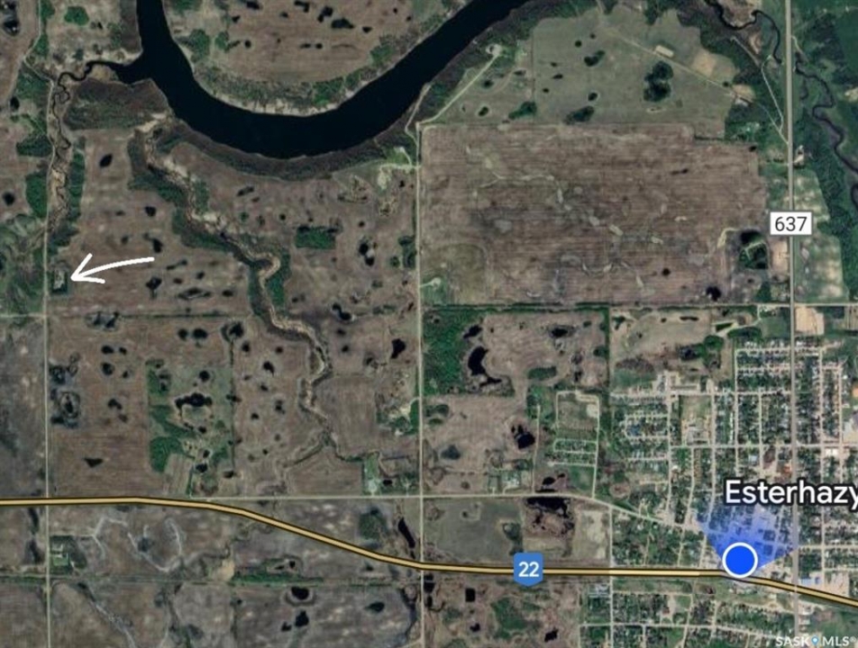 A RARE ACREAGE OPPORTUNITY JUST MINUTES FROM ESTERHAZY Propeties like this RARELY come to market. This exceptional scenic acreage is located just 2km west of Esterhazy and 1 km north of Highway 22. Close enough to town to enjoy NATURAL GAS SERVICE, yet far enough to offer true privacy and tranquility. This 10 acre retreat is surrounded by mature pine trees. It is only a short walk to a secluded valley and creek, and offers a convenient two-minute drive to town. In real estate, LOCATION IS EVERYTHING, and this acreage truly delivers. The solid, well-insulated 1470 sqft home sits in a private, park-like setting framed by sheltering pines. Some rooms were previously used as work and office space, and they provide flexible options for additional bedrooms, hobby rooms, or personalized living space. The property also features a 24x24 detached garage, a workshop, a large outbuilding, a new well pump, a septic pump approx 2 years old, and an electric pump for cistern water. The beautifully maintained yard and garden, along with the surrounding countryside, offer peaceful views and a strong connection to nature. This is an outstanding opportunity for buyers seeking space, privacy, and the convenience of town services in a truly rare acreage setting.