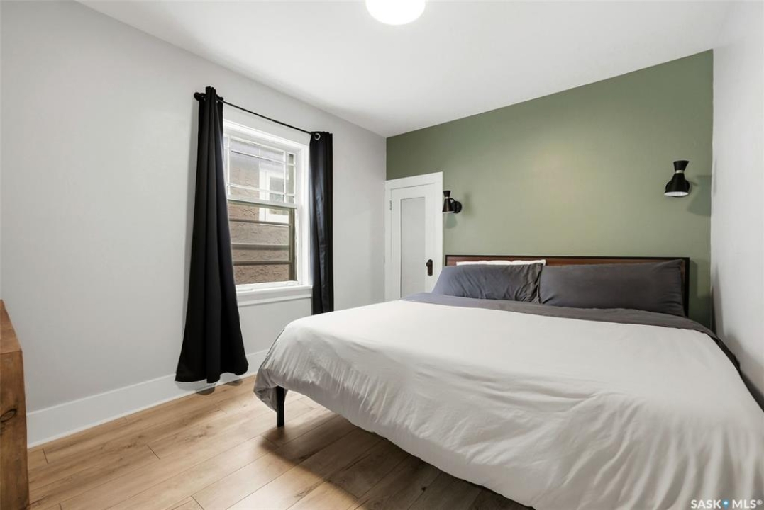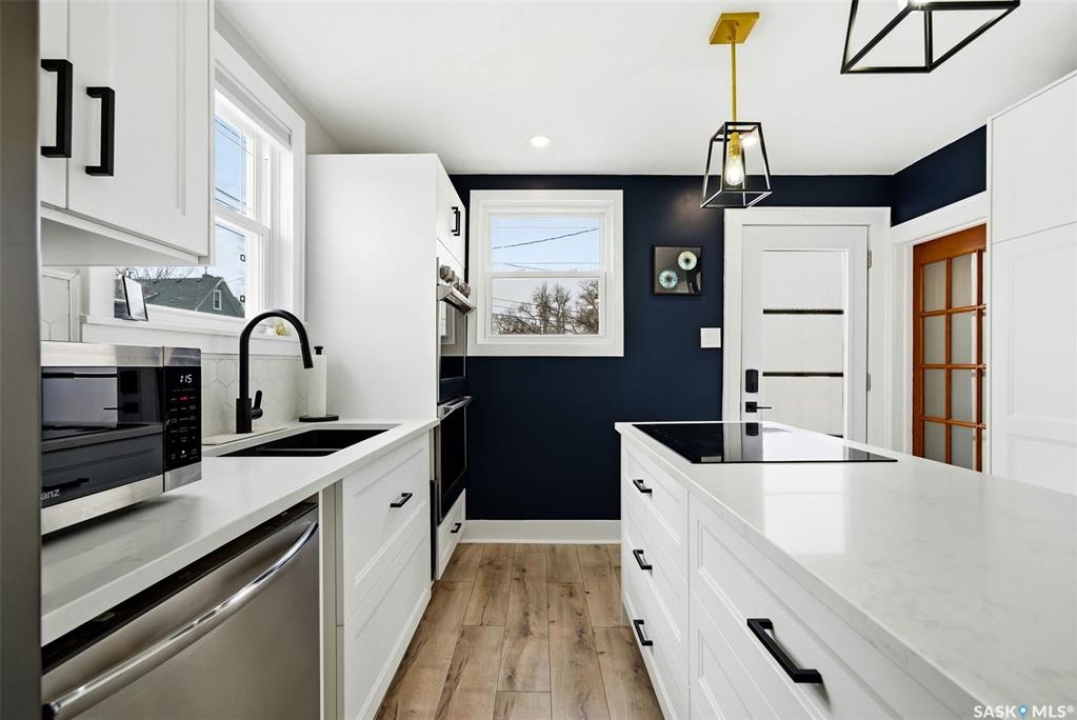 Looking for an upgraded character home with modern style and function? This beautifully updated property blends charm and contemporary living in all the right ways. The front foyer has been transformed into a moody, magazine-worthy mudroom that makes a stunning first impression while adding practical storage. Large PVC windows flood the main floor with natural light, highlighting the thoughtfully opened-up layout between the kitchen, dining, and living areas. The fully remodelled kitchen features crisp white cabinetry, quartz countertops, a large island with additional storage, and new appliances—including double built-in wall ovens—ideal for those who love to cook and host. Two generously sized bedrooms are located on the main floor, along with a fully upgraded four-piece bathroom complete with modern fixtures and classic subway tile surround. The solid, unfinished basement provides excellent storage space and future development potential. Outside, enjoy a private backyard with a tall fence, fresh landscaping, large patio, newer deck, and garden boxes—perfect for relaxing or entertaining. A single detached garage with back lane access completes the package. Upgrades include: PVC windows, high efficient furnace, newer central air conditioning, updated shingles, newer electrical throughout. Centrally located in a friendly neighbourhood with fantastic street appeal this home is truly move-in ready and full of character.