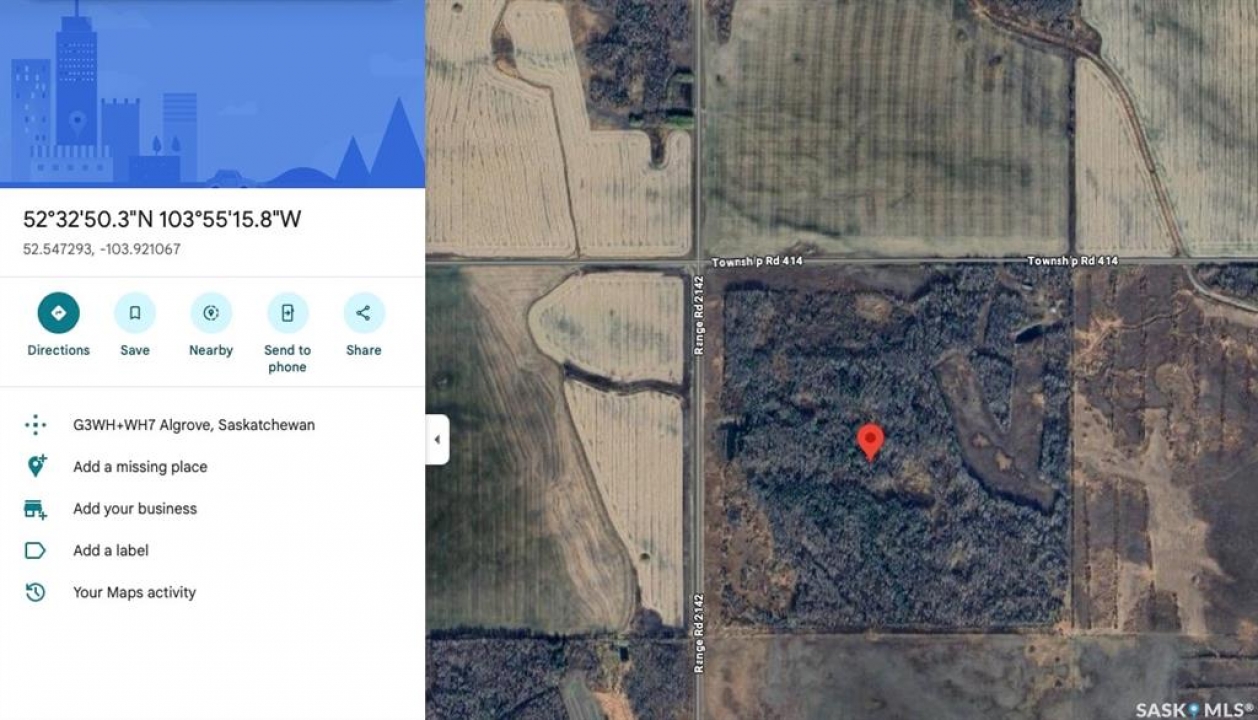 1/4 section of land located 4 miles south of Mckague. Refer to google maps photo for coordinates and terrain.