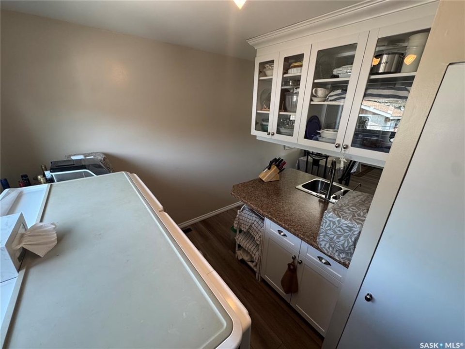 Welcome to charming Strasbourg, Saskatchewan; small-town living with big lifestyle appeal. Just 50 minutes from Regina and only minutes from the resorts and recreation of beautiful Last Mountain Lake, this location offers the perfect blend of peaceful living and convenience. This move-in ready home has been meticulously maintained and thoughtfully updated by the current owners, offering comfort, function, and style throughout. Featuring 3 bedrooms and 2 bathrooms, this home showcases brand new luxury vinyl plank flooring, plus elegant marble flooring in the upstairs bathroom. The main floor offers 2 good sized bedrooms, a brand new kitchen, convenient laundry, a huge pantry, and a bright, welcoming living room with large windows that fill the space with natural light. Downstairs, you'll find a spacious family room, an additional large bedroom, and a beautifully updated modern bathroom, perfect for guests or growing families. The oversized utility room provides exceptional storage and includes a reverse osmosis system, water softener, central vacuum, and space for freezers. Step outside and enjoy your own private retreat. The yard is designed for both relaxation and entertaining, featuring garden boxes, RV parking with exterior plug, a large storage shed, and a covered outdoor space; ideal for enjoying Saskatchewan's beautiful evenings. The insulated, heated double detached garage with 220V plug adds incredible value and versatility. This exceptional property offers space, updates, and lifestyle; all in a welcoming community near the lake. Truly move-in ready and waiting for its next owners.