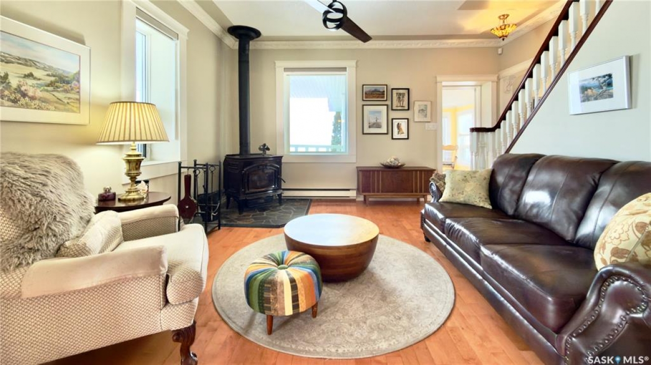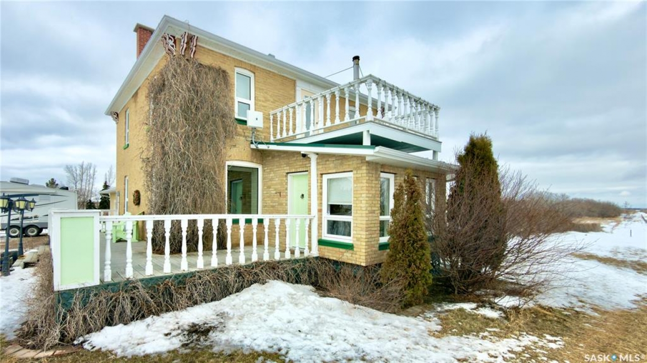 Welcome to your acreage in the RM of Wolseley, just 6 km from town and school. Set on 20.39 fully fenced acres with shelterbelt protection and flat topography, this property is thoughtfully set up for animals while offering the comfort of a beautiful character home. The land is functional and ready. Complete perimeter fencing, a well water supply, lagoon system, a outdoor riding arena - 80x200, and multiple outbuildings including a shop, chicken coop, and additional shelters and storage structures provide the infrastructure you need for animals, equipment, and rural living. Built in 1906, the two storey home offers 1,836 square feet plus a fully finished basement. Inside, you will find a warm and inviting main floor with wood flooring throughout the kitchen, dining room, and living room. The layout is both charming and functional, complemented by a convenient laundry and mud room and a two piece bathroom on the main level, ideal for acreage life. Upstairs offers three bedrooms including a generous primary bedroom measuring 20 feet in length, along with a full four piece bathroom. The finished basement provides additional living space with a large recreation room, storage area, and utility room, giving flexibility for family living or entertaining. The home features a durable metal roof, brick and stucco exterior, two fireplaces, reverse osmosis system, water softener, and baseboard electric heat supplemented by wood heat. This is a warm home, thanks to the upgraded windows, to triple pane, and the upgraded insulation. The 32 x 28 insulated garage with three overhead doors (drive-through) and ample room for vehicles, trailers, and guests. This is a rare opportunity to own a turnkey ready acreage that balances lifestyle and location. Peaceful rural surroundings, practical infrastructure, and a solid character home just minutes from Wolseley make this property one worth experiencing in person.