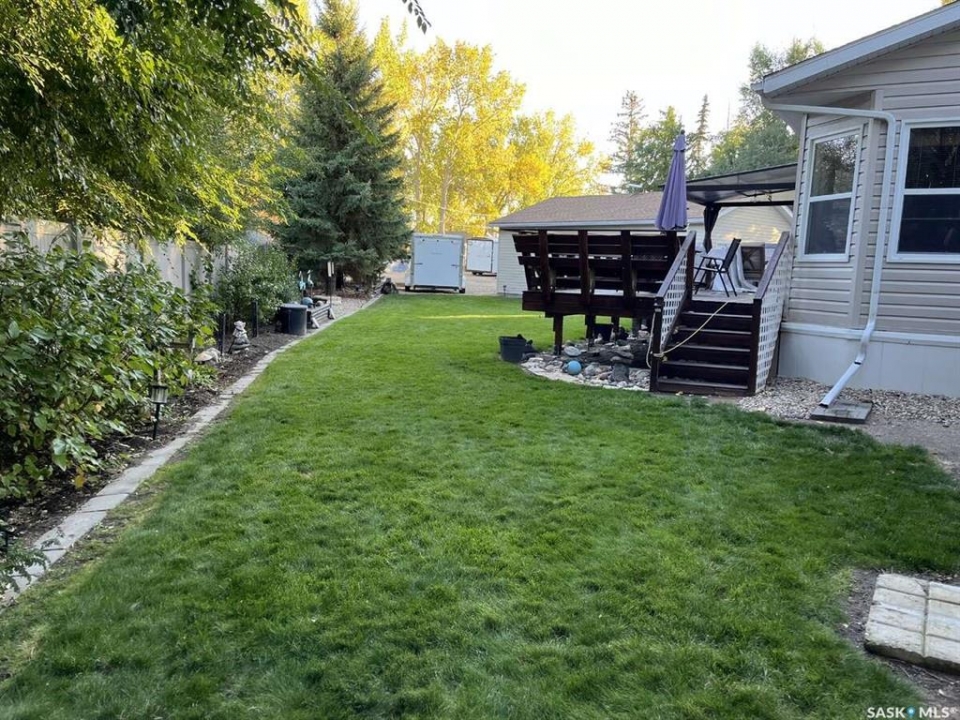 For more information, please click the "More Information" button. Experience year-round lake living with this stunning 2009 Dufferin Homes Grandeur, located at Island View, Saskatchewan—just steps from the water. This spacious 20' x 70' home offers the perfect blend of comfort and convenience, making it an ideal retreat for both relaxation and recreation. Situated on a generous 11,325 sq. ft. pie-shaped lot, this property provides ample space for outdoor enjoyment. The partially fenced yard includes a private fire pit area, a large deck, and parking for up to eight vehicles. A 30' x 24' detached garage, fully insulated and heated, adds extra functionality for storage or workspace. Designed for year-round living, the home features a gas furnace, central air conditioning, a 1,500-gallon septic system, a water softener, and a well with a water system. The yard is also conveniently connected to lake water for irrigation. With affordable utility costs, power average/month of $110.71 and energy of $59.29/month on average in 2025. New shingles on the home and shed in fall of 2025. Island View offers an unbeatable lifestyle with year-round activities, including annual July 1st celebrations, pickleball and bocce ball tournaments, ice fishing, boating, and world-class fishing. Whether you're looking for adventure or simply a peaceful retreat, this home has it all. Located just a 50-minute drive from Northwest Regina, this is a rare opportunity to own a lakeside escape with all the amenities of modern living. Don't miss out