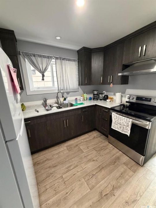 Welcome to this 1034 square foot half-duplex located in Fairhaven! The home features 5 bedrooms and 2 bathrooms in total with a second spice kitchen in the basement. As you walk upstairs you will be greeted by a huge living room with large windows ensuring plenty of sunlight and a balcony overlooking the street where you can enjoy a hot cup of coffee in the mornings. The kitchen/dining offers plenty of space with quartz countertops, new cabinetry and a hood fan that is vented outside! The 4 -piece bathroom with ceramic tiled flooring also features tub surround with ceramic tile all the way to the ceiling. Three decent sized bedrooms upstairs makes the layout convenient for a medium- large sized family. Downstairs you have an additional 2 bedrooms, another 4-piece bathroom, a family room and spice kitchen along with the laundry in utility, with 2 furnaces and 2 water tanks for convenience and comfort of each floor. Outside there is a spacious backyard and 3 parking spots to complete the home. Overall this is a great option for first time home buyers, or large families looking to invest in a functional home with long term value.